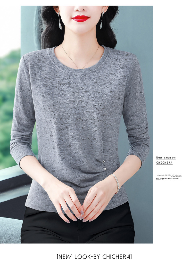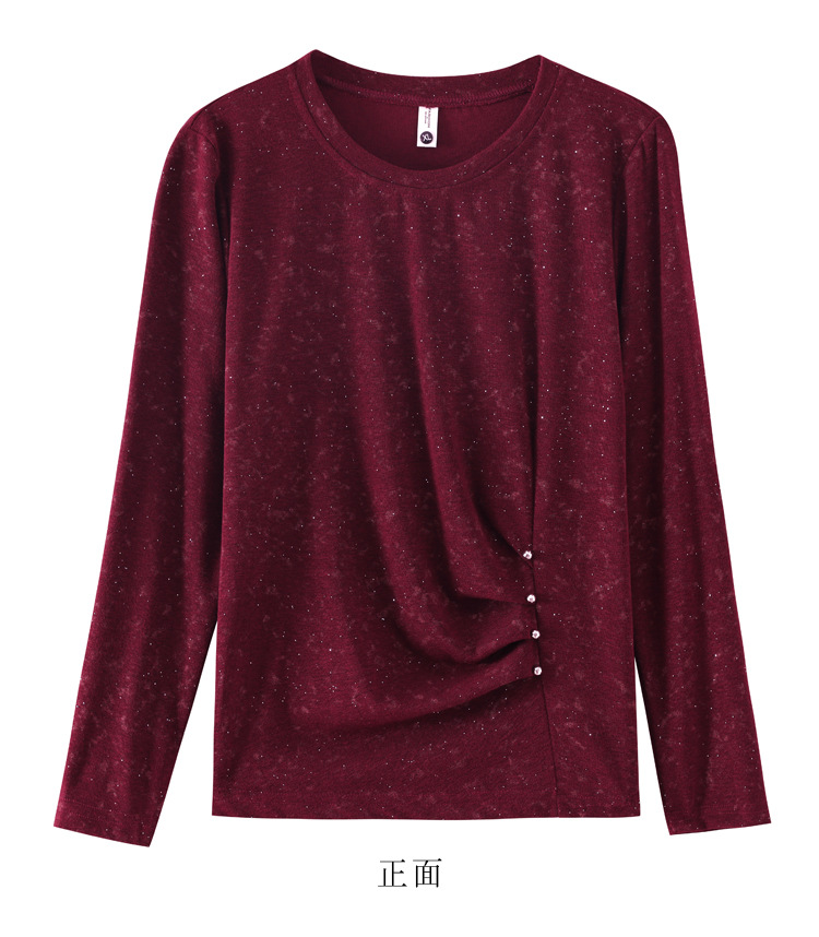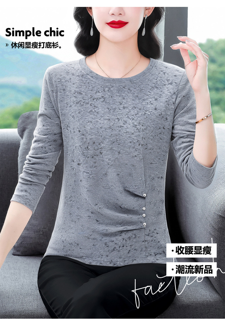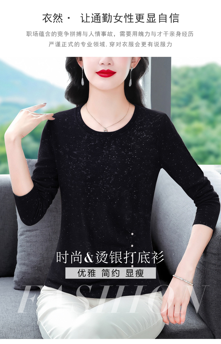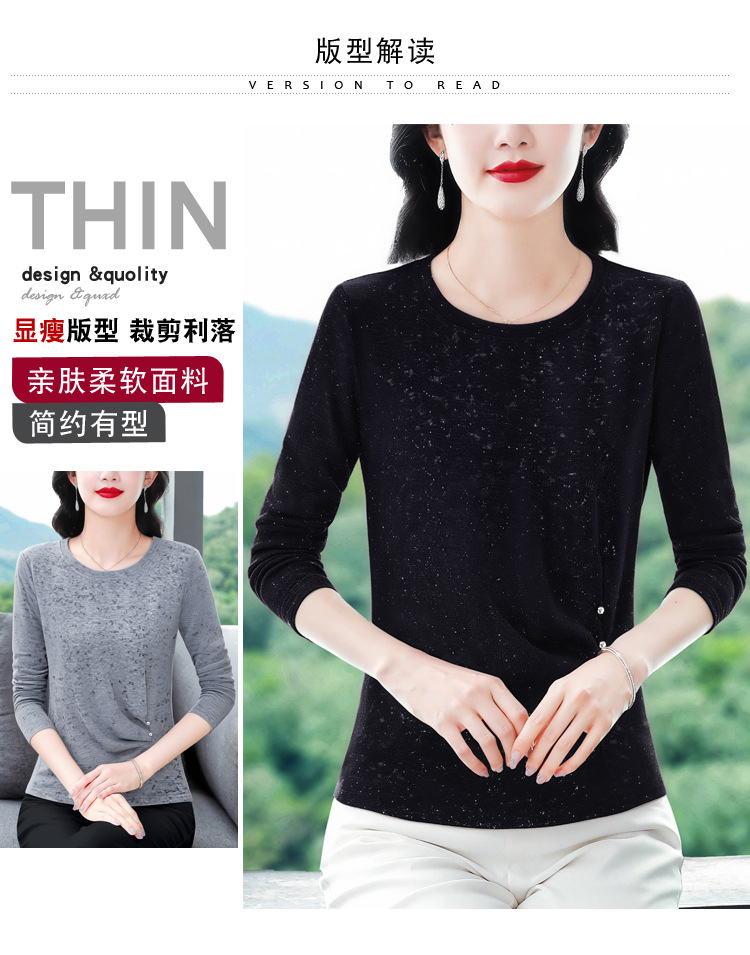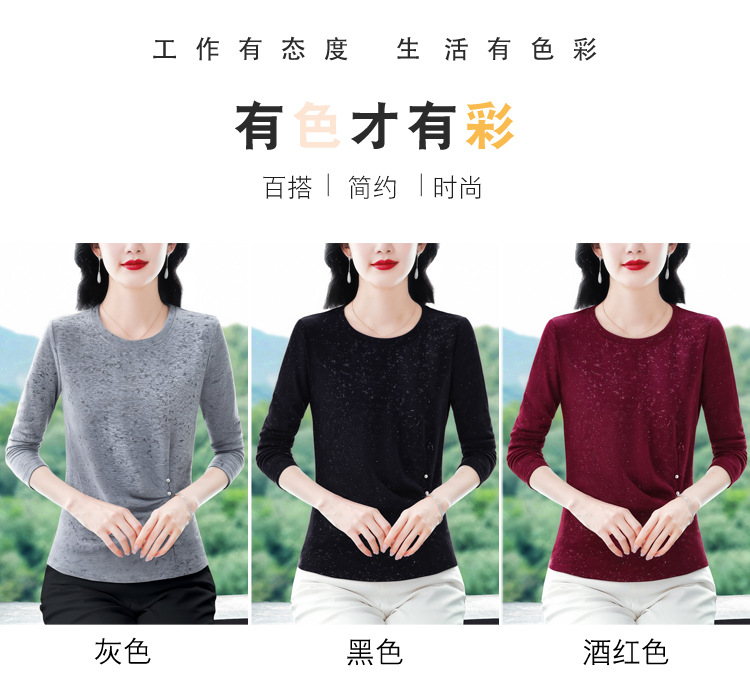 KQL 765G399洋气小圆领棉料长袖t恤修身纯色打底衫