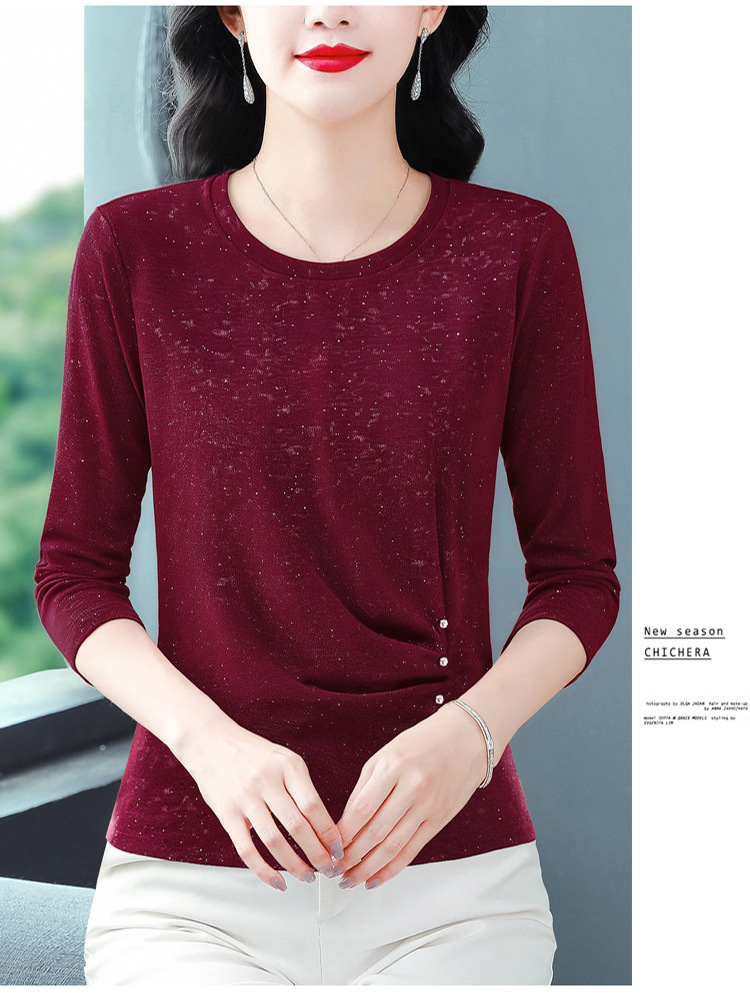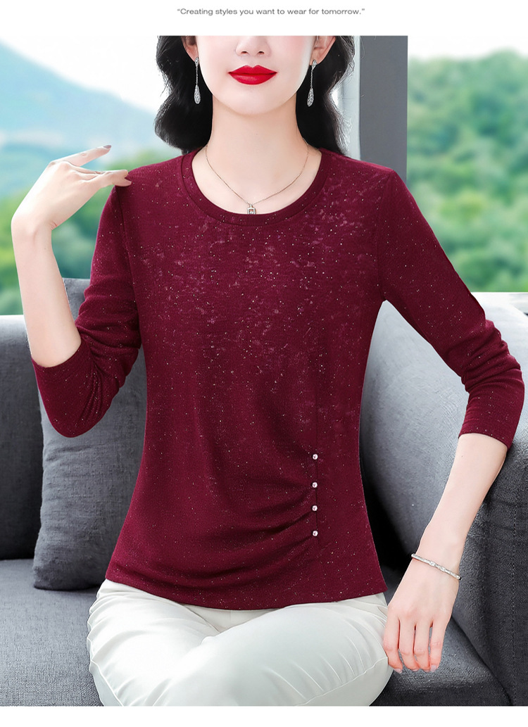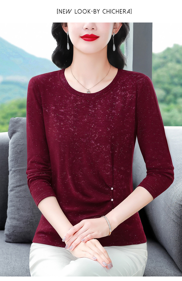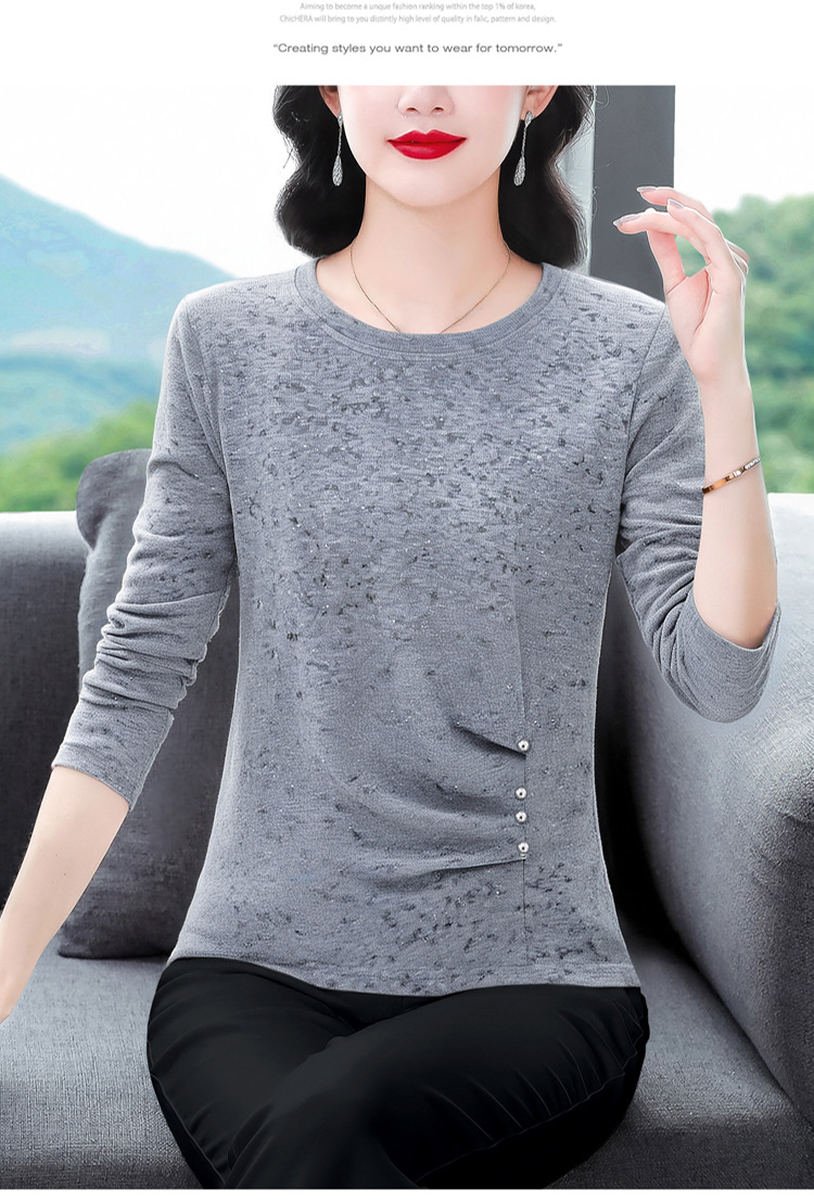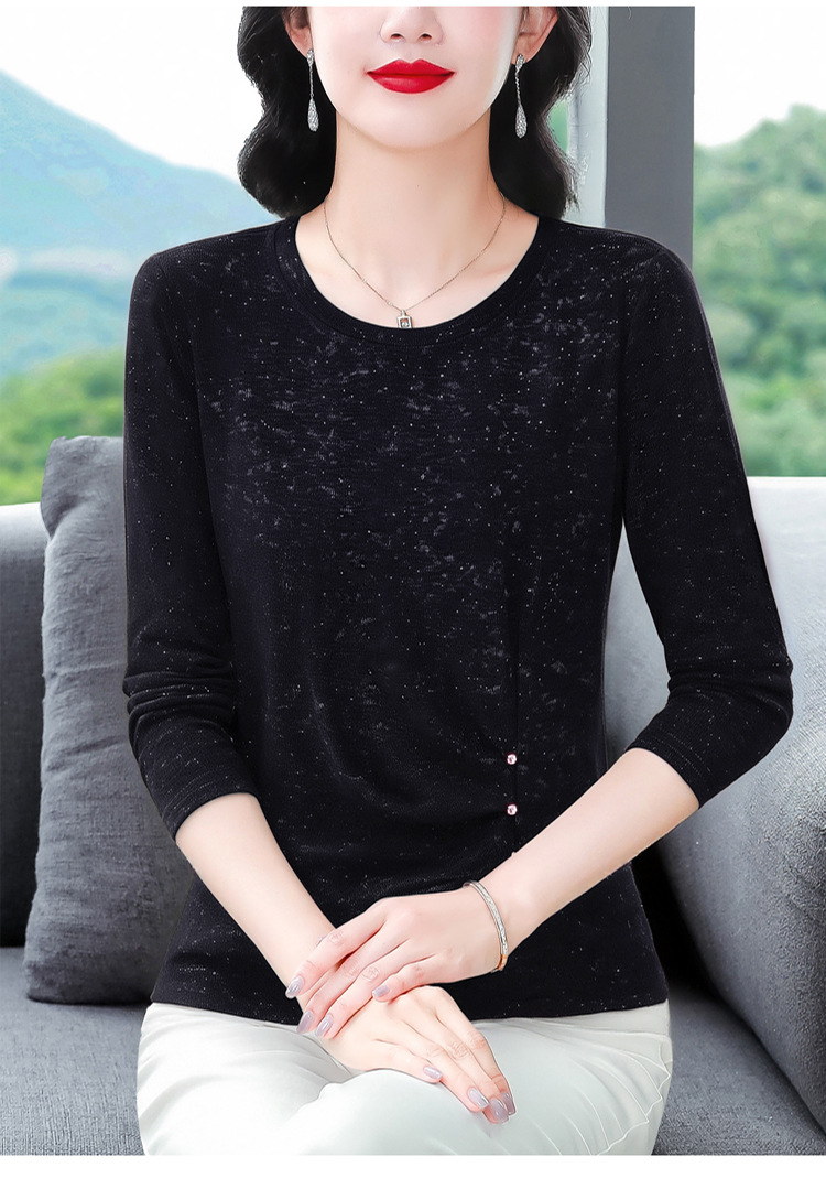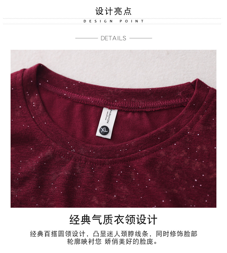 KQL 765G399洋气小圆领棉料长袖t恤修身纯色打底衫