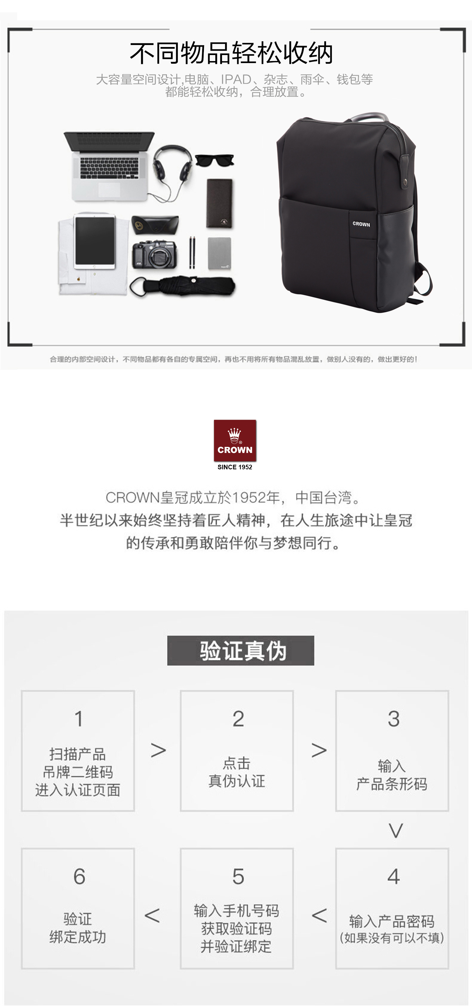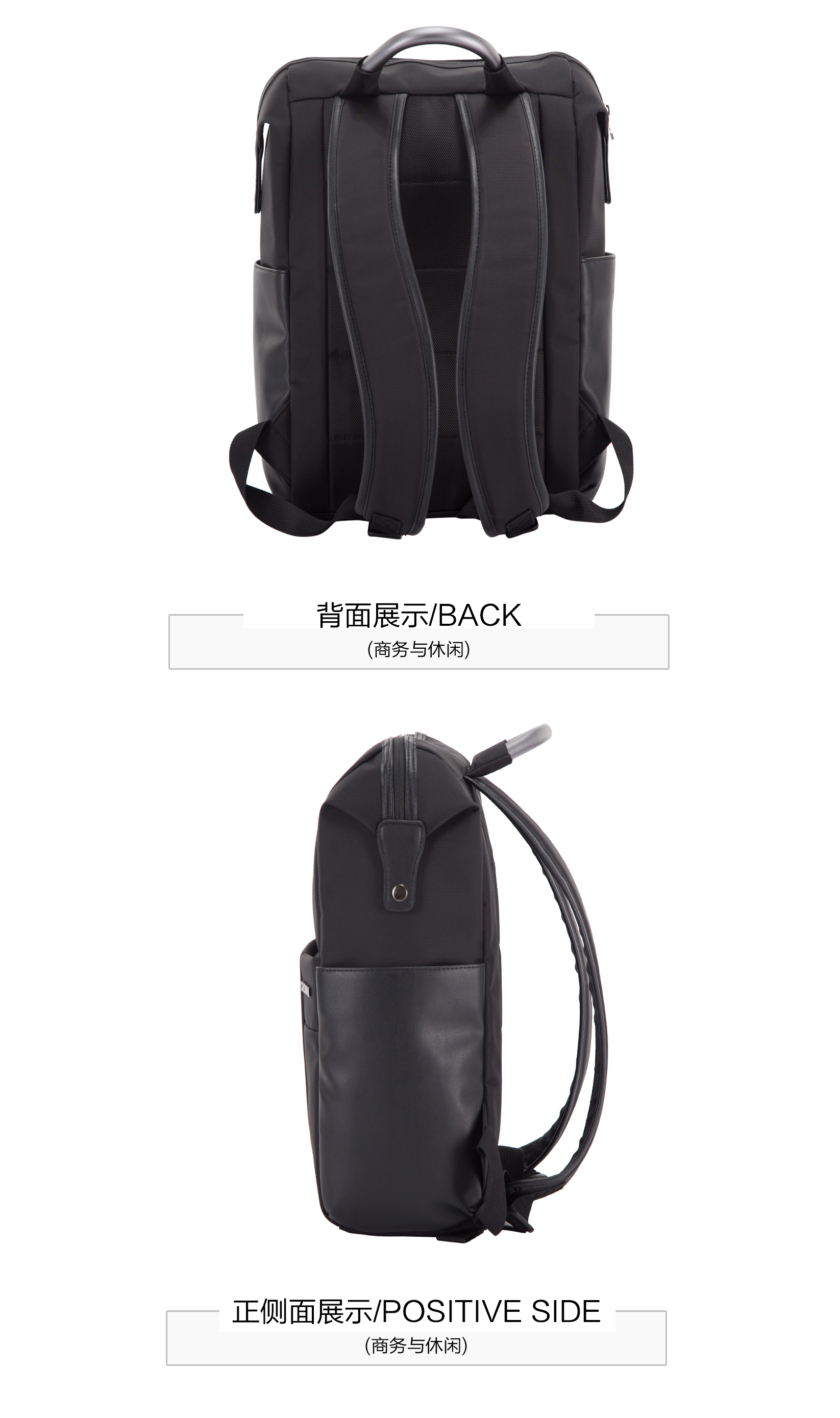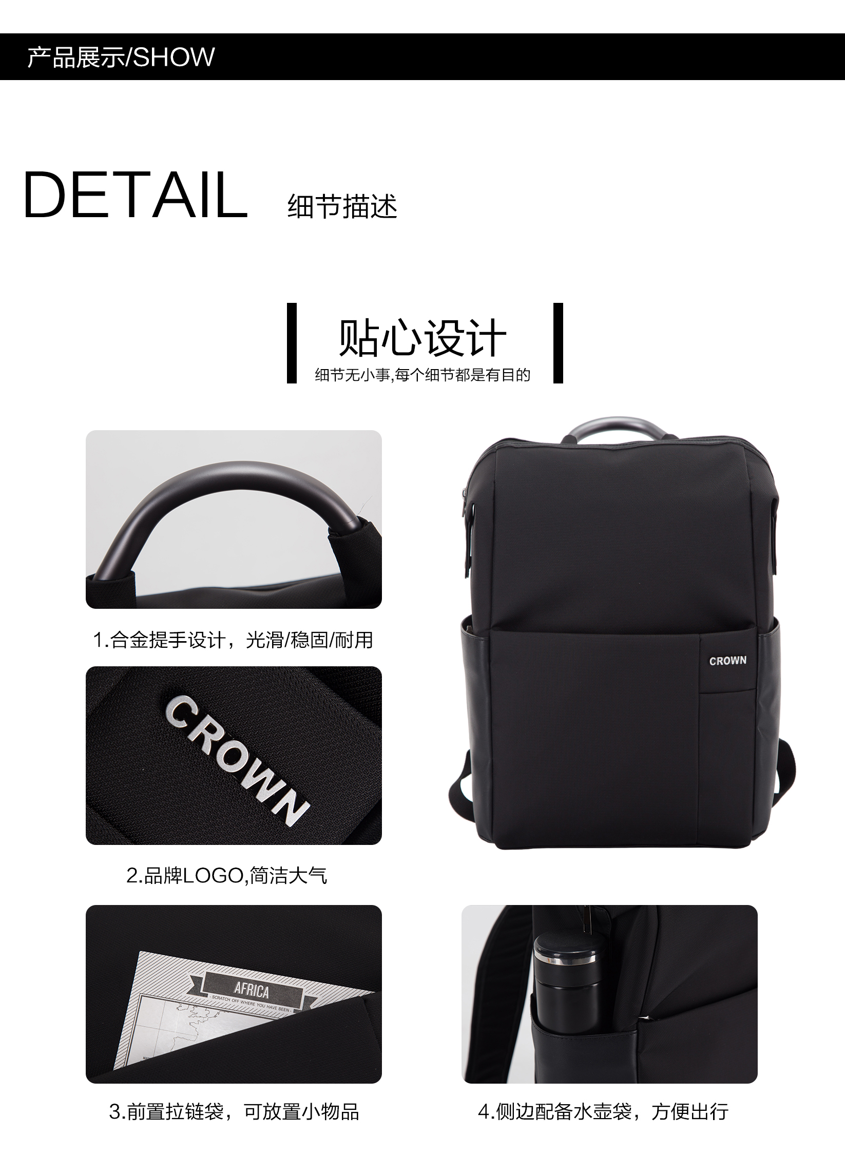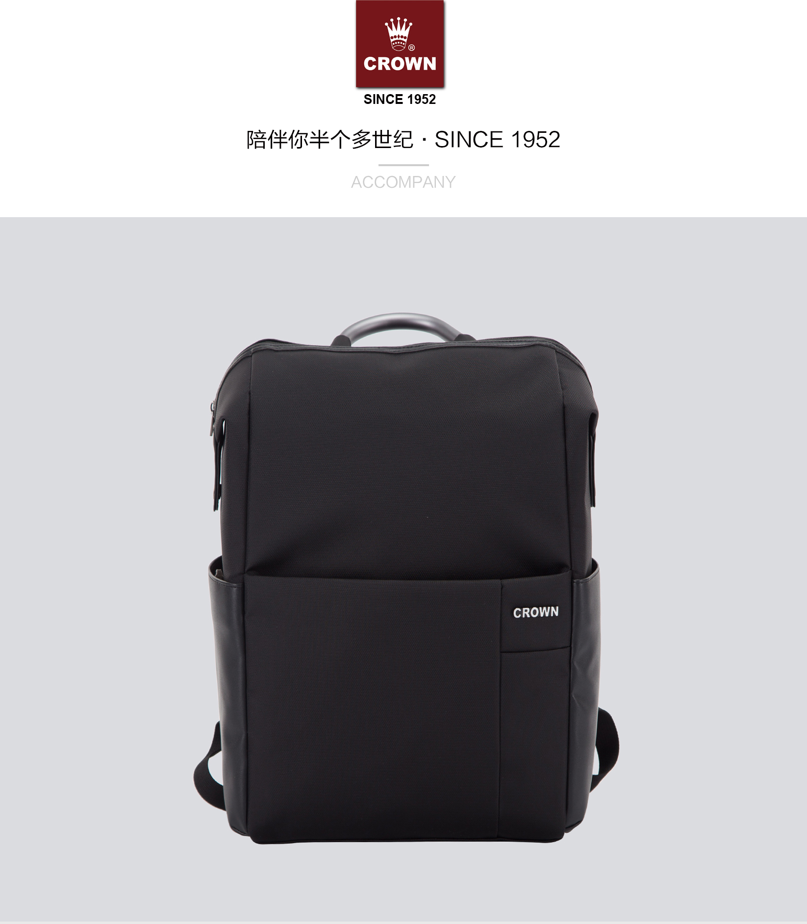 【PU皮+涤纶提花布 高密度防泼 大容量】皇冠CROWN时尚大容量通勤电脑背包黑色15"