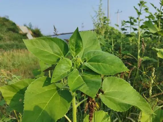 7月份,向日葵已经是含苞待放的状态,旁边的杂草也跟着一起向阳生长,为各种小动物提供了栖息环境。