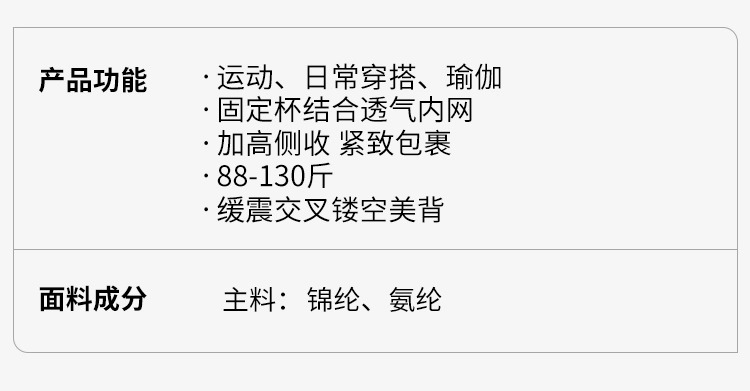 跃牌【轻匀系列】高强度支撑美背瑜伽健身胸围60118