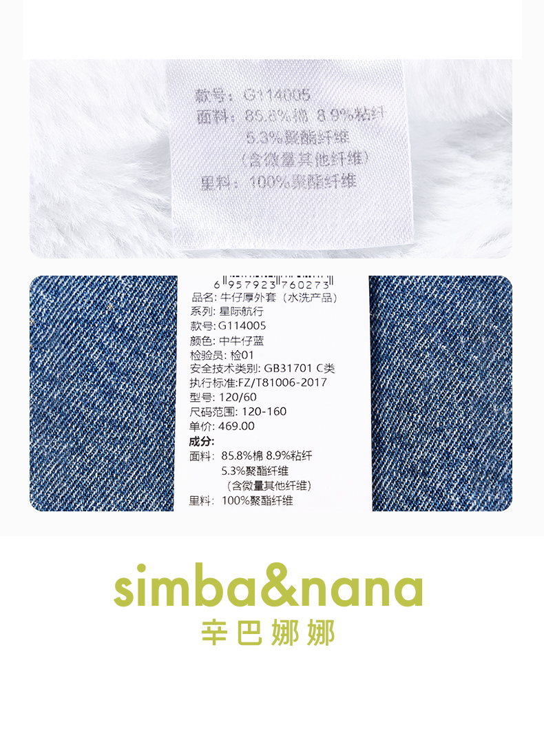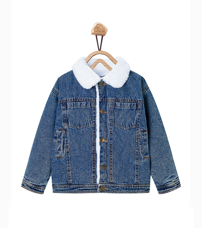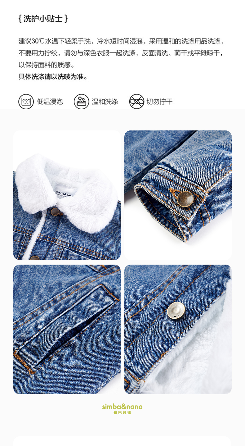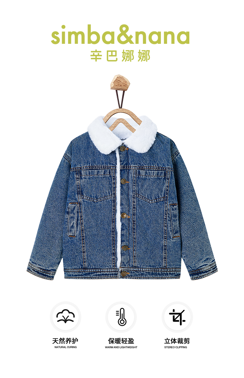 【辛巴娜娜】simbanana【大童】牛仔外套冬装加厚宝宝羊羔绒上衣新款帅气机车夹克衫