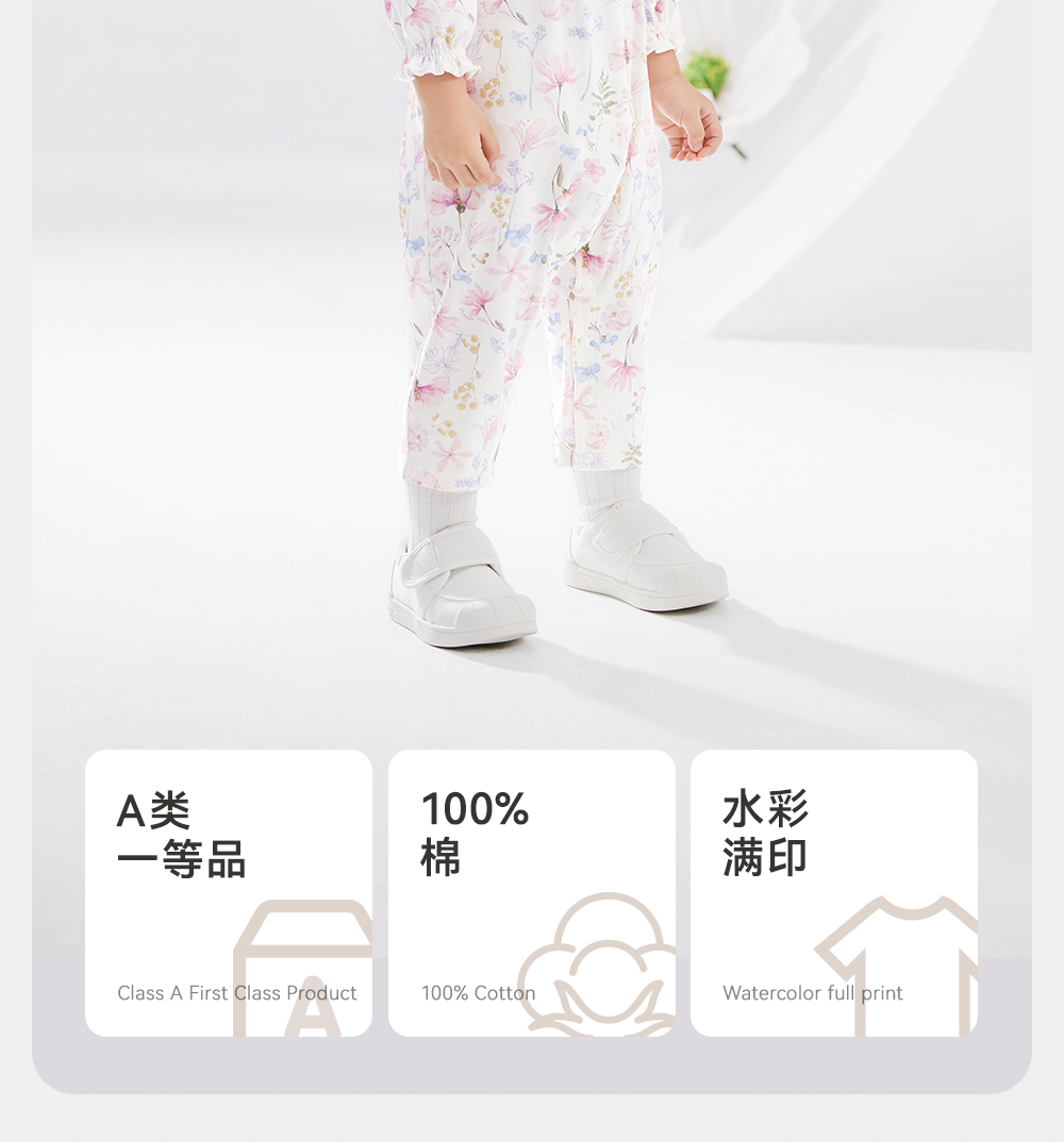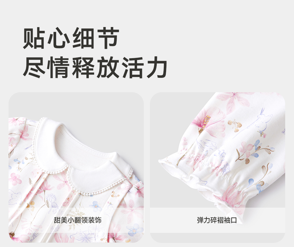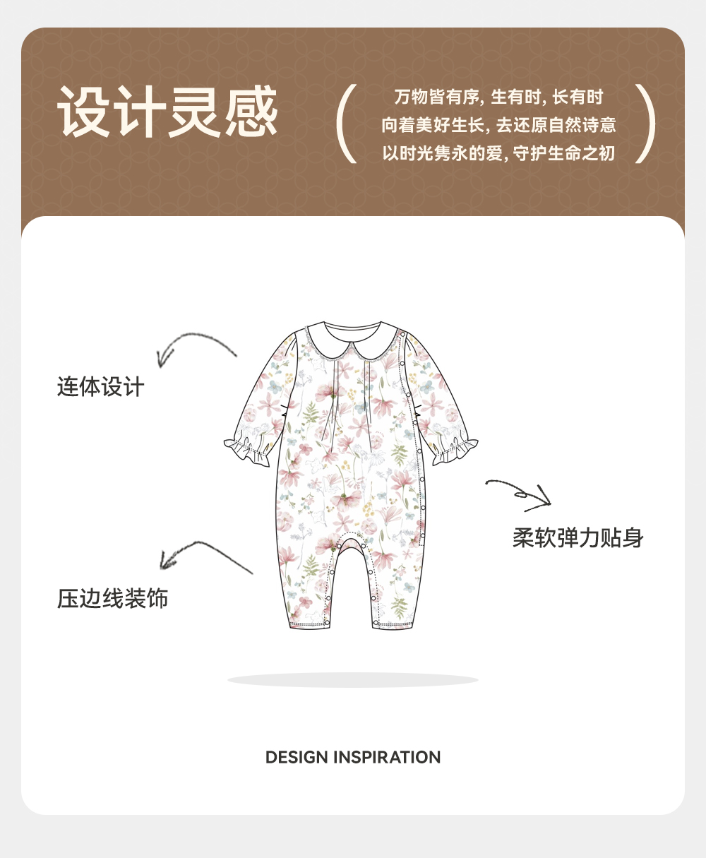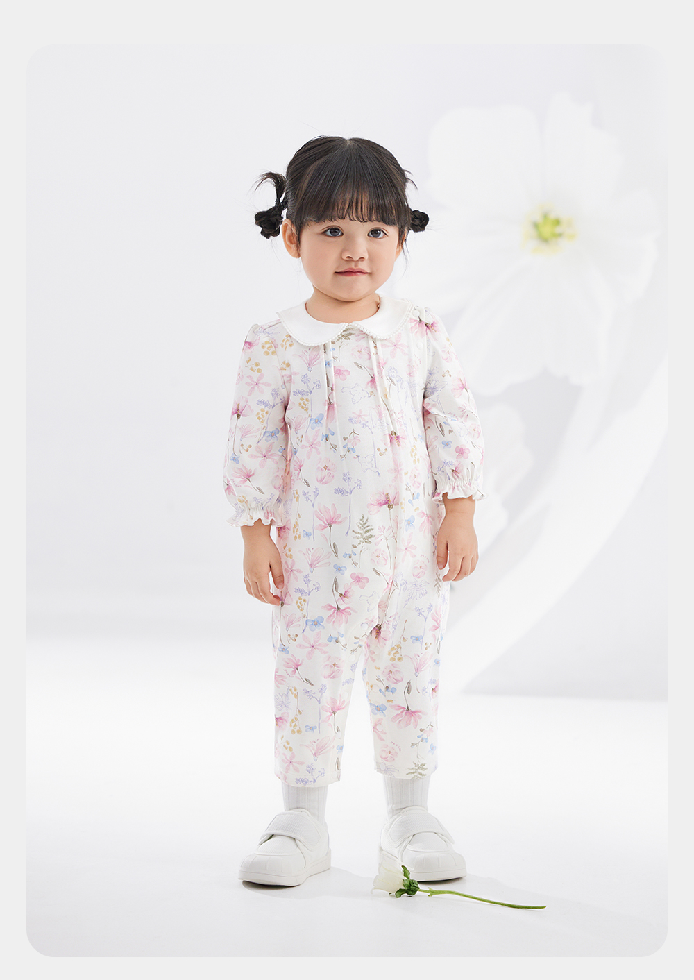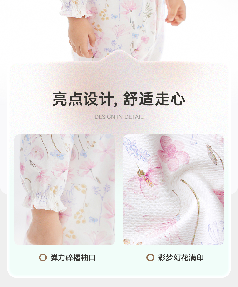 【商场同款】英氏可爱印花连体衣春夏女宝宝长袖连体衣新款