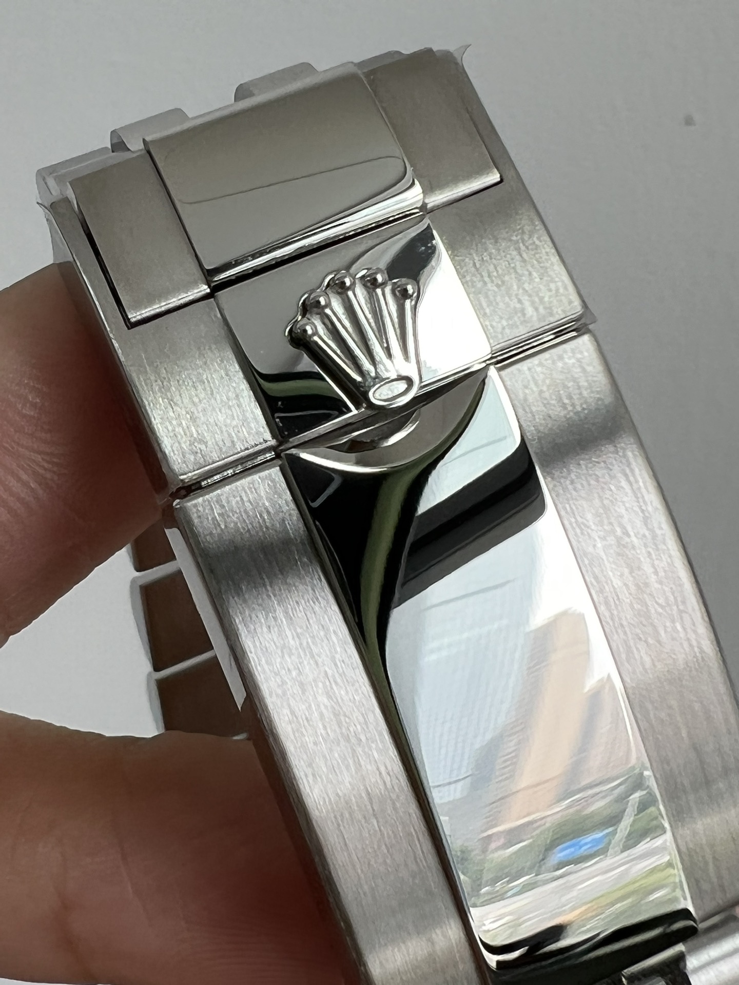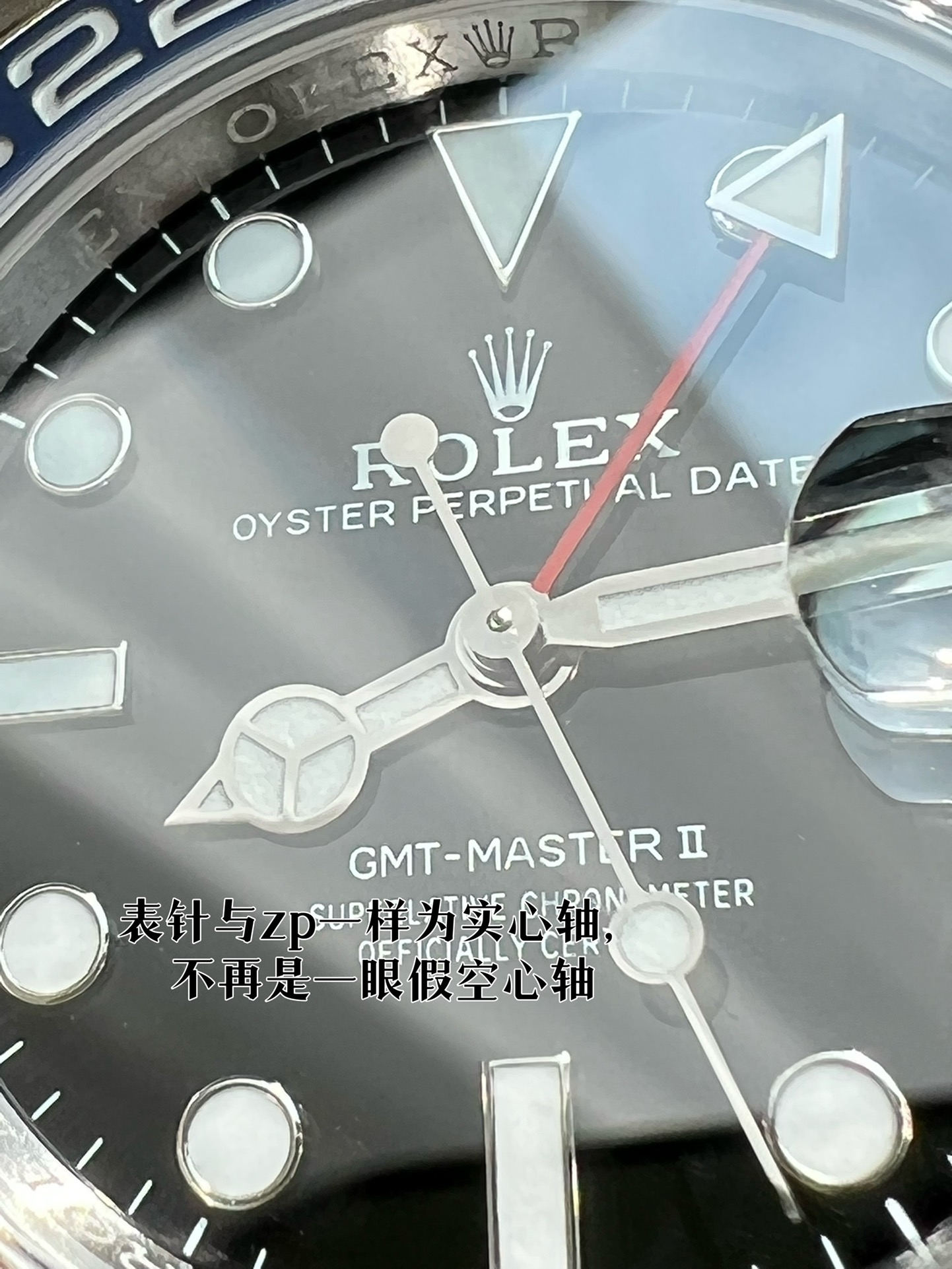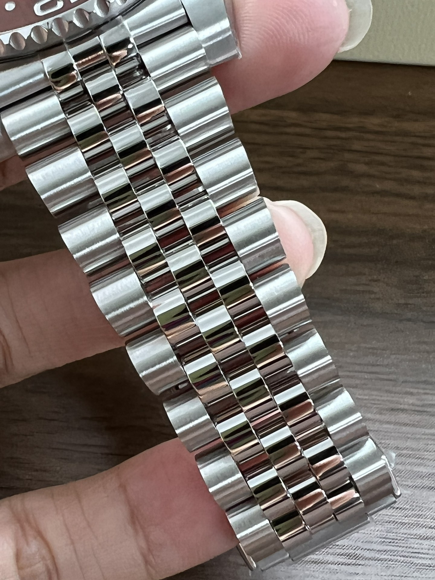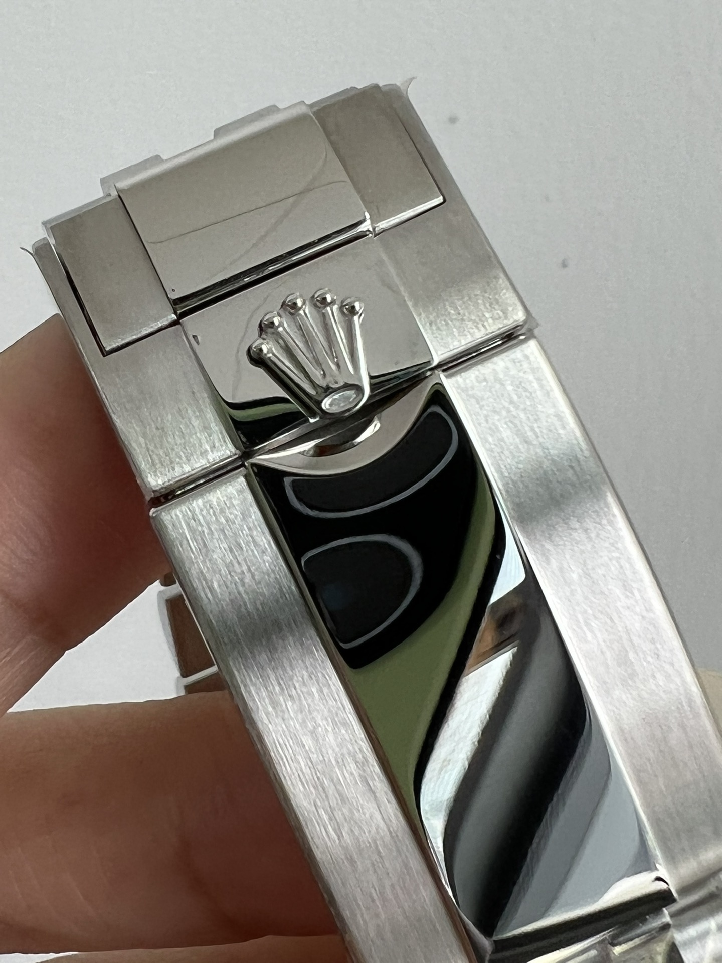 再说说这个钢带,采用AOMR钢带,这样的904L钢明显纯度更高,体现出来就是钢带更白,拉砂位置更加细腻,钢带密度高才是高,重点提一下,此钢带由真AR钢带厂独家提供,市面上不可能有跟我一摸一样的钢带