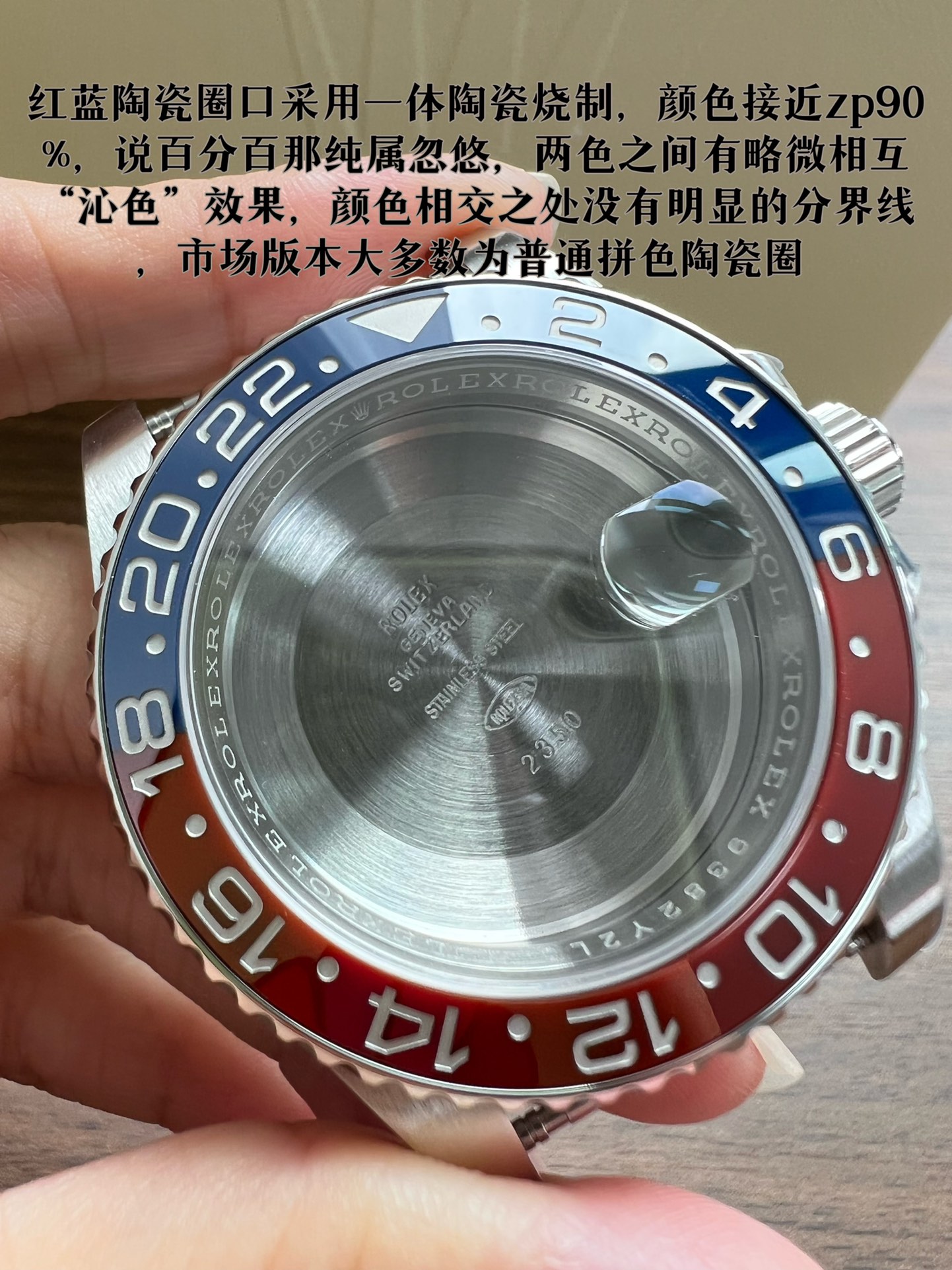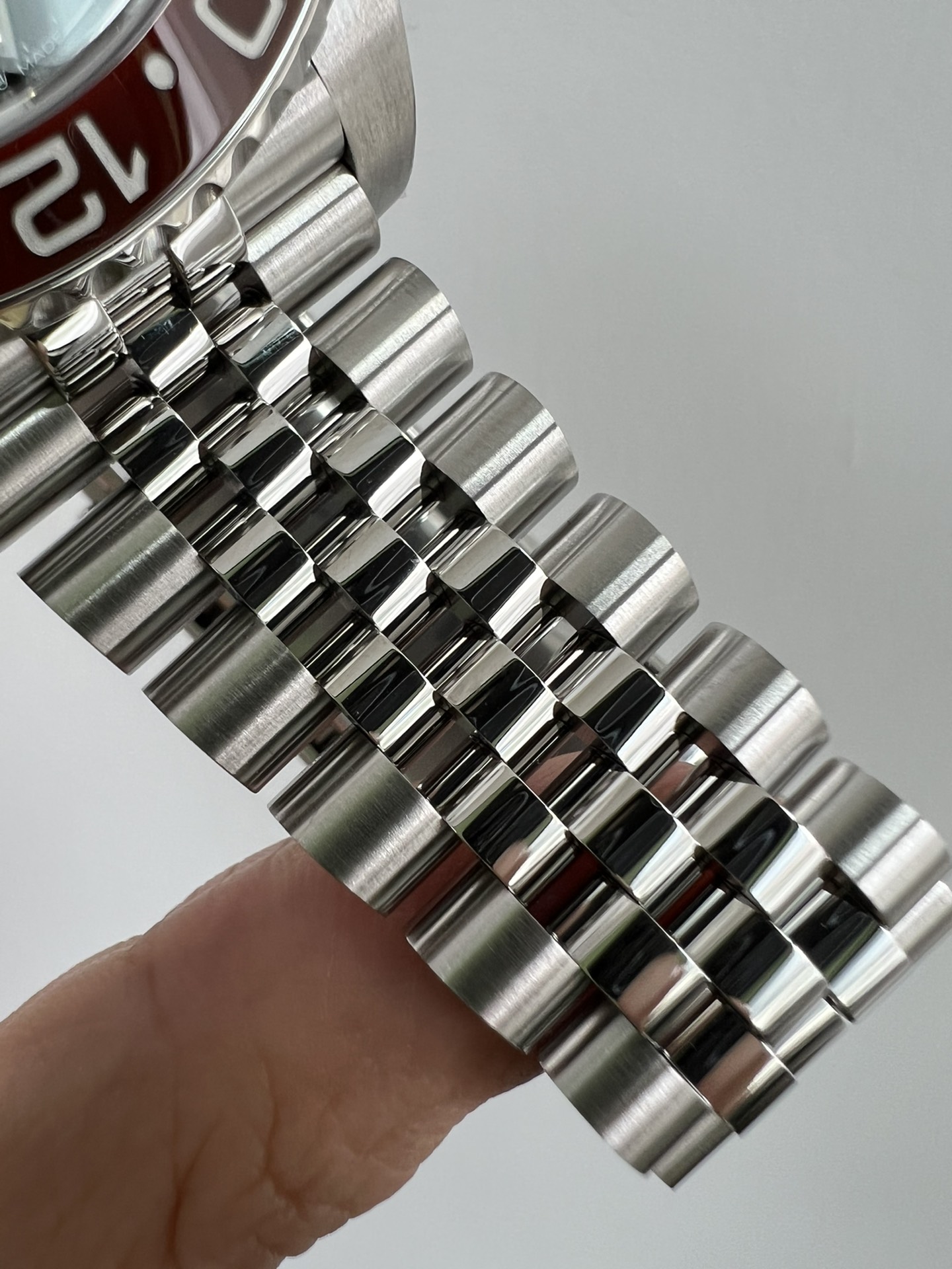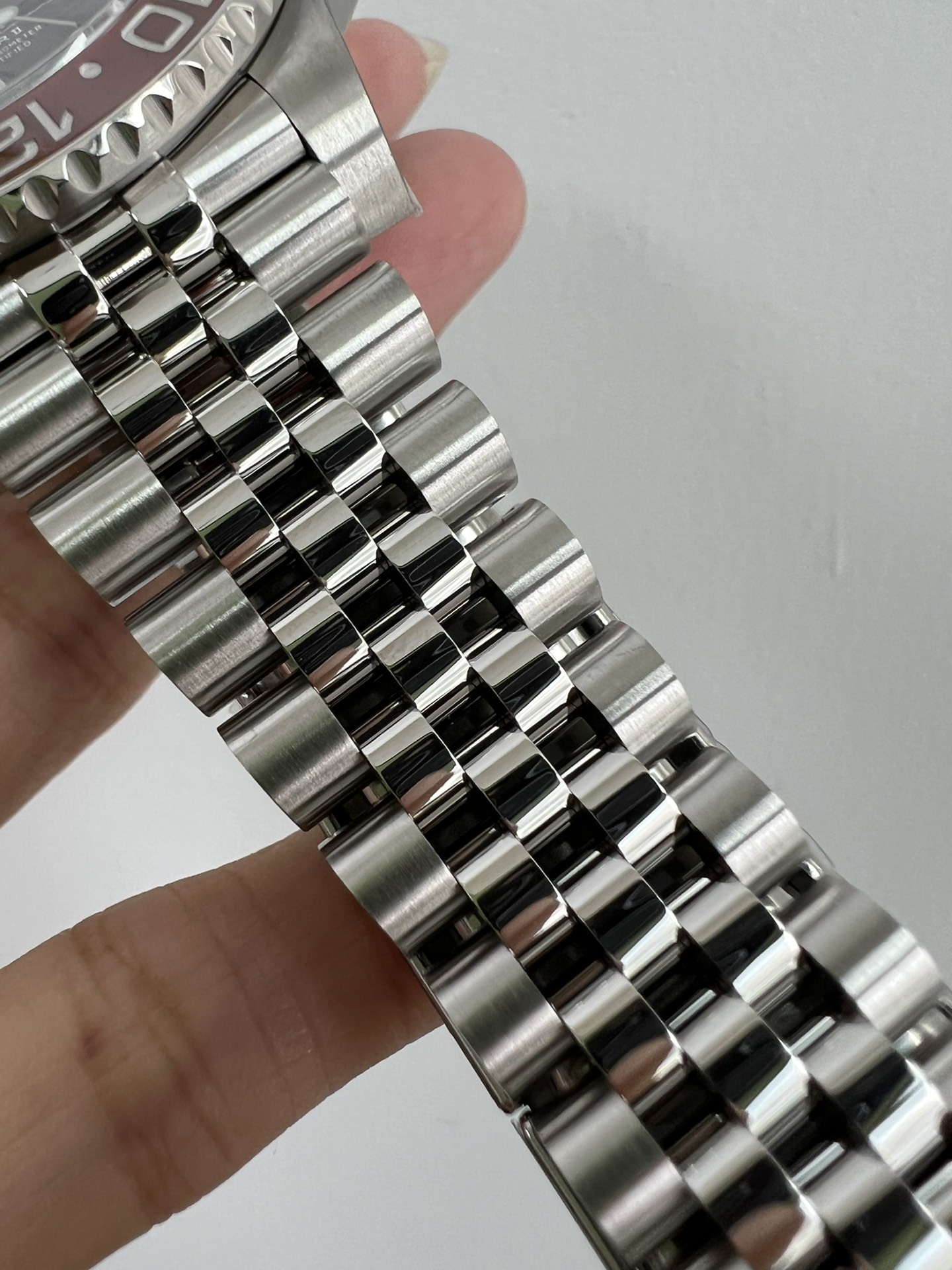 再说说这个钢带,采用AOMR钢带,这样的904L钢明显纯度更高,体现出来就是钢带更白,拉砂位置更加细腻,钢带密度高才是高,重点提一下,此钢带由真AR钢带厂独家提供,市面上不可能有跟我一摸一样的钢带