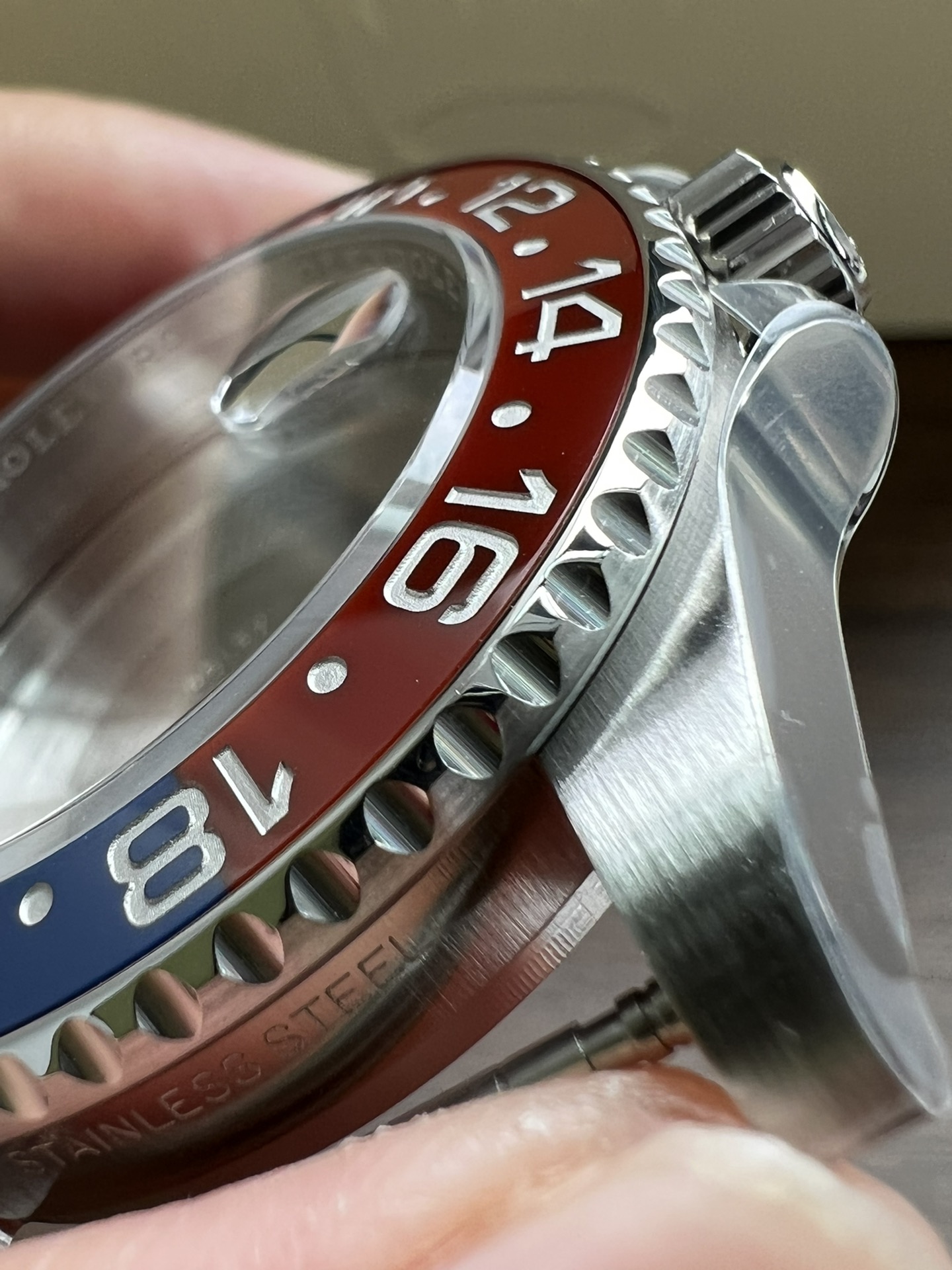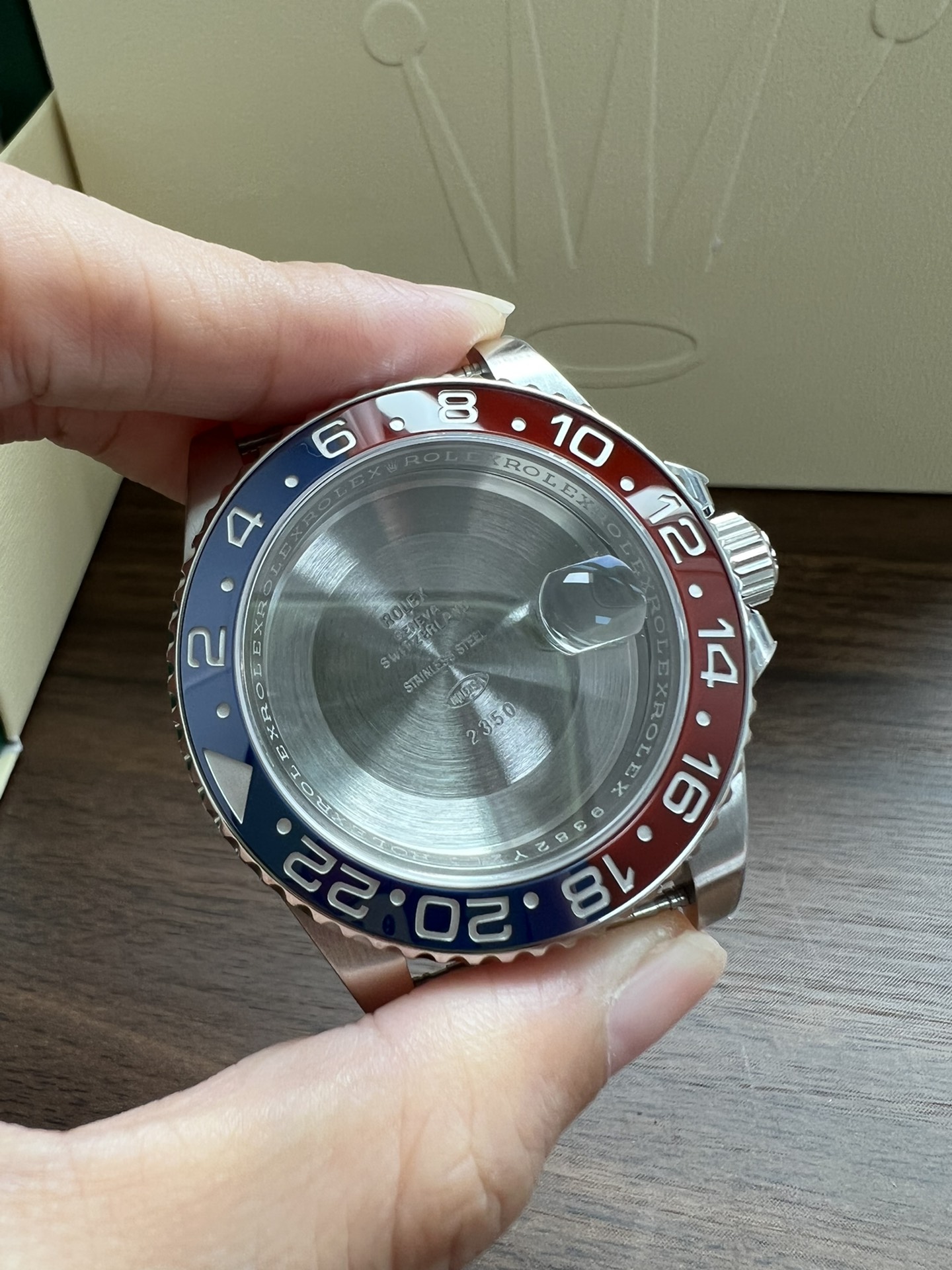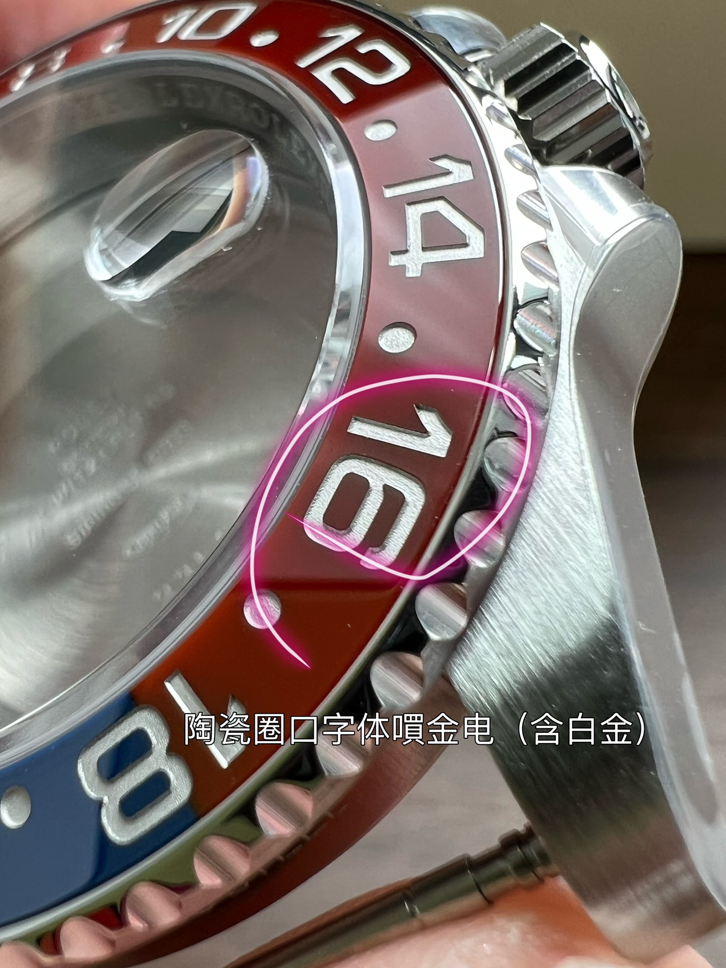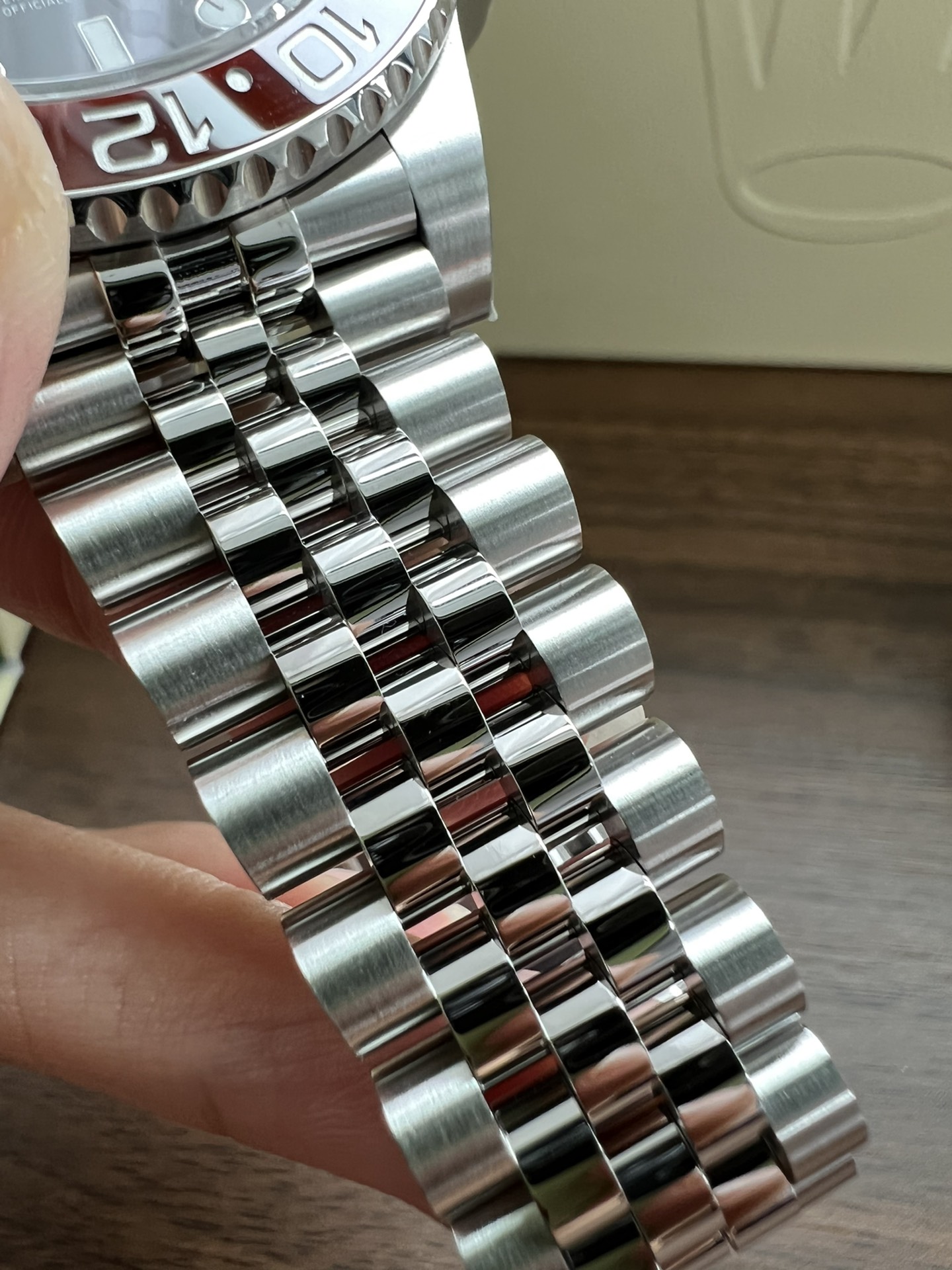再说说这个钢带,采用AOMR钢带,这样的904L钢明显纯度更高,体现出来就是钢带更白,拉砂位置更加细腻,钢带密度高才是高,重点提一下,此钢带由真AR钢带厂独家提供,市面上不可能有跟我一摸一样的钢带