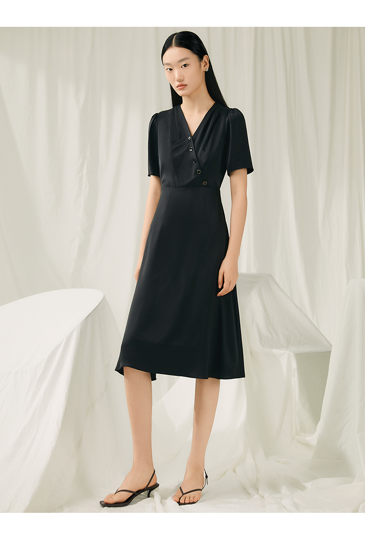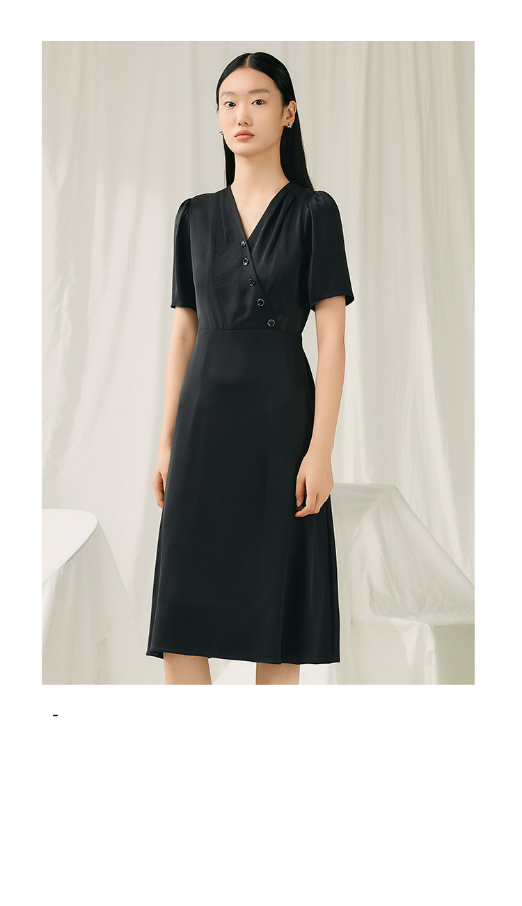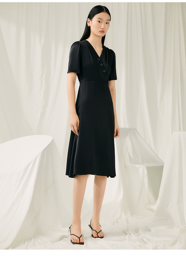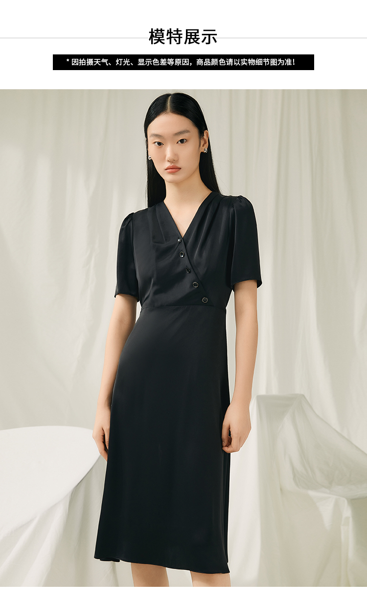 VIMAGE纬漫纪春季新款V领显瘦百搭通勤连衣裙V1907540