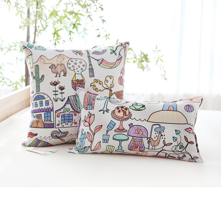 阳春小镇丨手绘靠枕靠包纯棉沙发