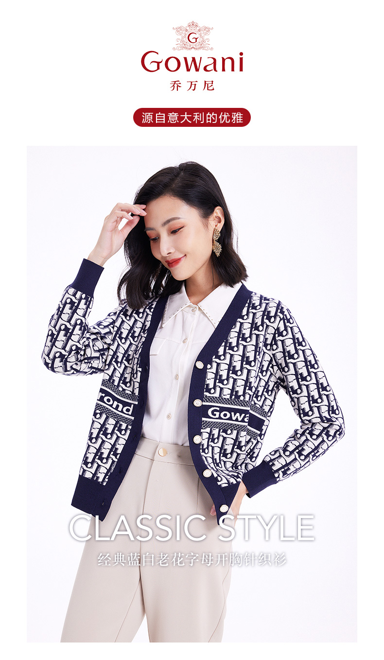 乔万尼针织衫女秋冬新款老花logo法式开衫精致高级感EF4M246