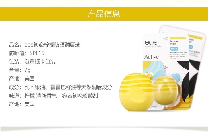 EOS伊欧诗初恋柠檬润唇球SPF15