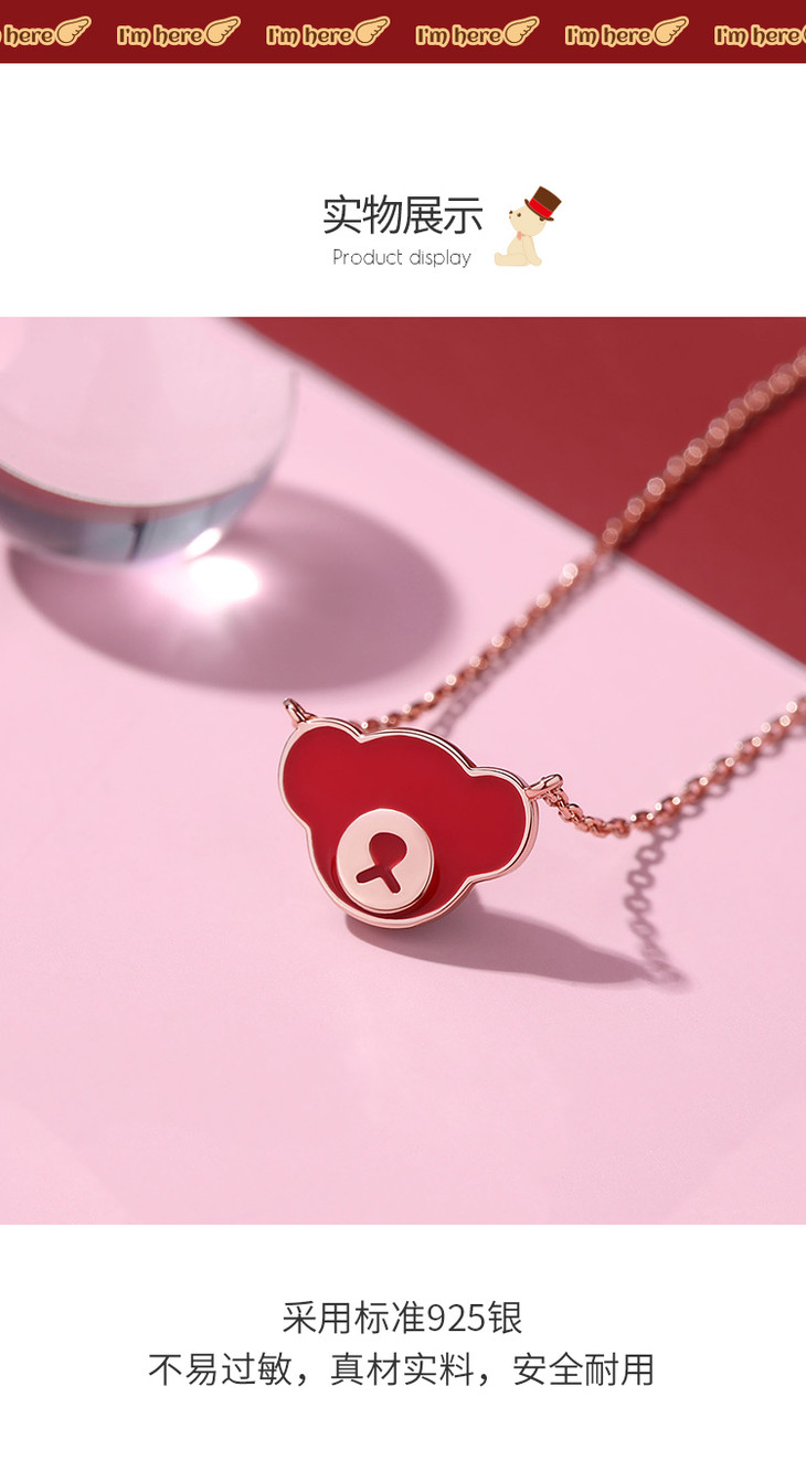 Winy925纯银熊骑士项链送女友闺蜜节日生日礼物