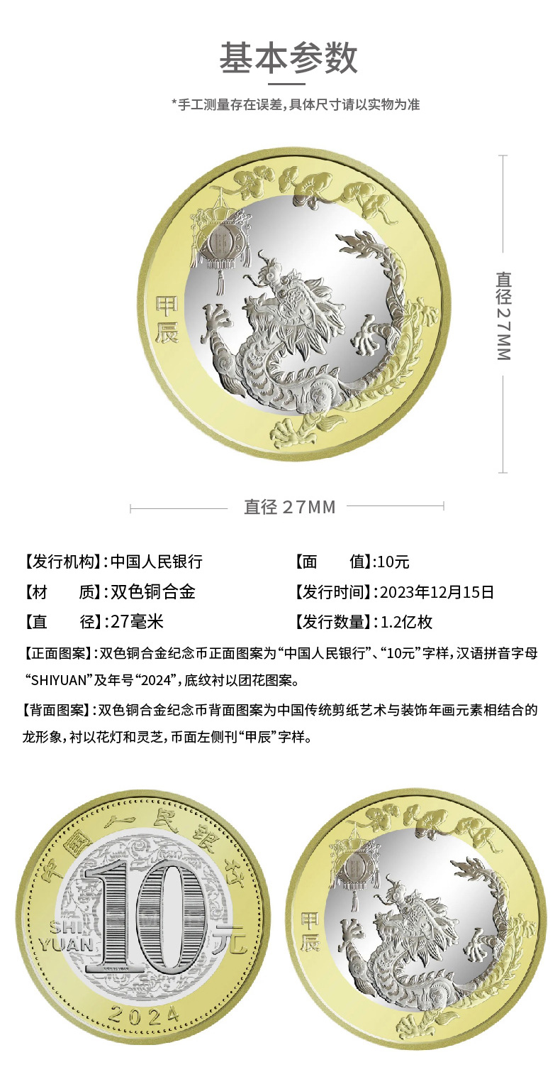 中国金币2024甲辰龙年纪念币 第二轮龙年生肖贺岁纪念币