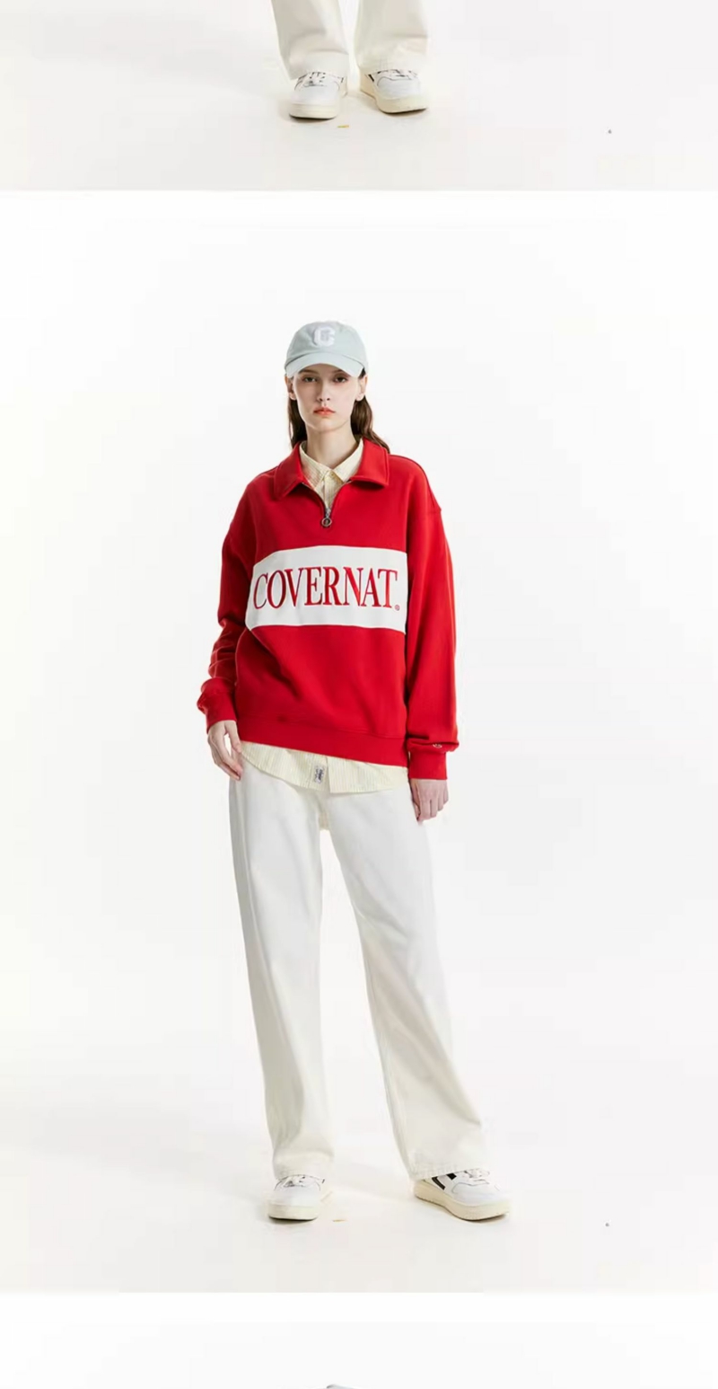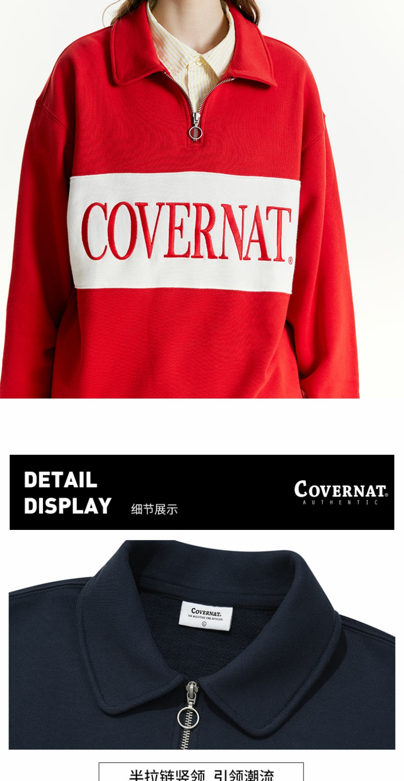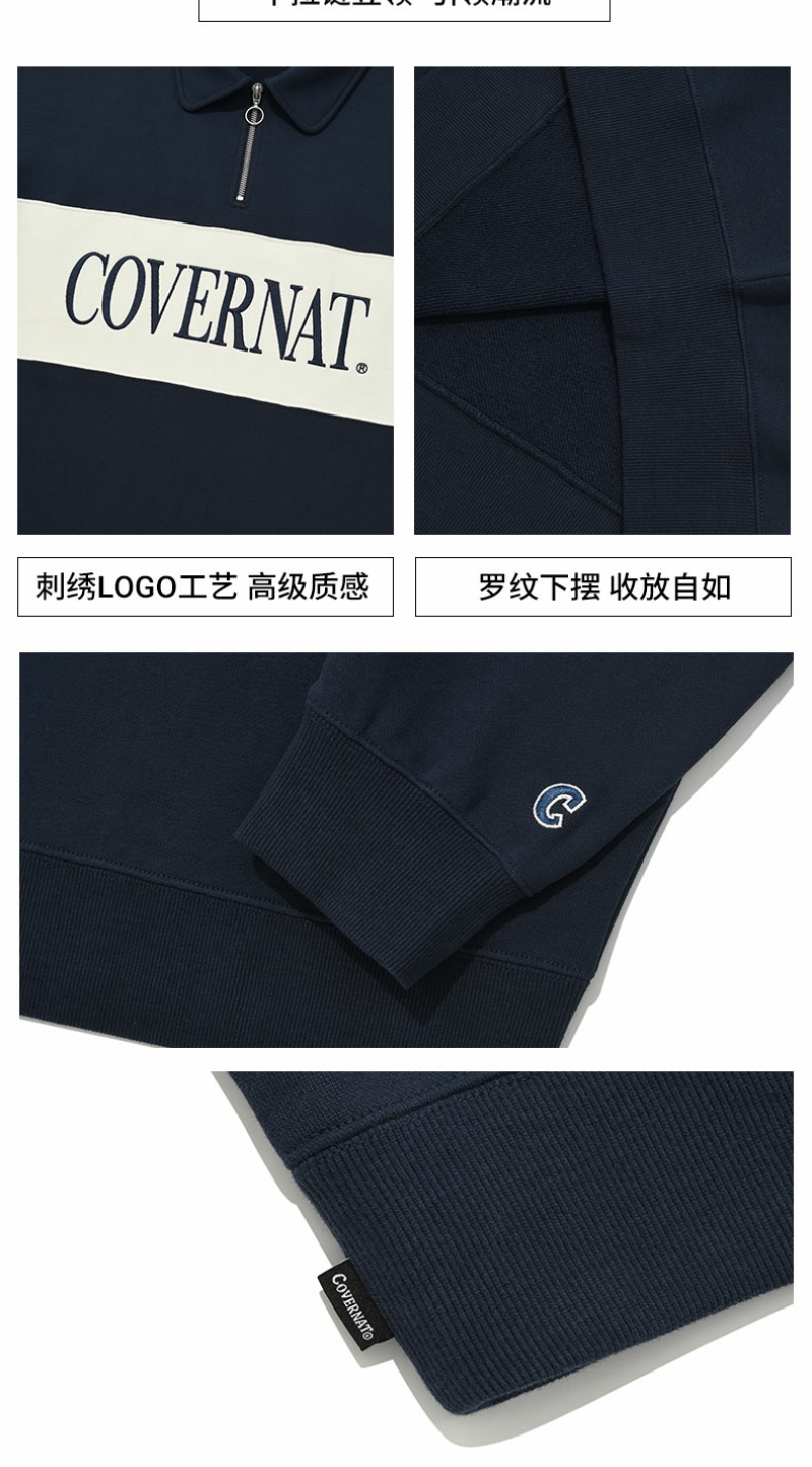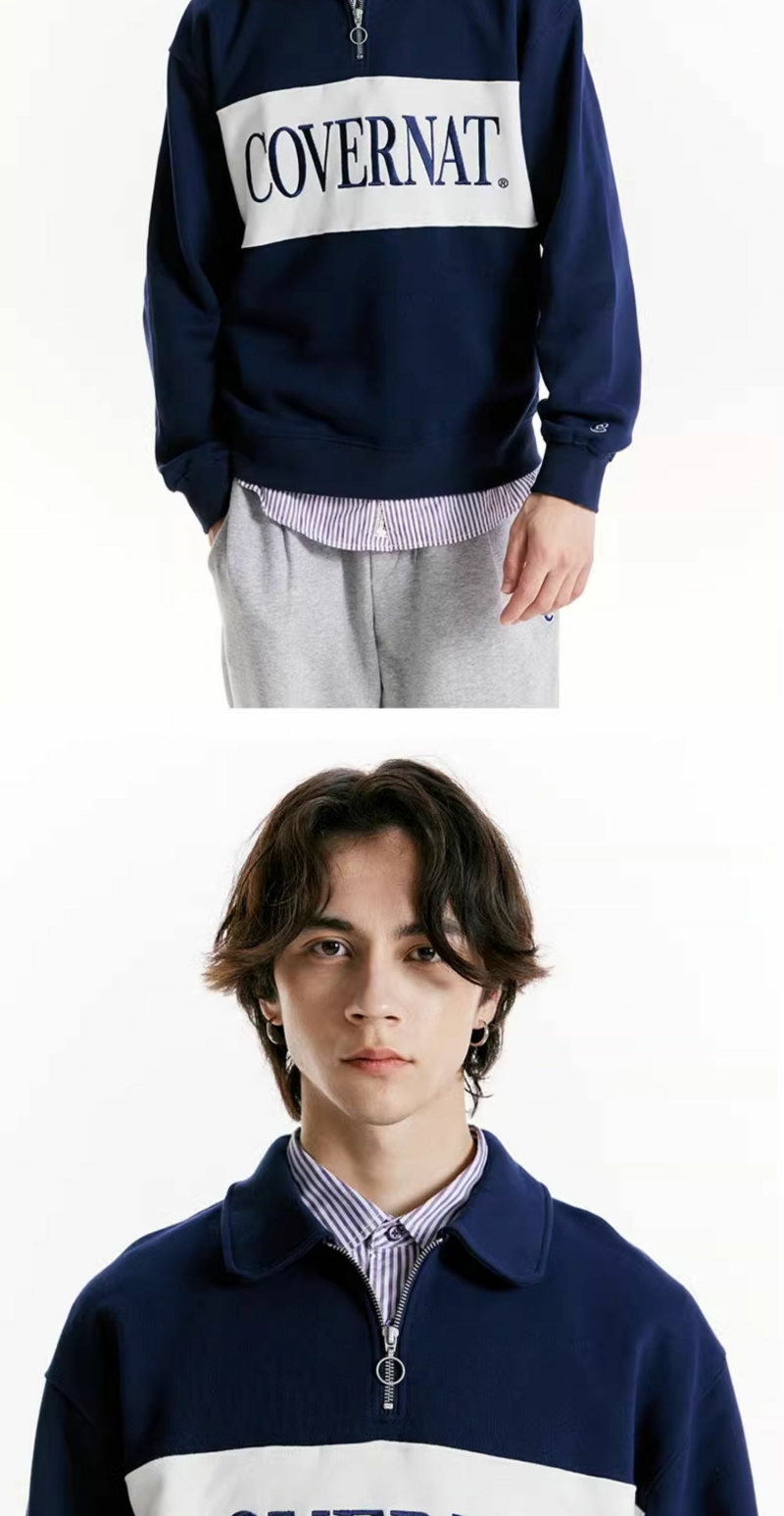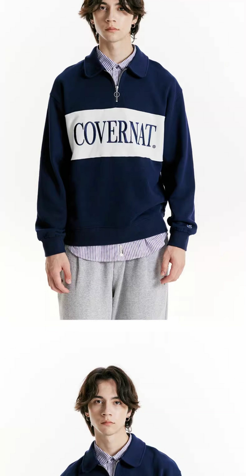 Covernat韩国潮牌24秋季新翻领半拉链套头卫衣男女同款无帽宽松CO2303CR14