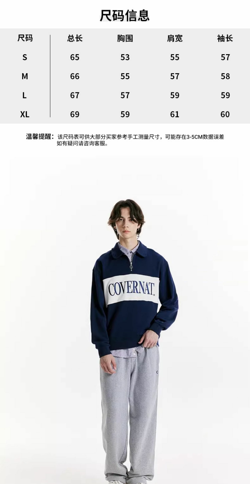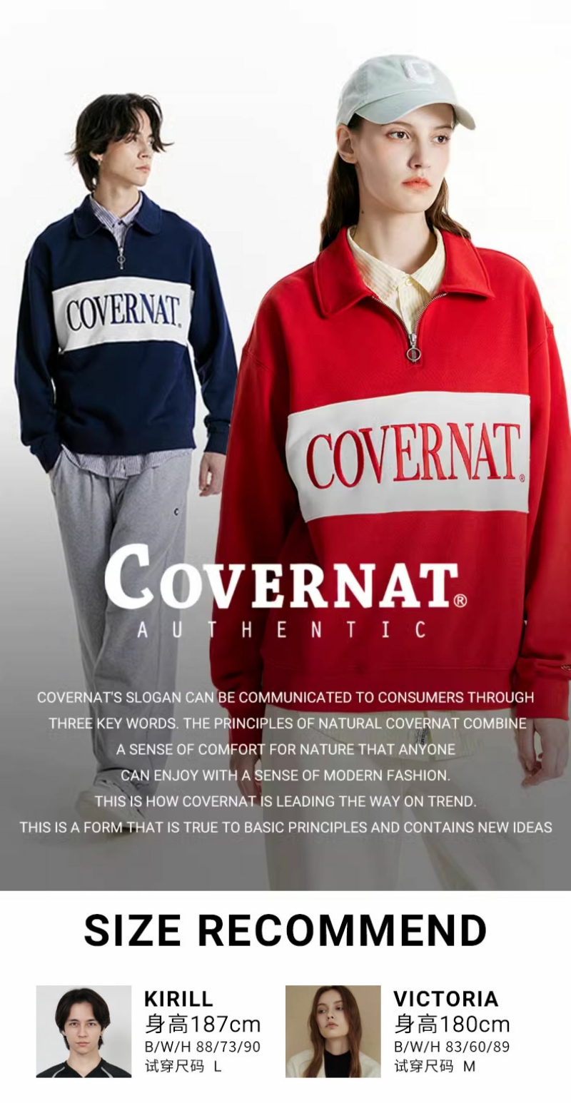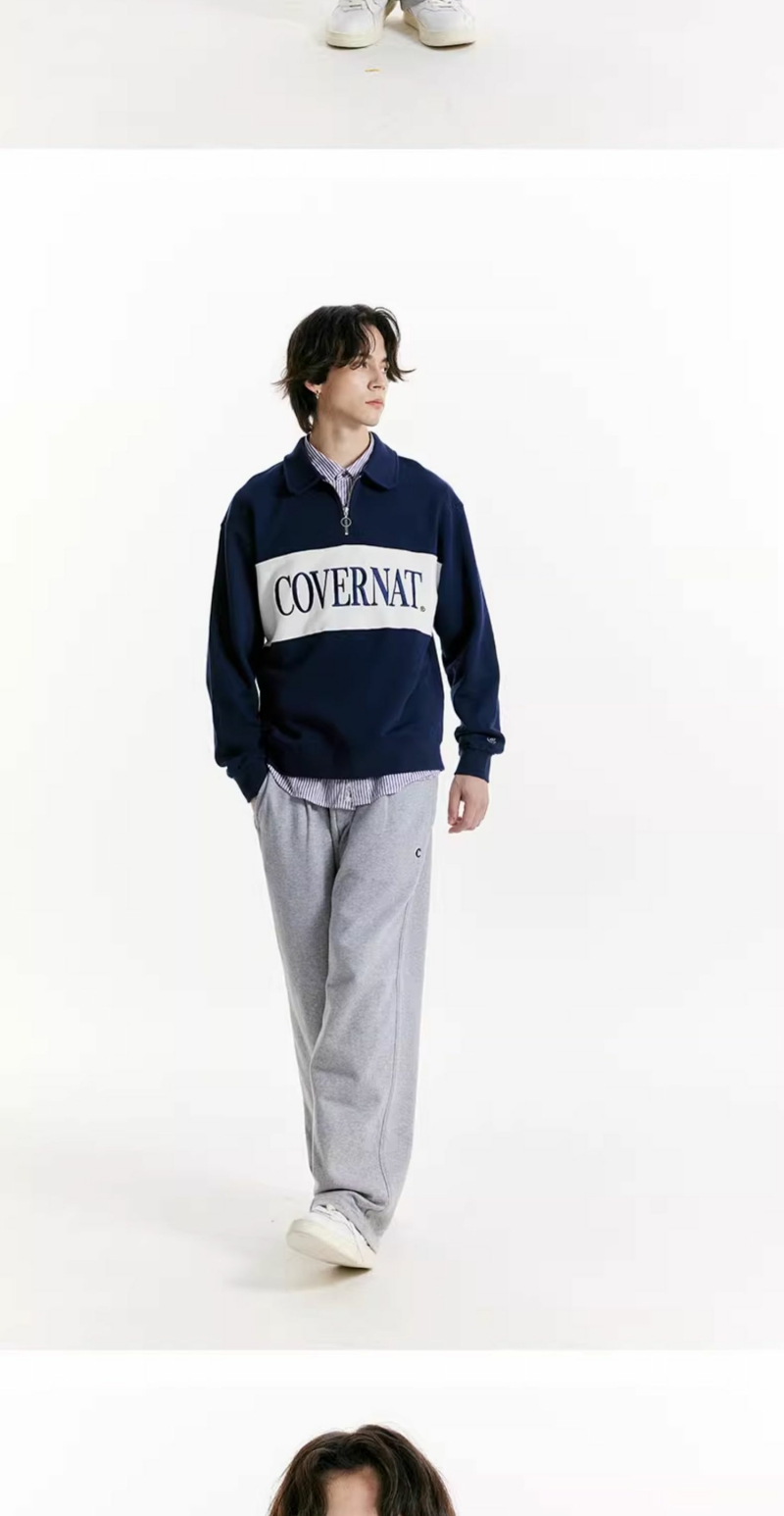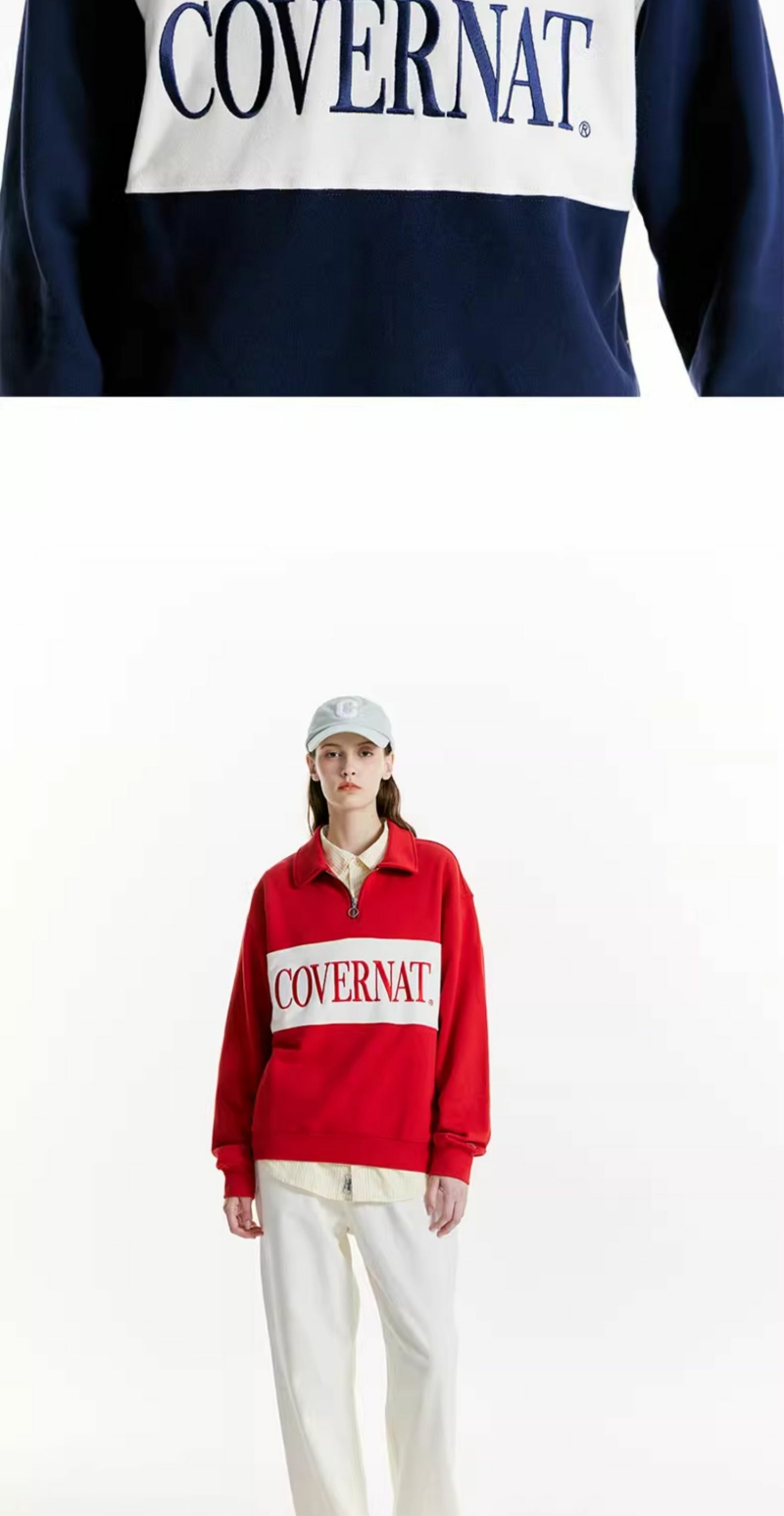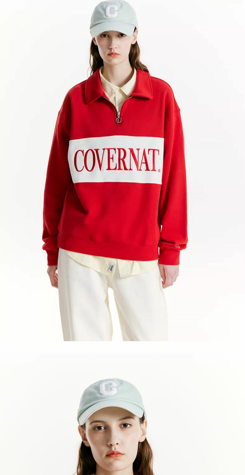 Covernat韩国潮牌24秋季新翻领半拉链套头卫衣男女同款无帽宽松CO2303CR14