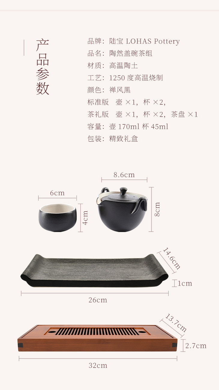 【彼达思】台湾陆宝 陶然盖碗茶组-禅风黑(1壶2杯)