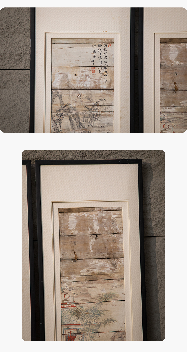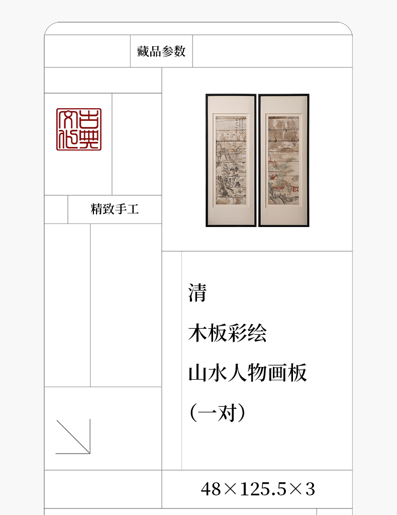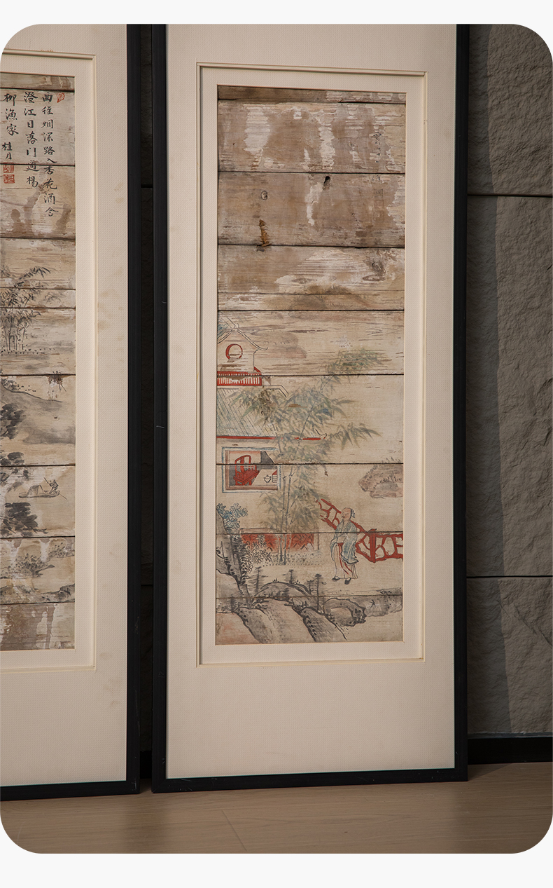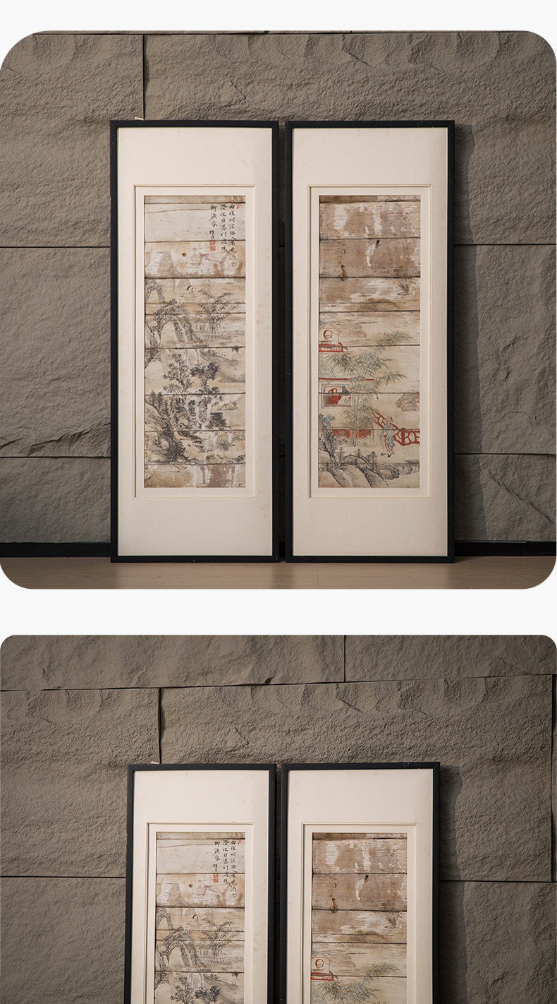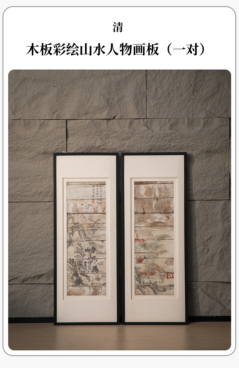 清 木板彩绘山水人物画板(一对)