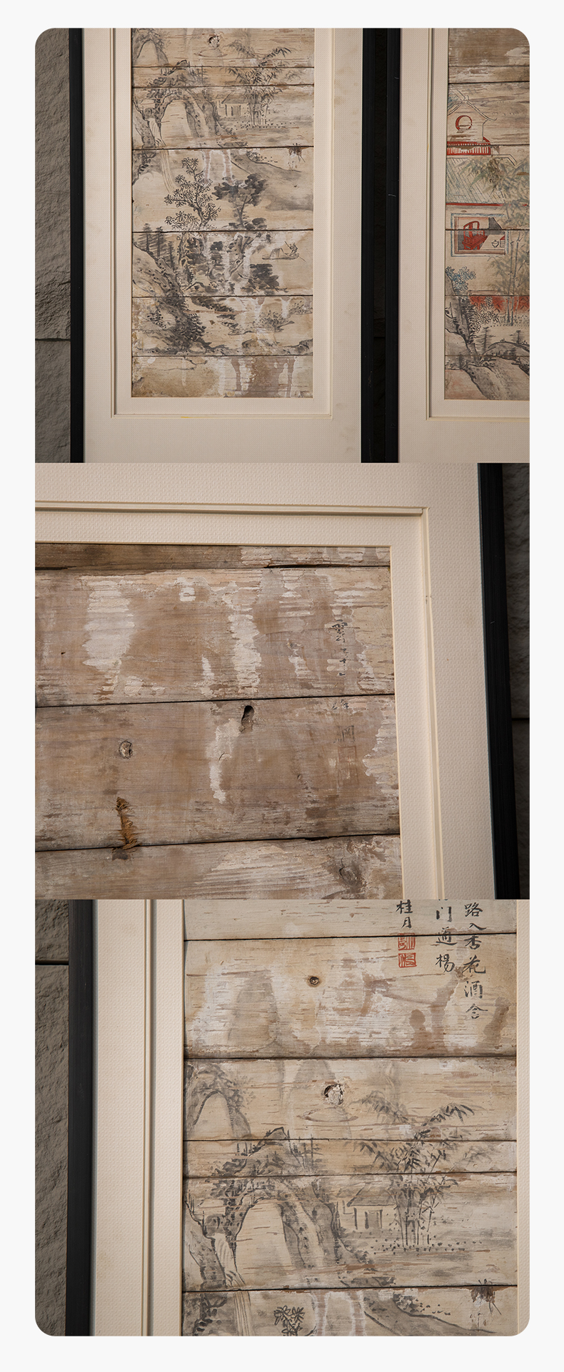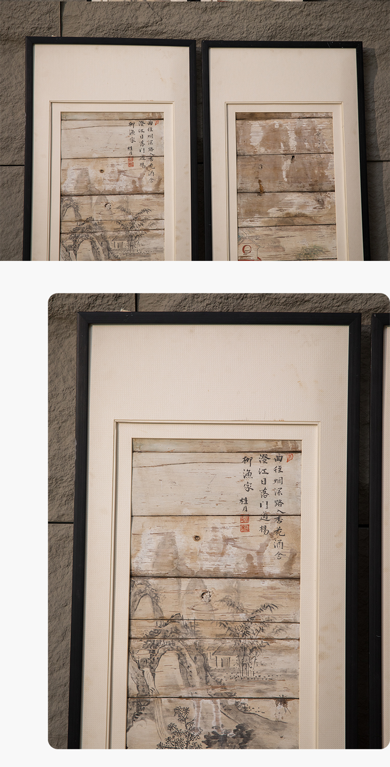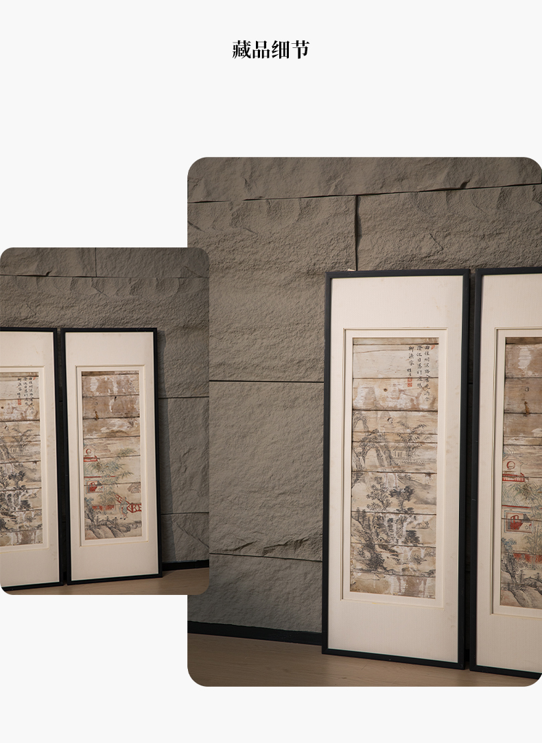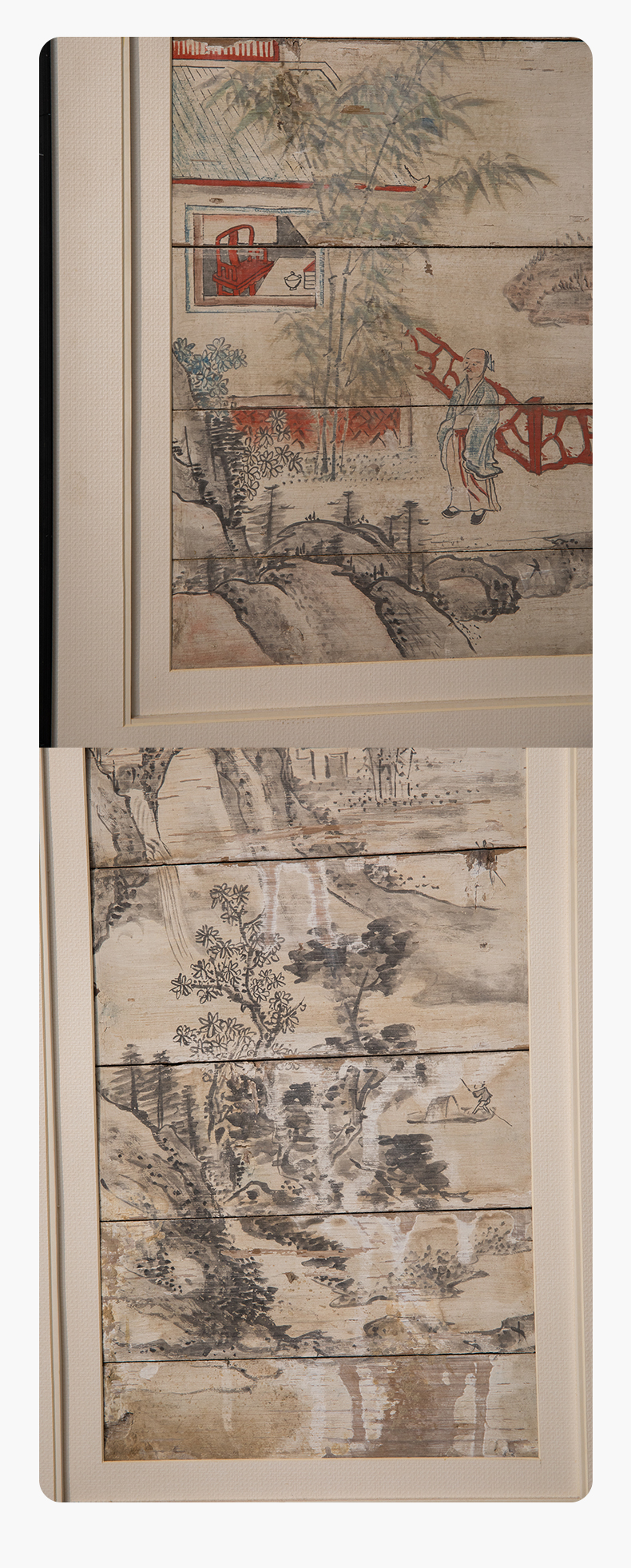 清 木板彩绘山水人物画板(一对)