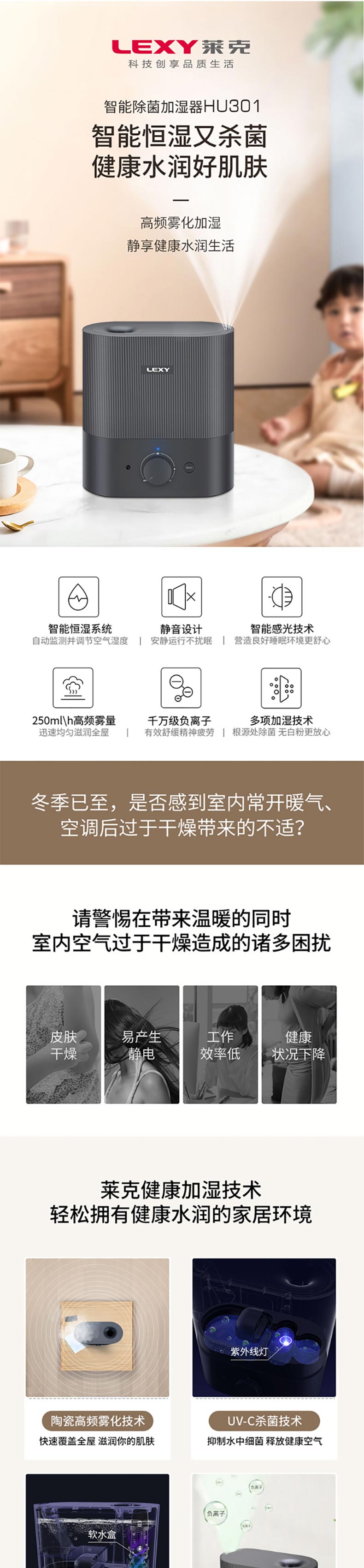 莱克LEXY 家用静音智能除菌加湿器HU301