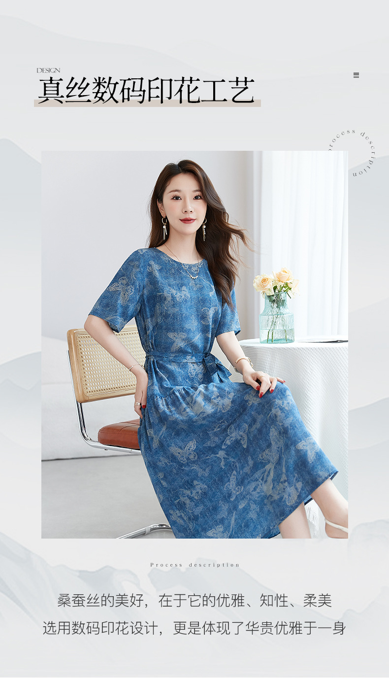 原创国风显瘦中长裙,极简通勤真丝连衣裙SM-82501731