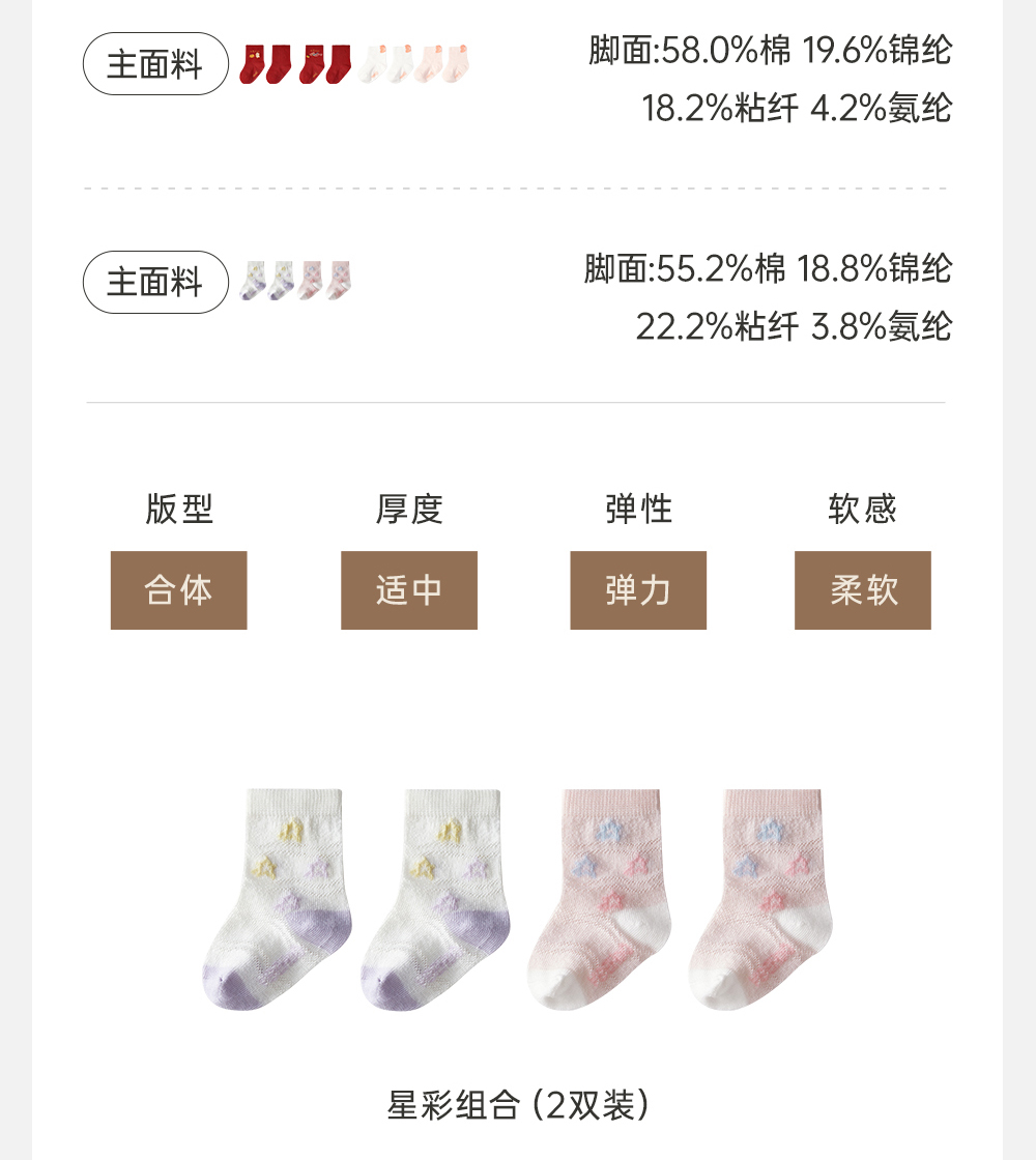 【商场同款】英氏儿童抑菌防臭袜子宝宝可爱袜子两双装新款