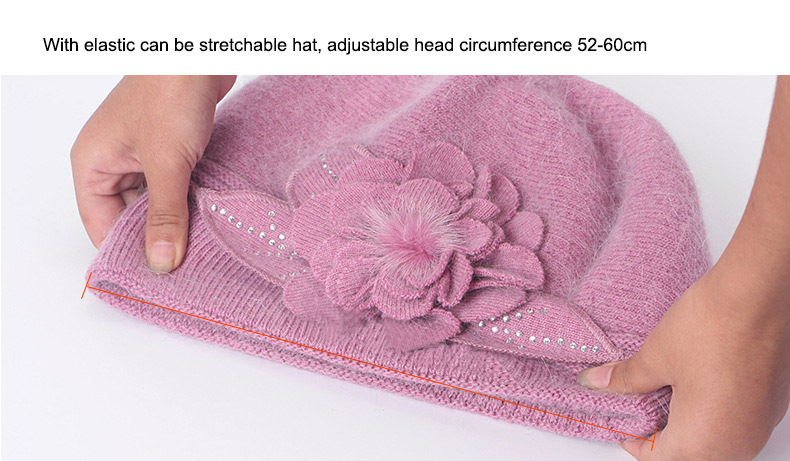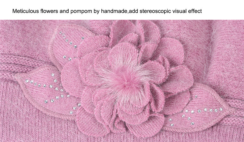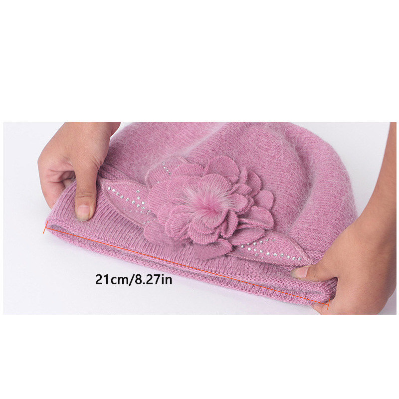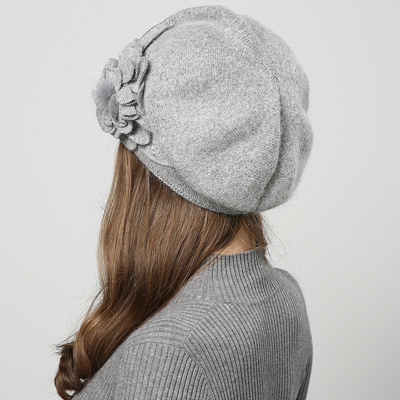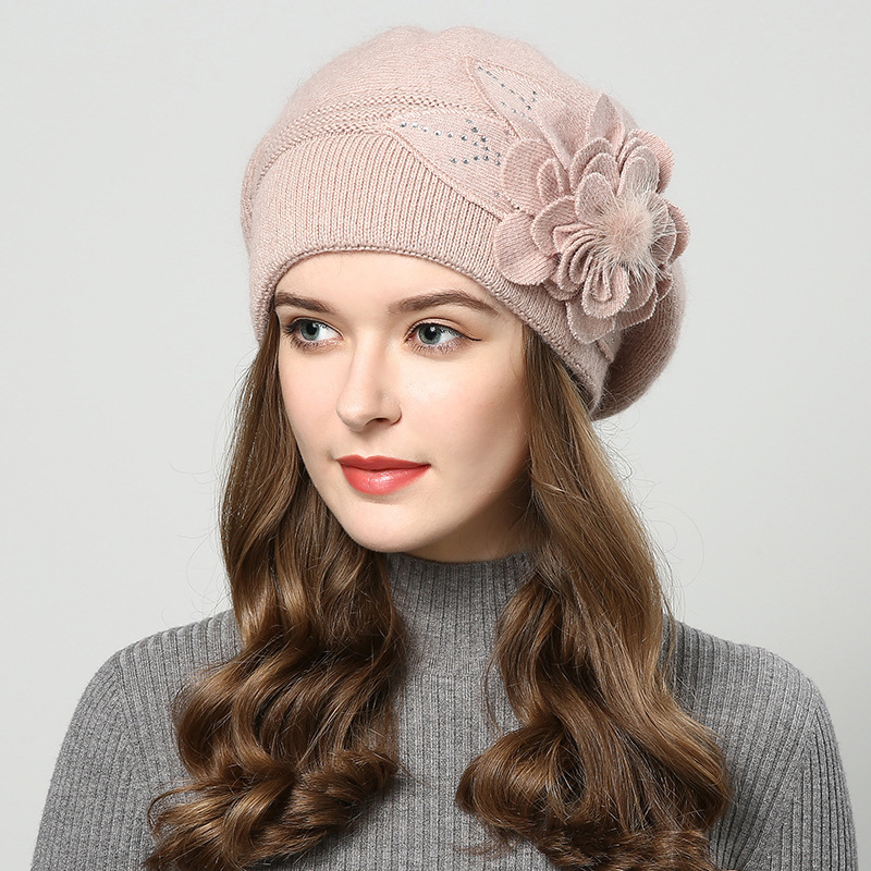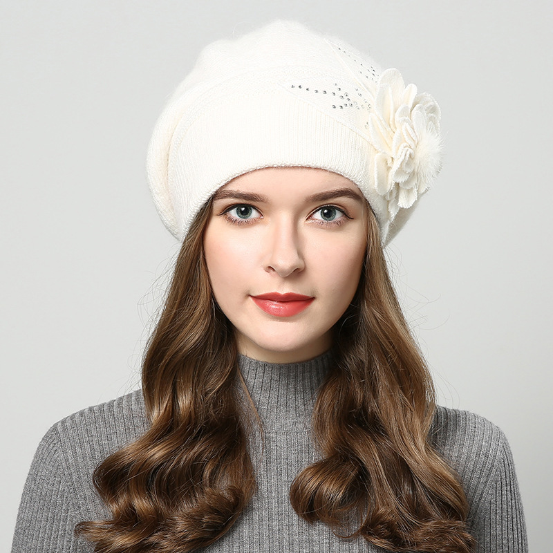 雀说 百搭兔毛针织毛线帽女加厚加绒保暖护耳套头贝雷帽LQM-554-1