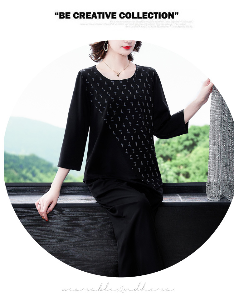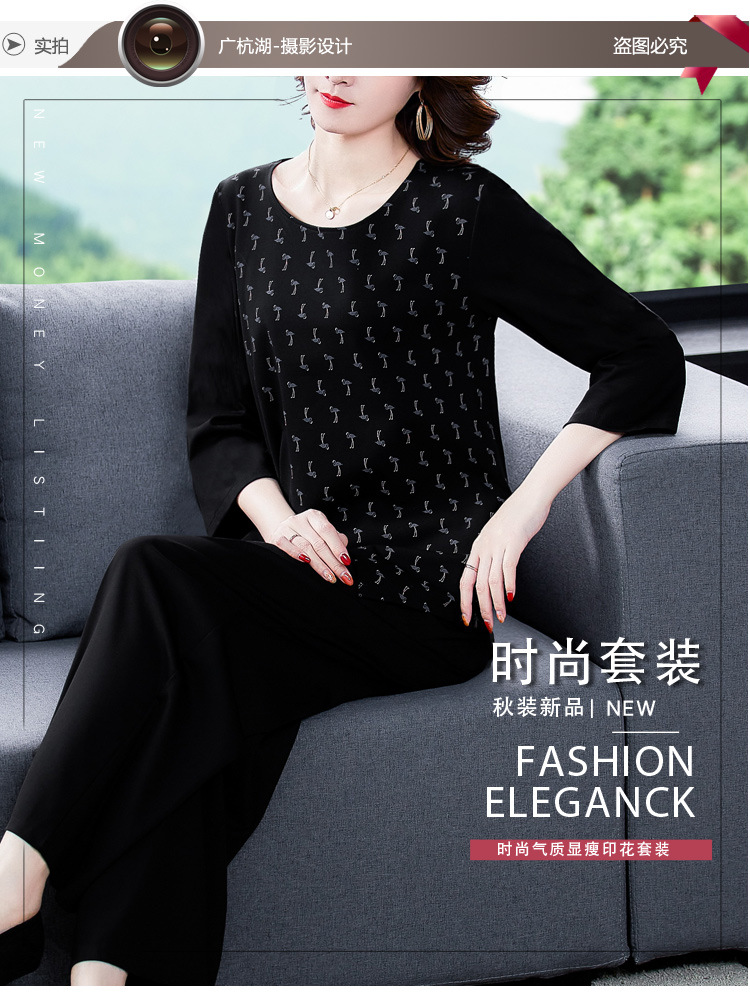 SYF-5008中老年妈妈装阔太太显瘦洋时尚阔腿裤套装两件套