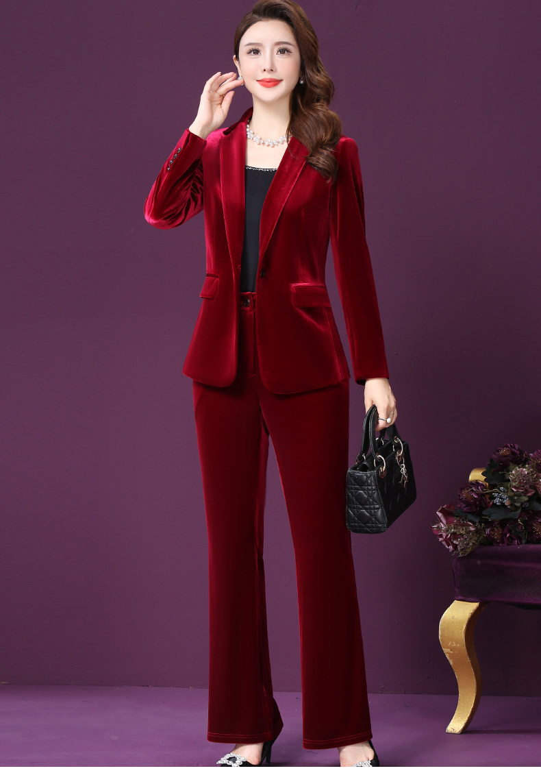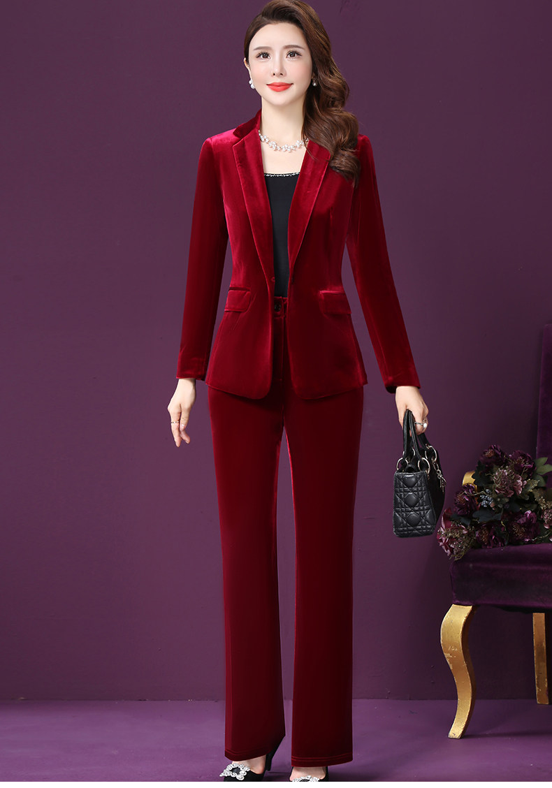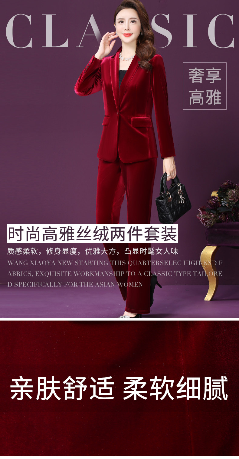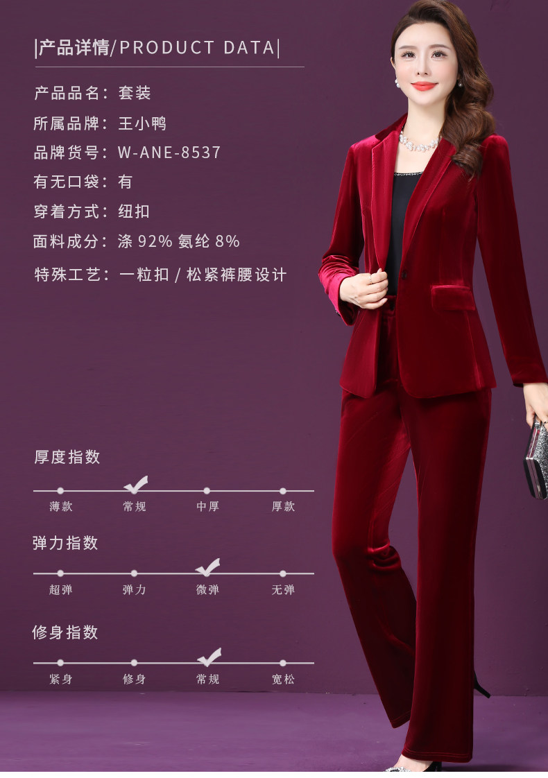 WXY-W-ANE-8537金丝绒西装两件套女时尚洋气百搭减龄套装