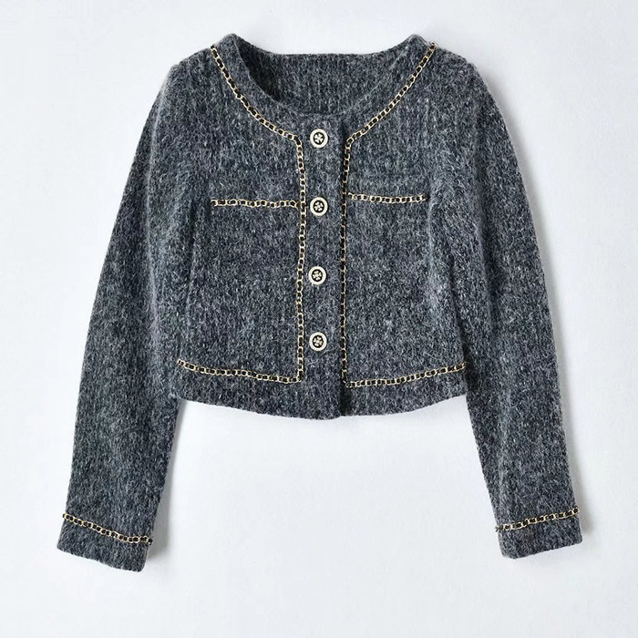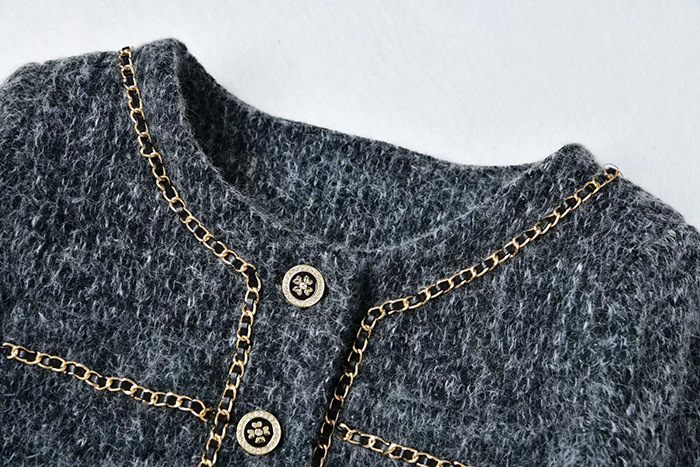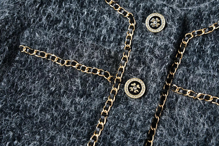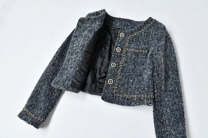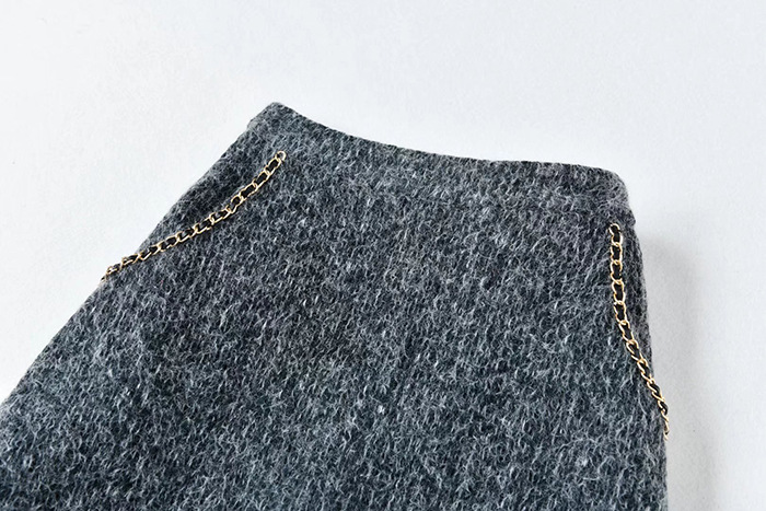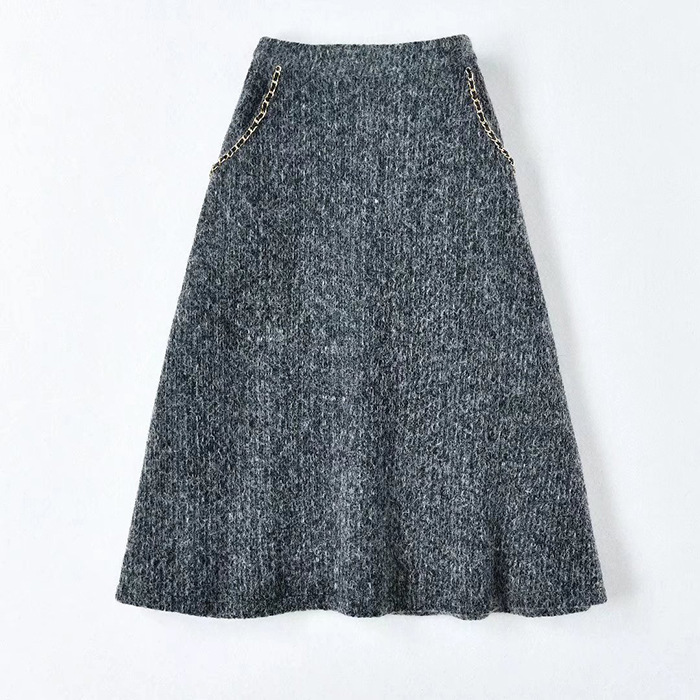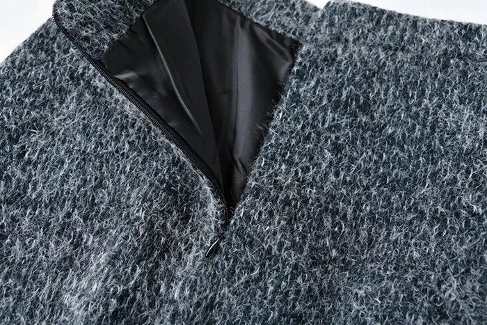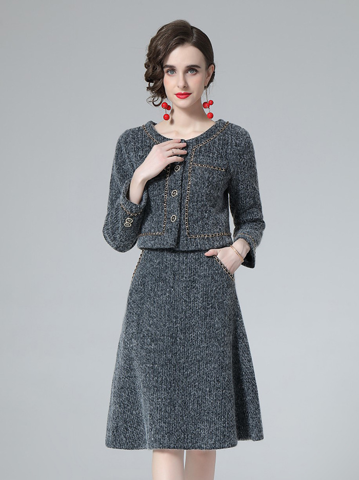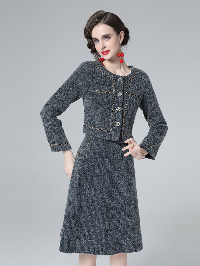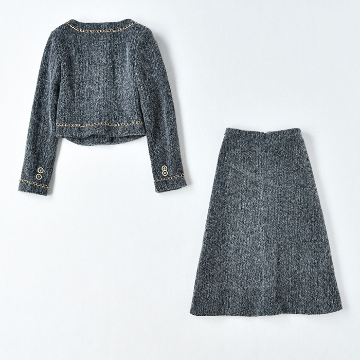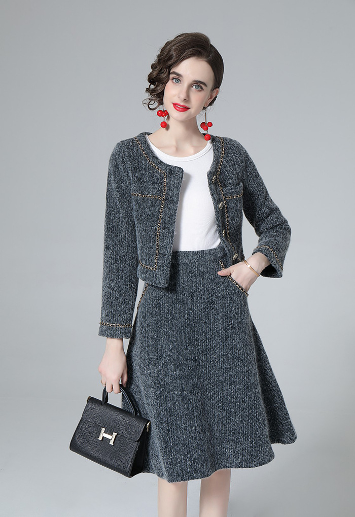 2022春季小香风灰轻奢毛绒短款外套A字半身裙两件套 BHS