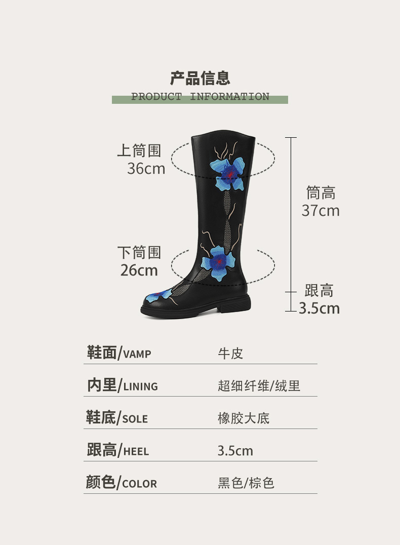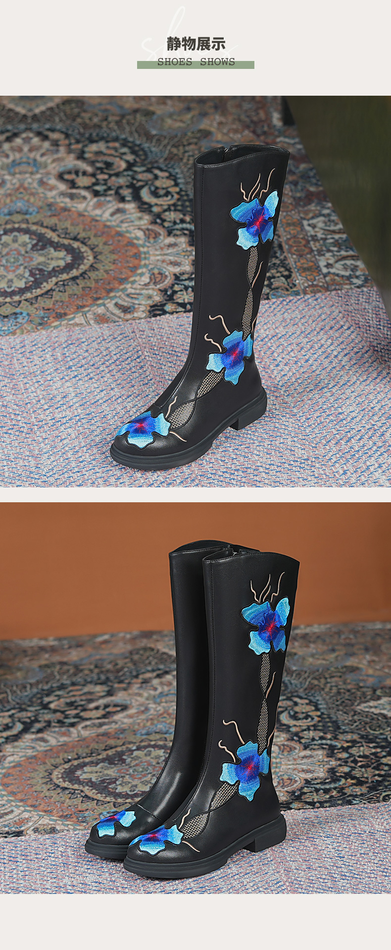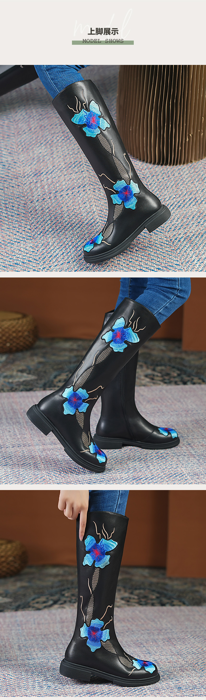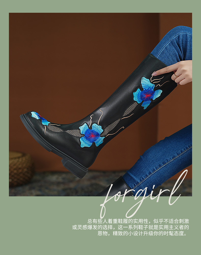 个性百搭,民族风刺绣不过膝长筒靴YJX-2169