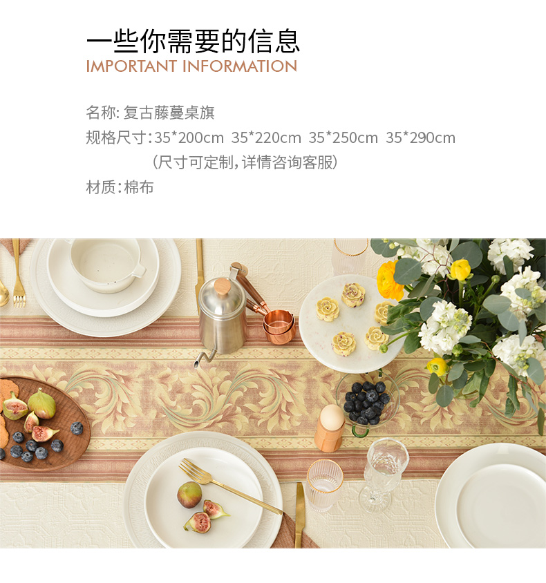 复古藤蔓桌旗轻奢高端田园复古茶几桌旗