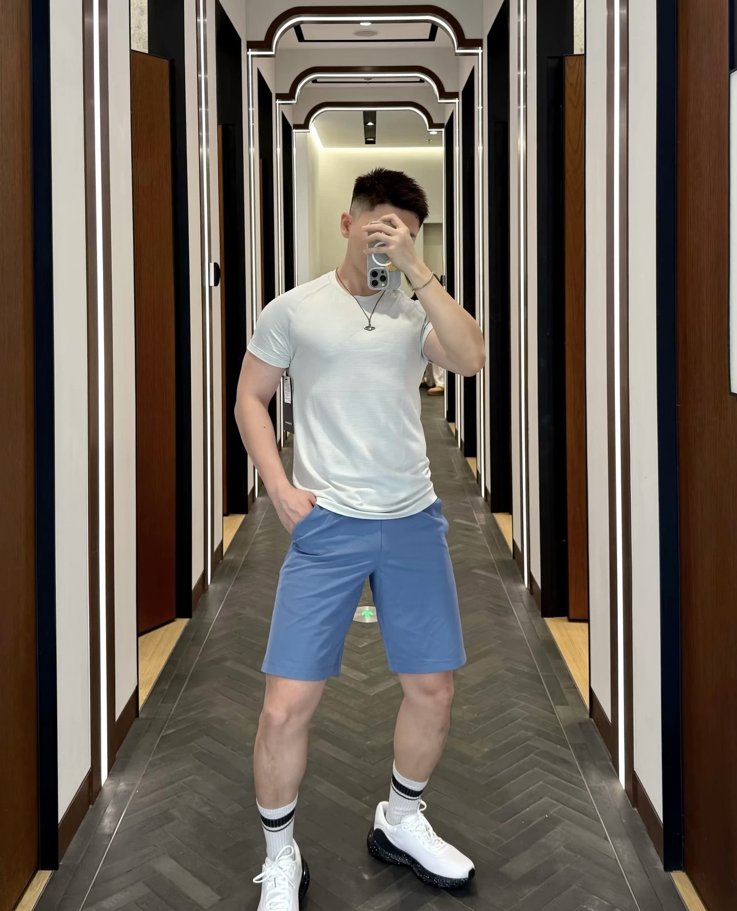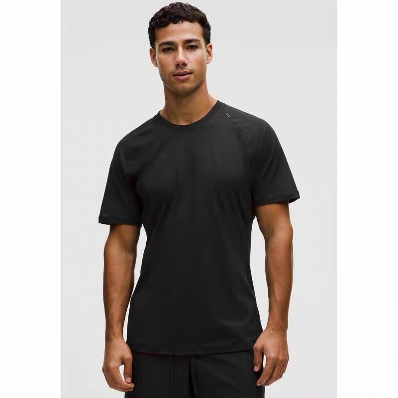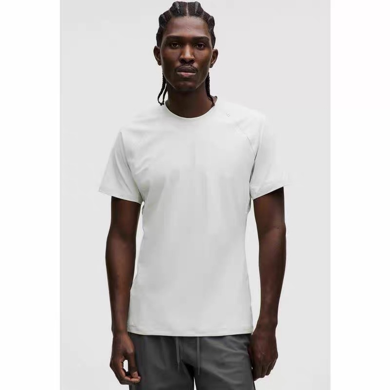 点此购买 lulu露露春夏男士扭缝剪裁运动休闲纯色短袖T恤 tuo 343900