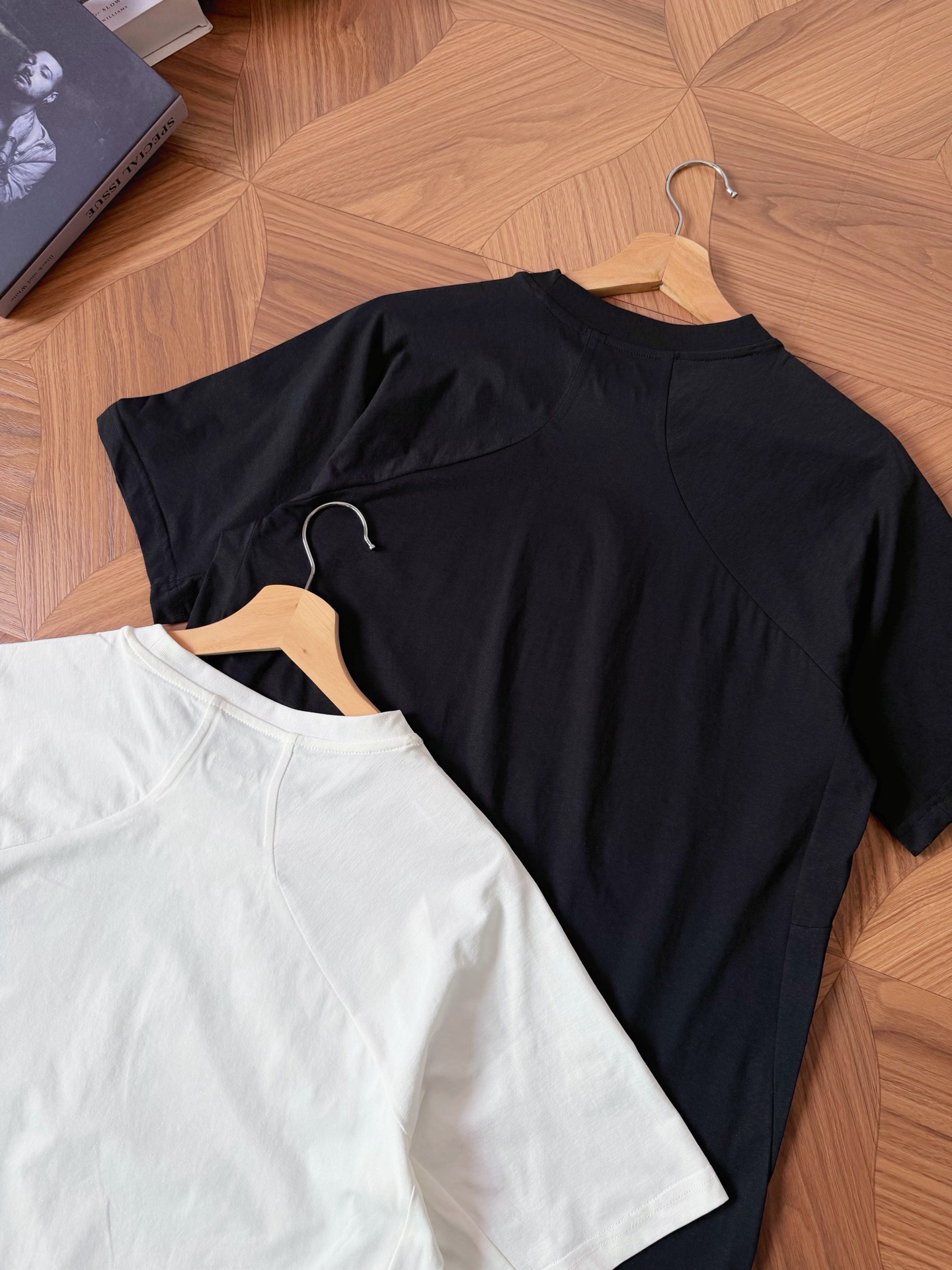 面料采用高端的舒弹棉制作而成,面料舒适透气面料表面有光泽感,手感丝滑,单向导湿,透气凉感。合适运动兼日常通勤穿着。从领口延伸至腋下的斜向剪裁,减少肩部缝线摩擦,提升运动时的抬臂自由度,同时修饰肩线,让版型更利落。背部采用多片式立体剪裁,贴合背部曲线,兼顾透气与活动空间,避免运动时面料紧绷。落肩设计更显利落大气,后下摆依旧保留原设计硅胶小露标,简洁大气一点也不失风度。靠剪裁和面料质感体现品质!