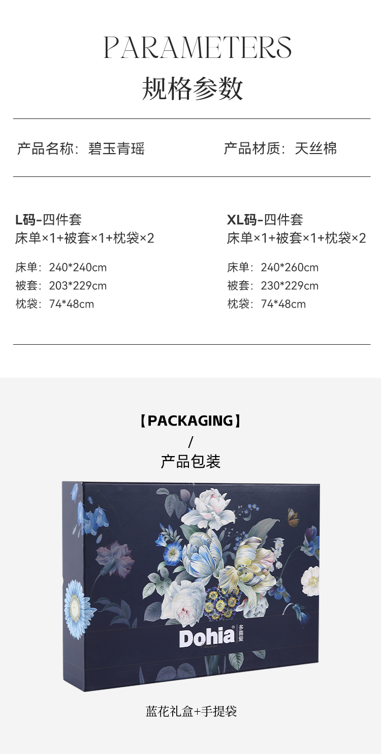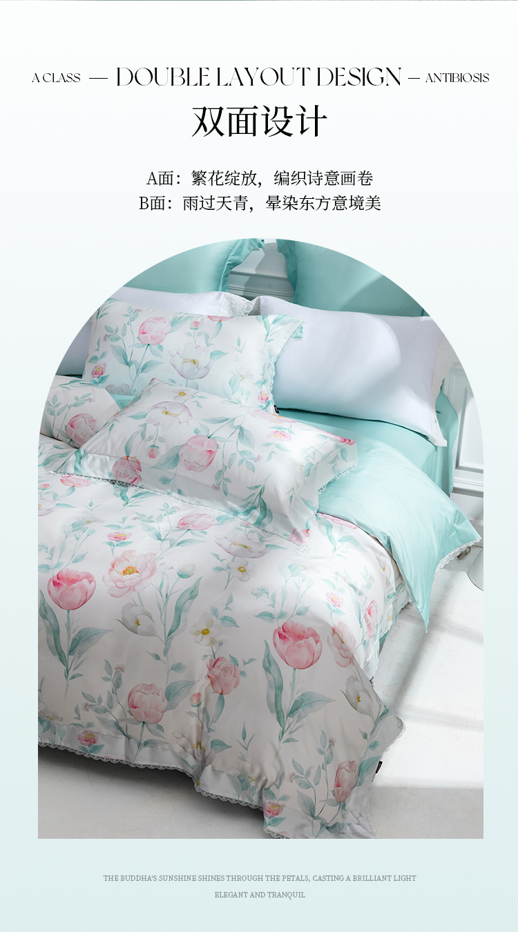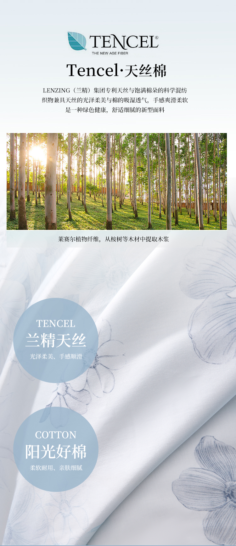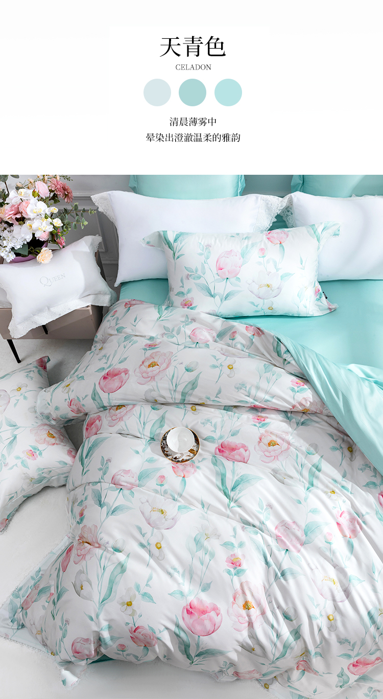 多喜爱 60S天丝棉四件套 浅陌清欢/碧玉青瑶 【兰精天丝】【60S缎纹】【出框宽边】【专利床单设计】【礼盒包装】