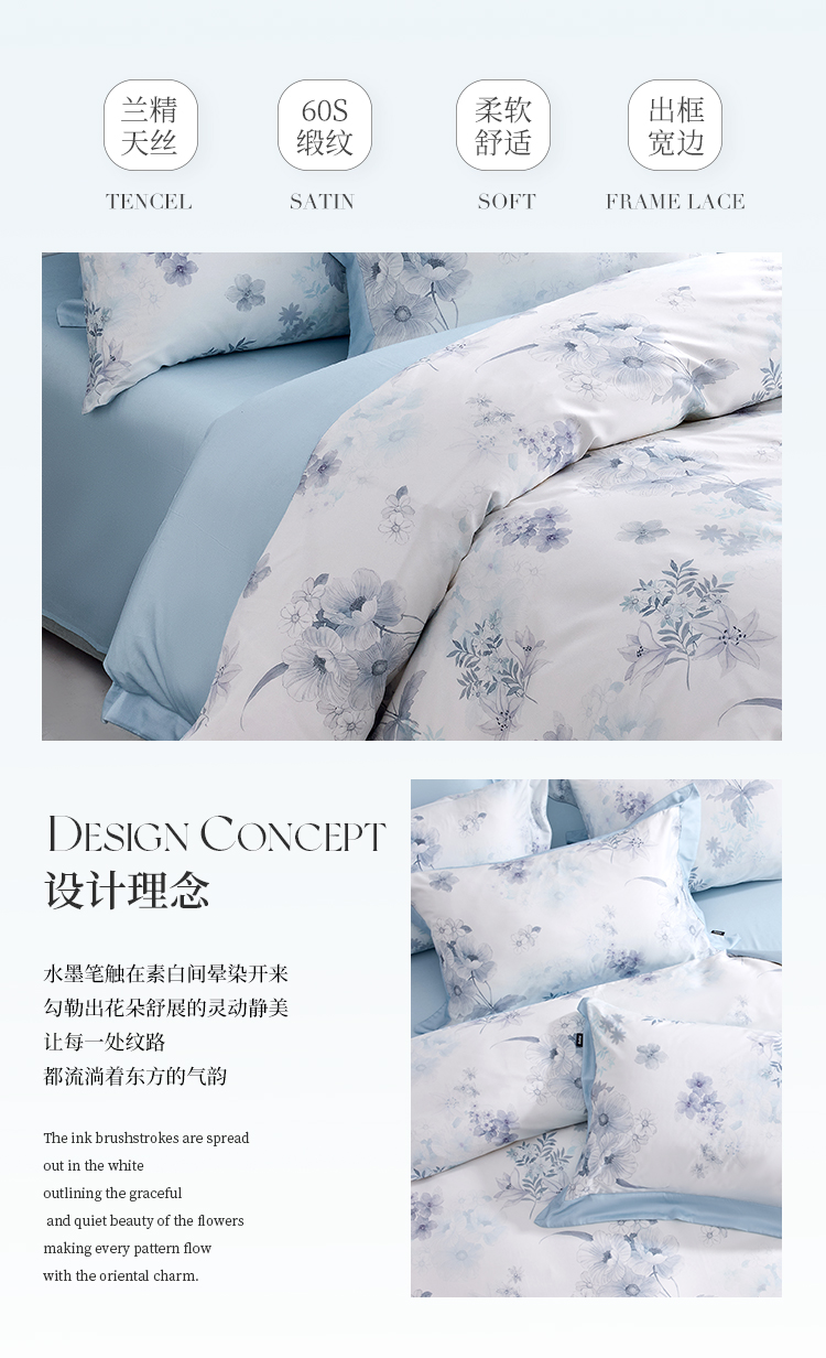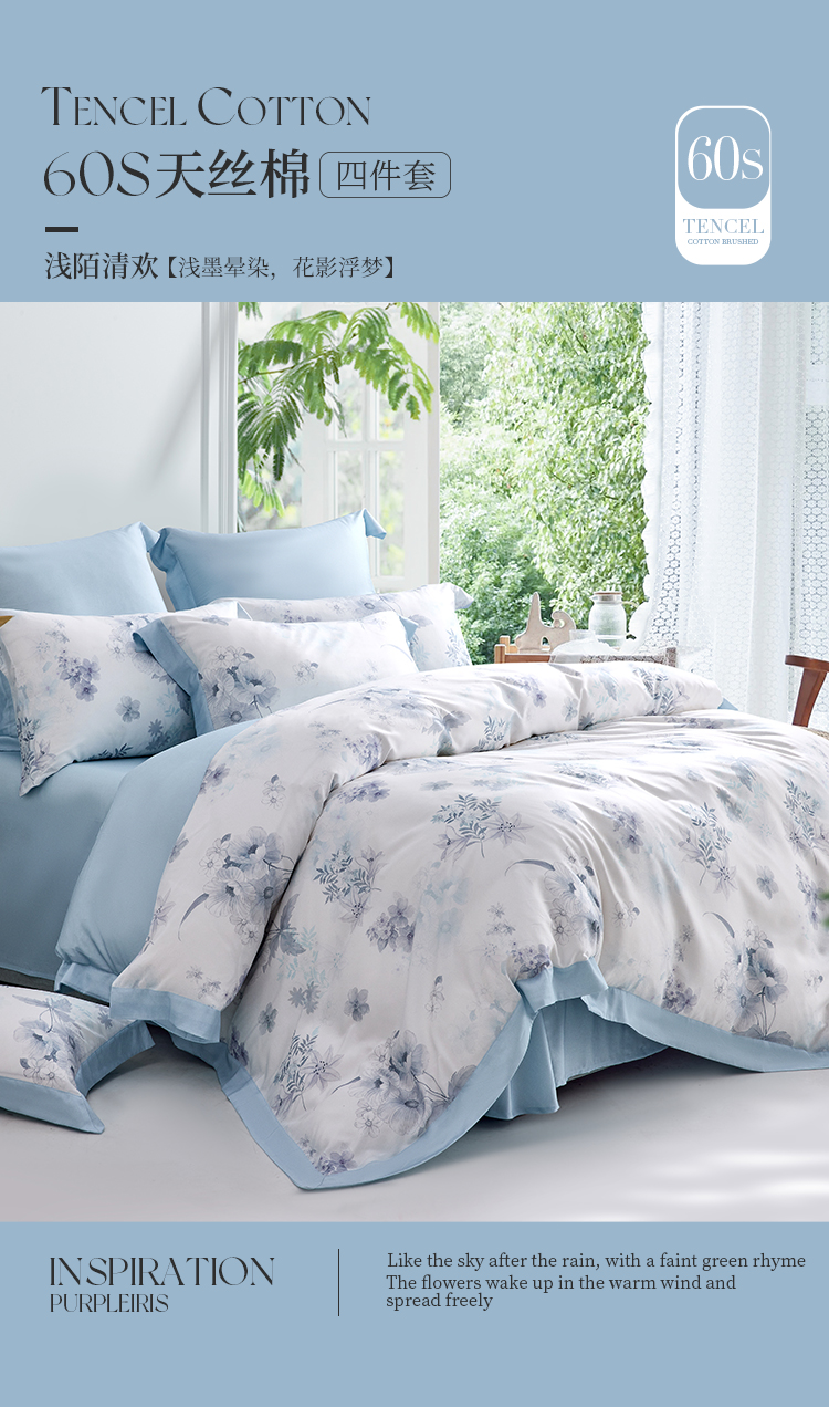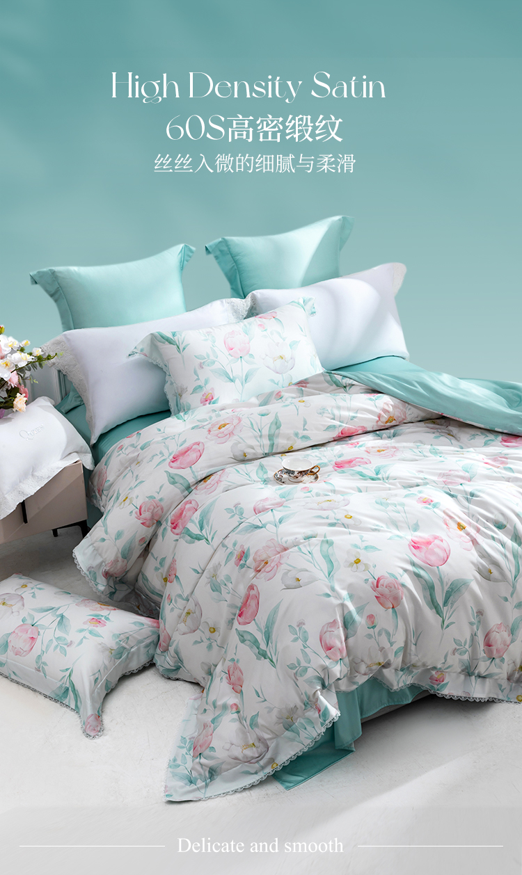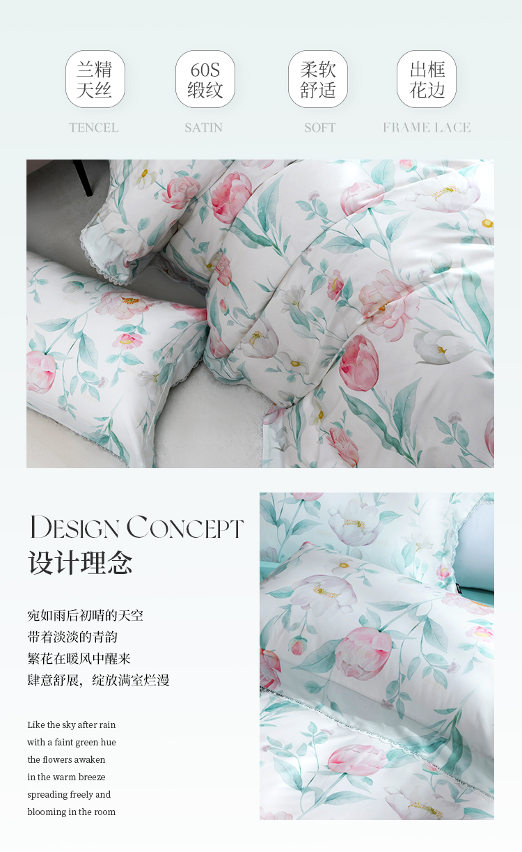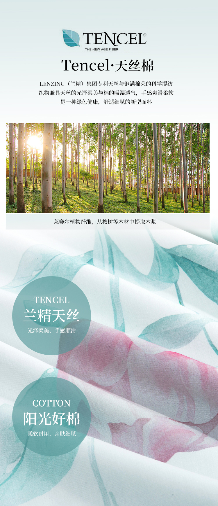 多喜爱 60S天丝棉四件套 浅陌清欢/碧玉青瑶 【兰精天丝】【60S缎纹】【出框宽边】【专利床单设计】【礼盒包装】