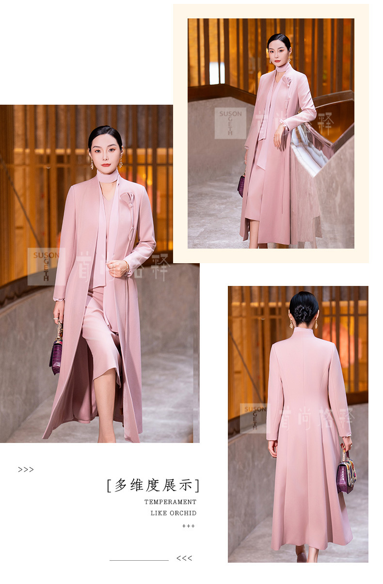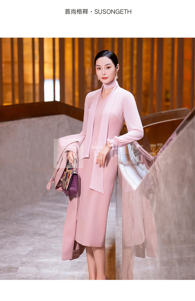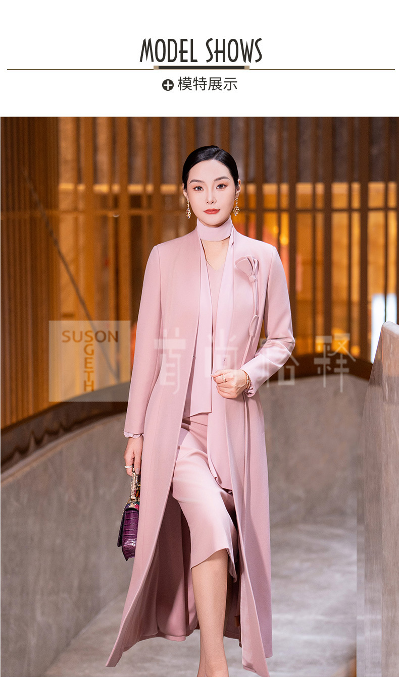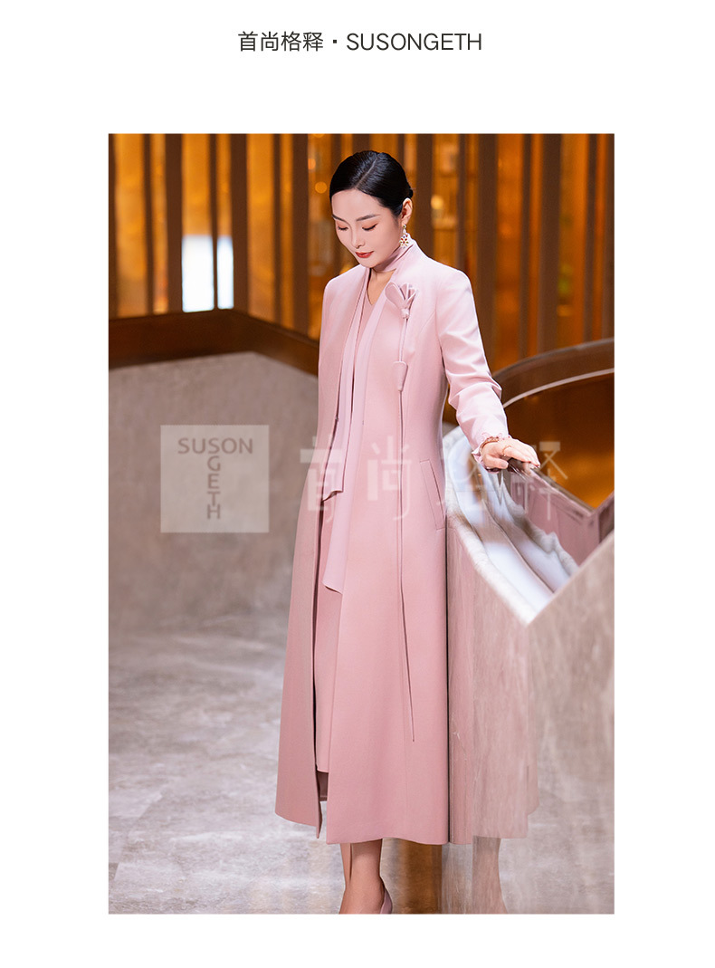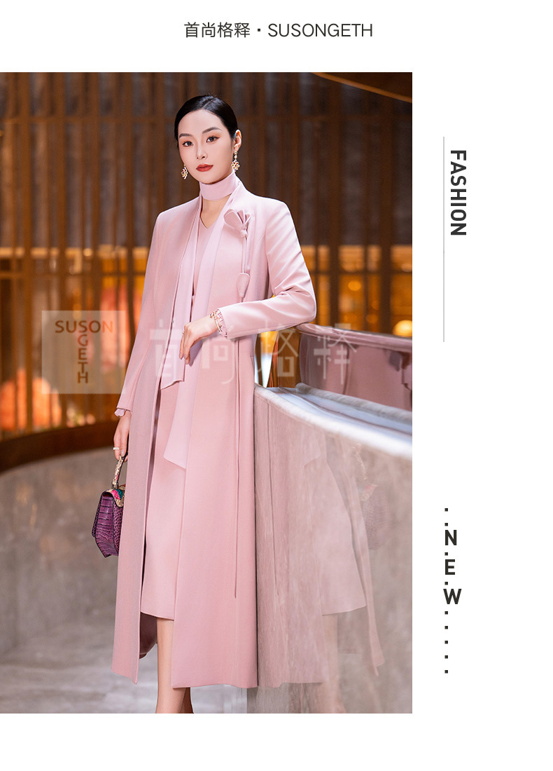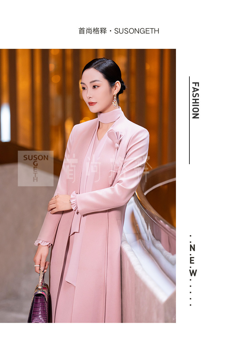 YBY 904C41羊毛飘带大衣高级简约气质优雅修身套装