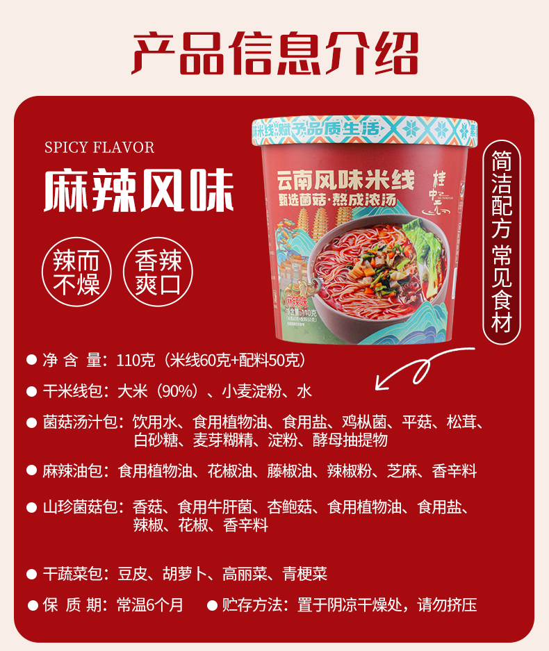 云南风味米线 | 110g桶装/250g袋装 菌汤浓郁 麻辣鲜香 云南特色米粉 一口入滇