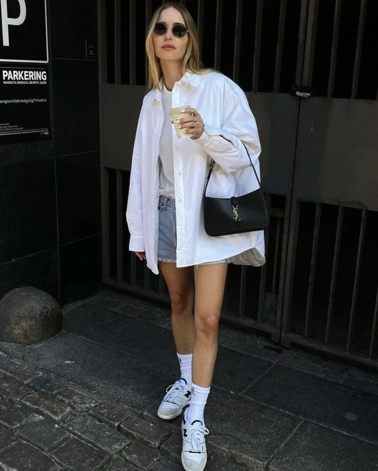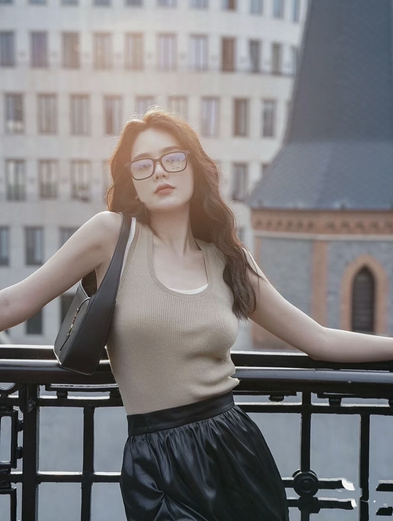 极简造型配合YSL包扣,英气勃勃,女孩子用真的帅极了。