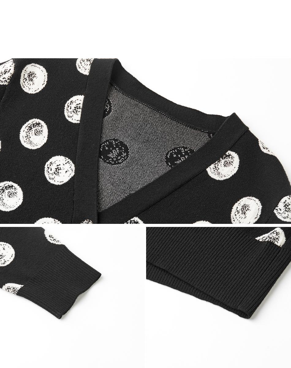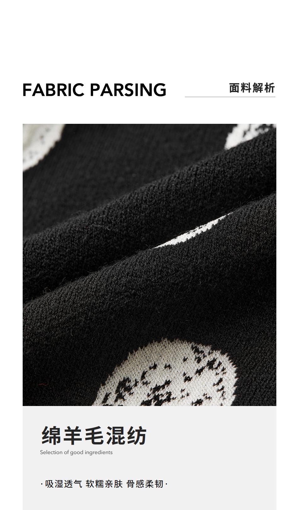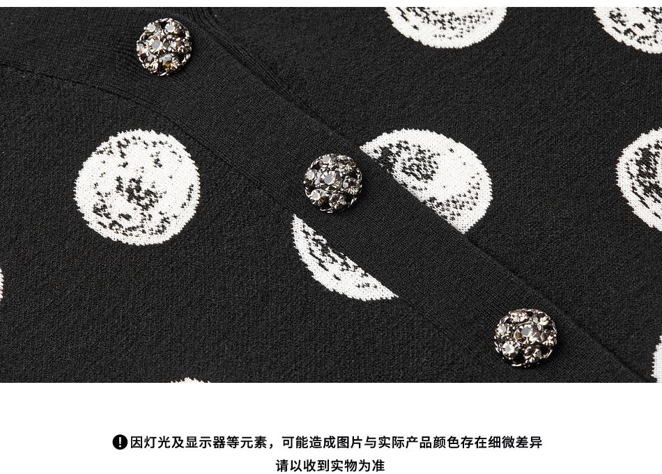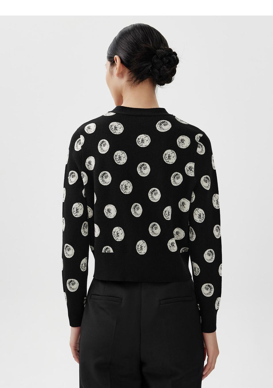 朗姿黑色V领羊毛针织衫女印花撞色高级感开衫LSEK00KCD401B01
