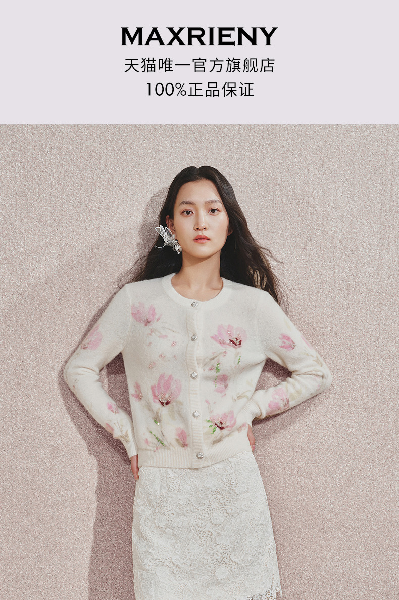 【贵雅日常-商场同款】MAXRIENY钉珠印花针织开衫2024秋冬新款(货号:MC85JA556)