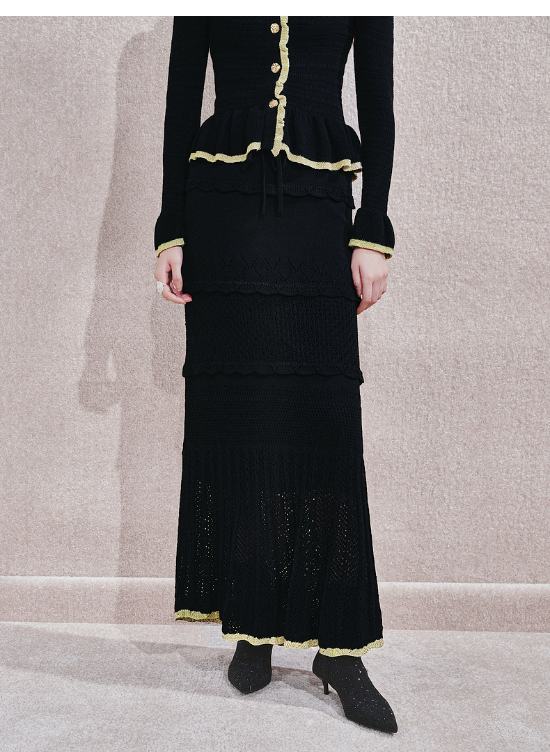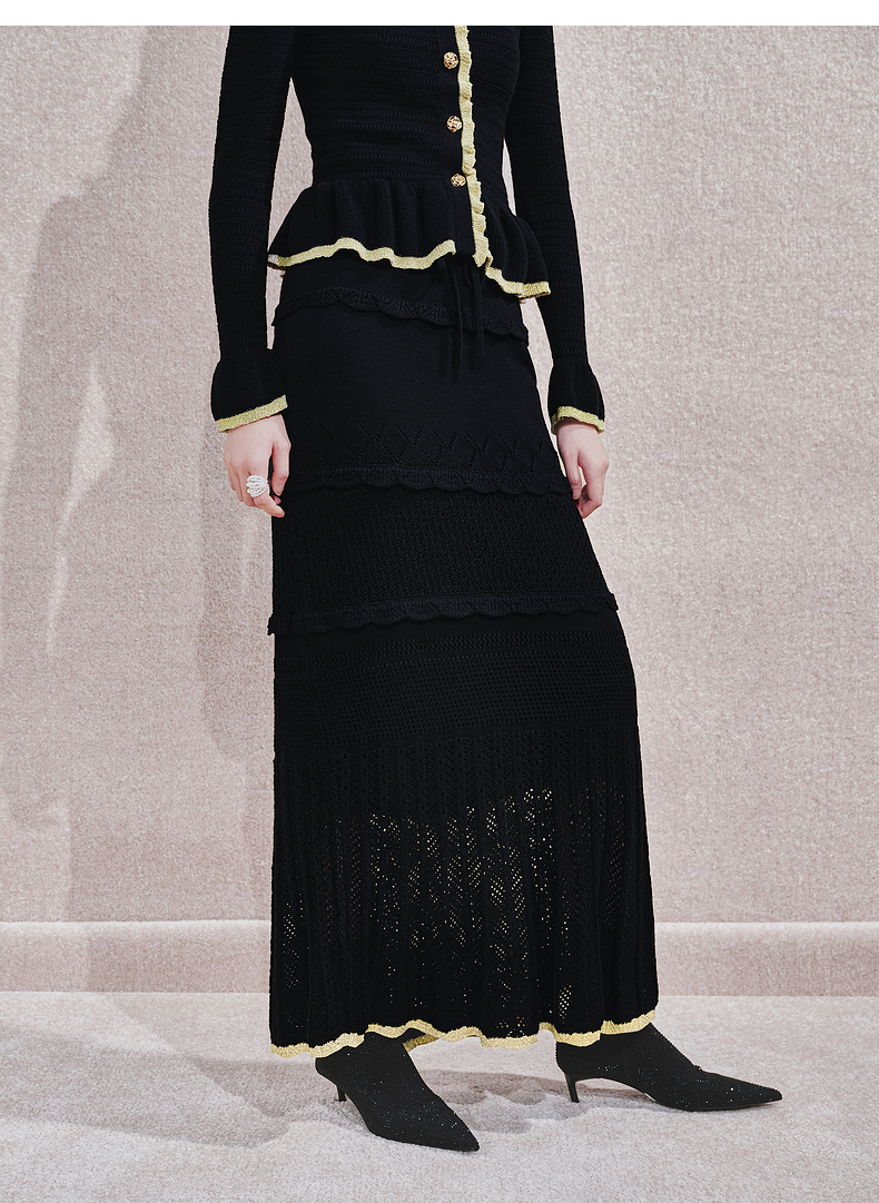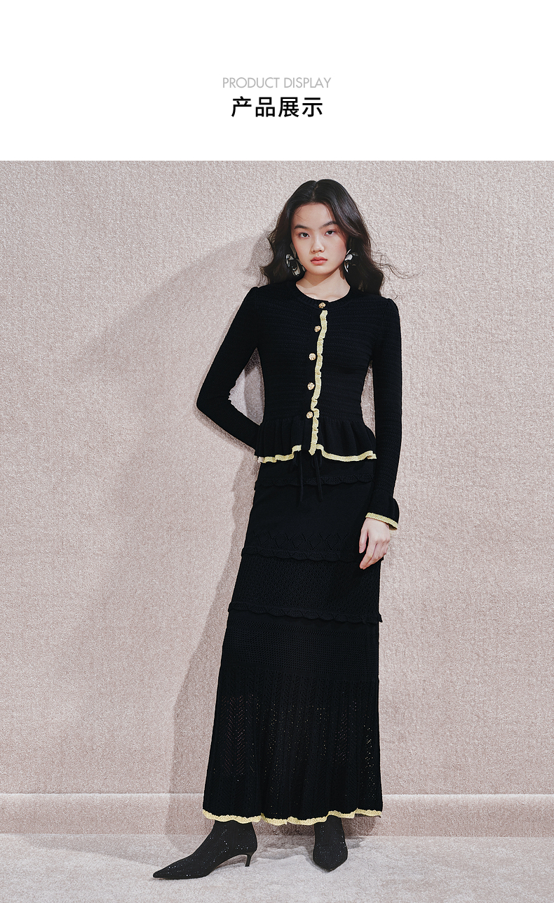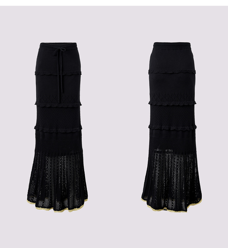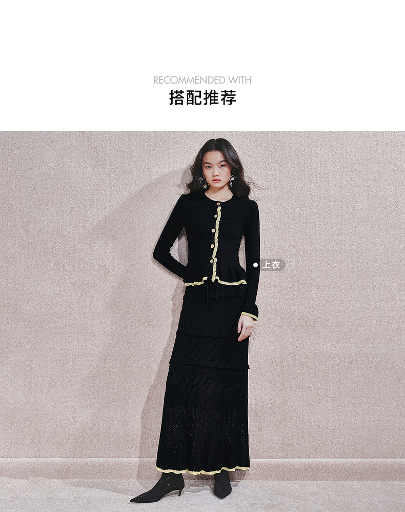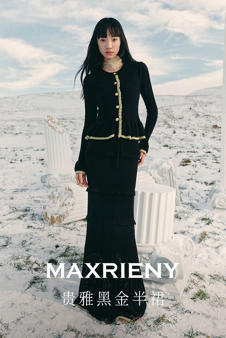 MAXRIENY2024冬季新品法式优雅复古修身显瘦纹理感针织半身长裙(货号:MS85SK754)