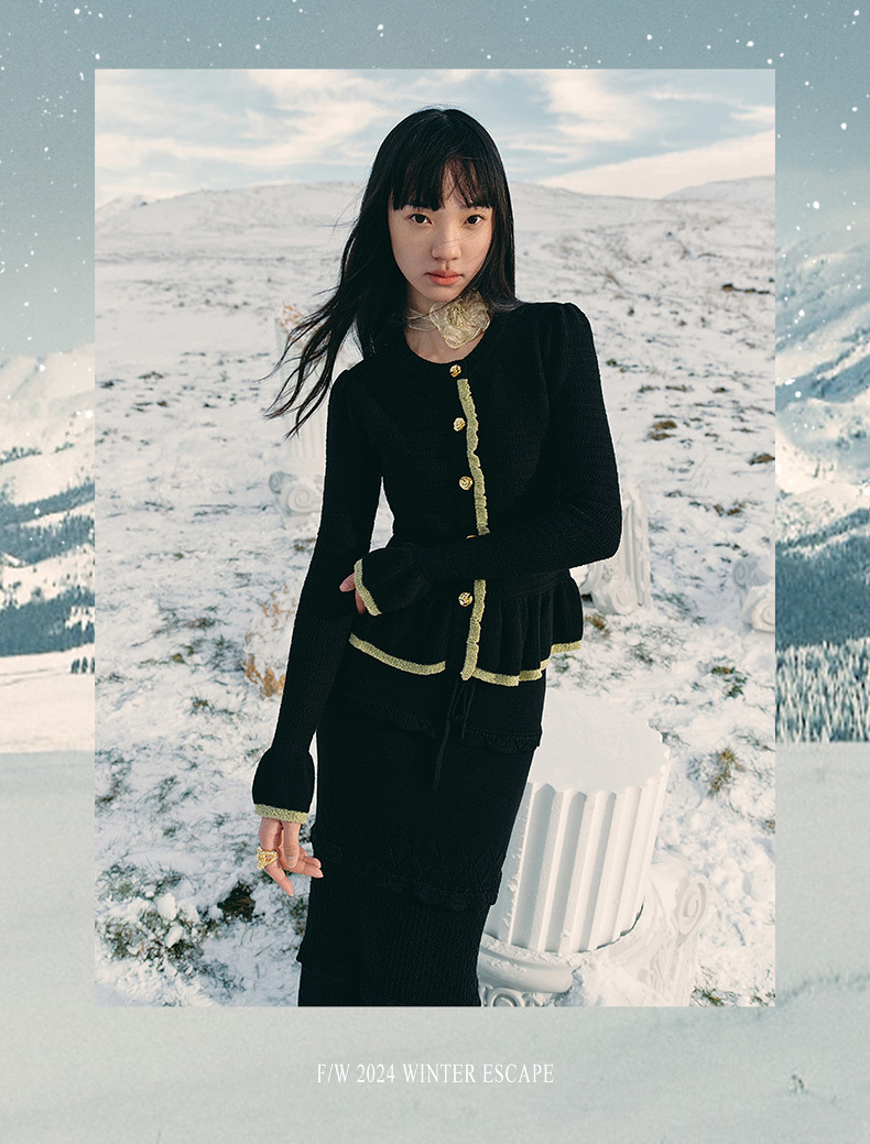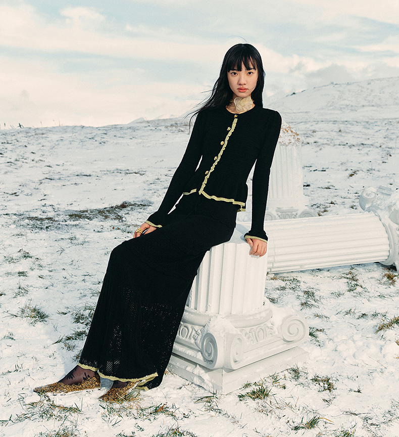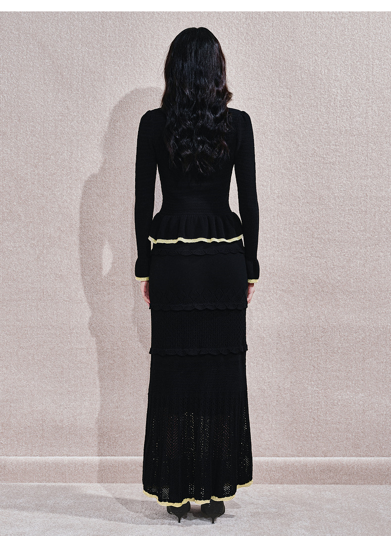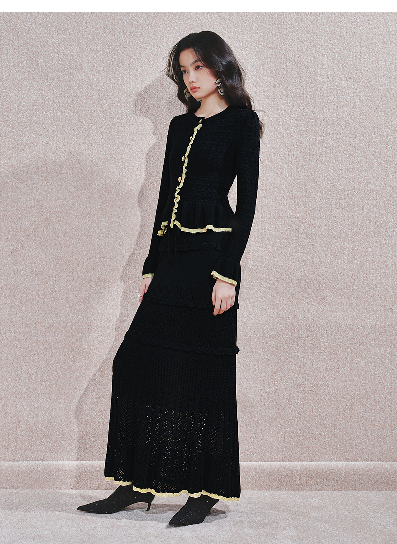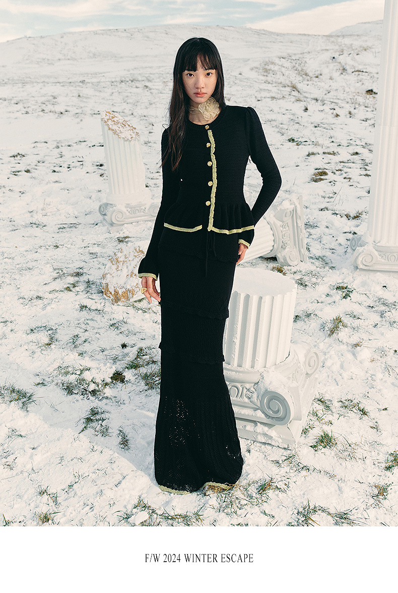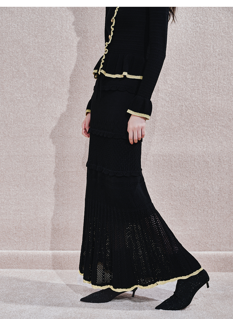 MAXRIENY2024冬季新品法式优雅复古修身显瘦纹理感针织半身长裙(货号:MS85SK754)