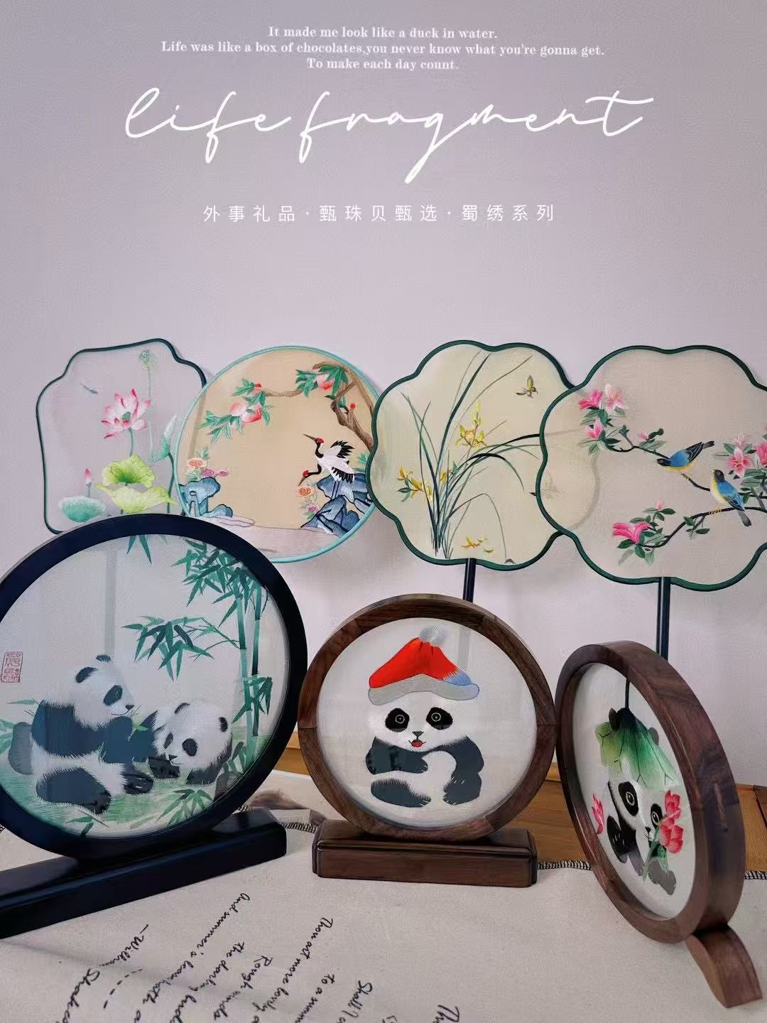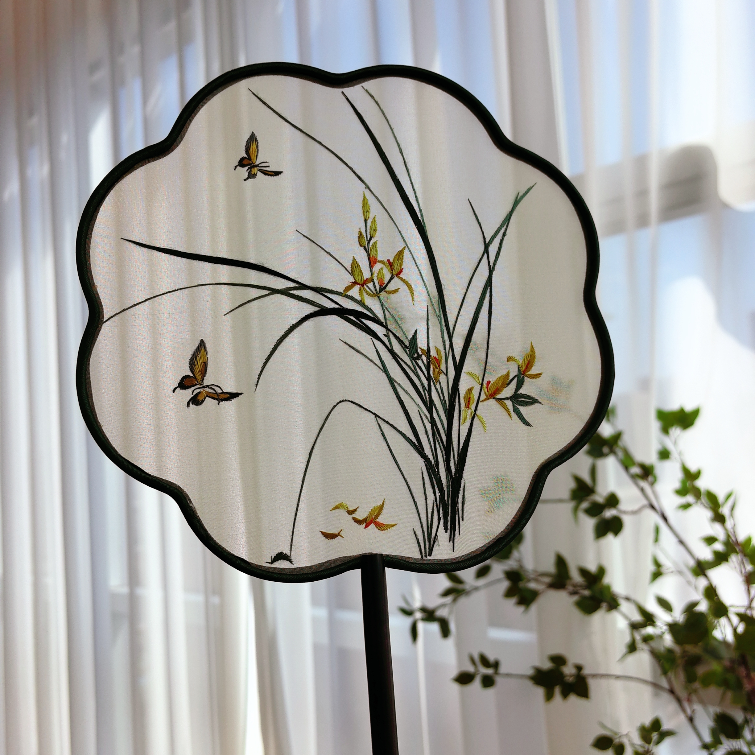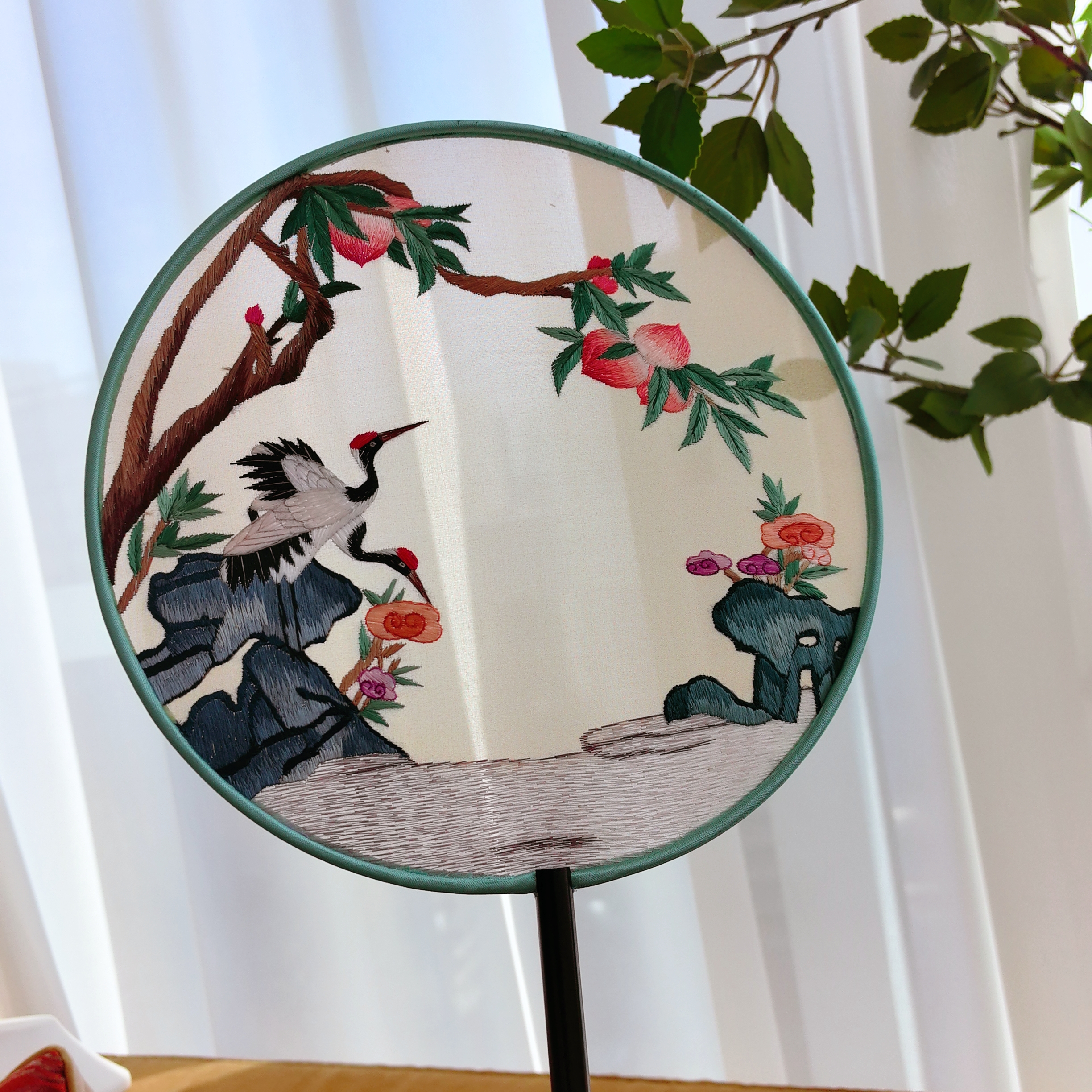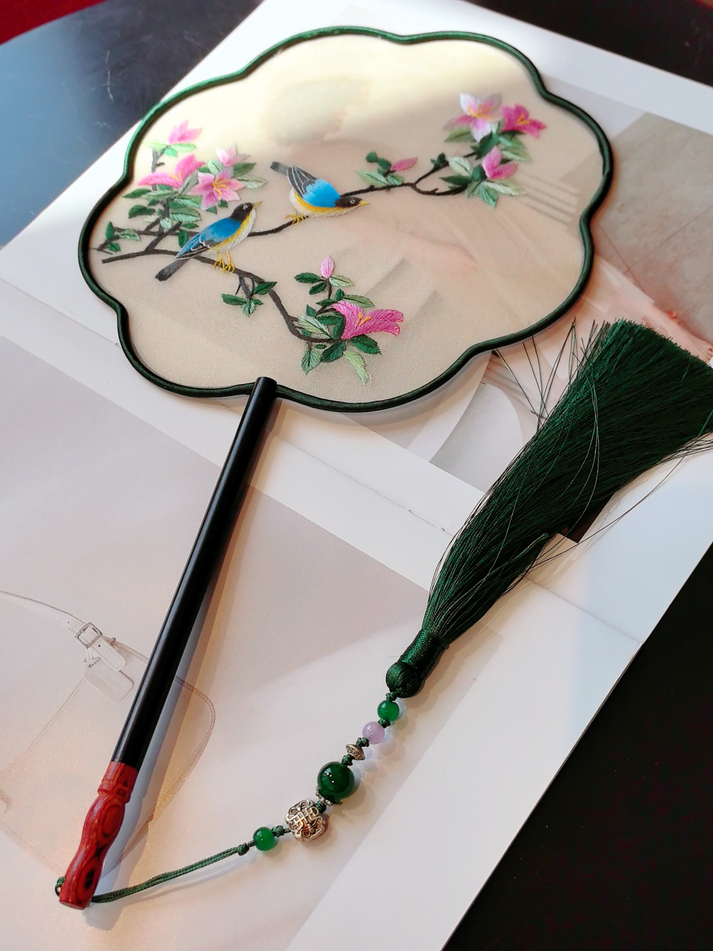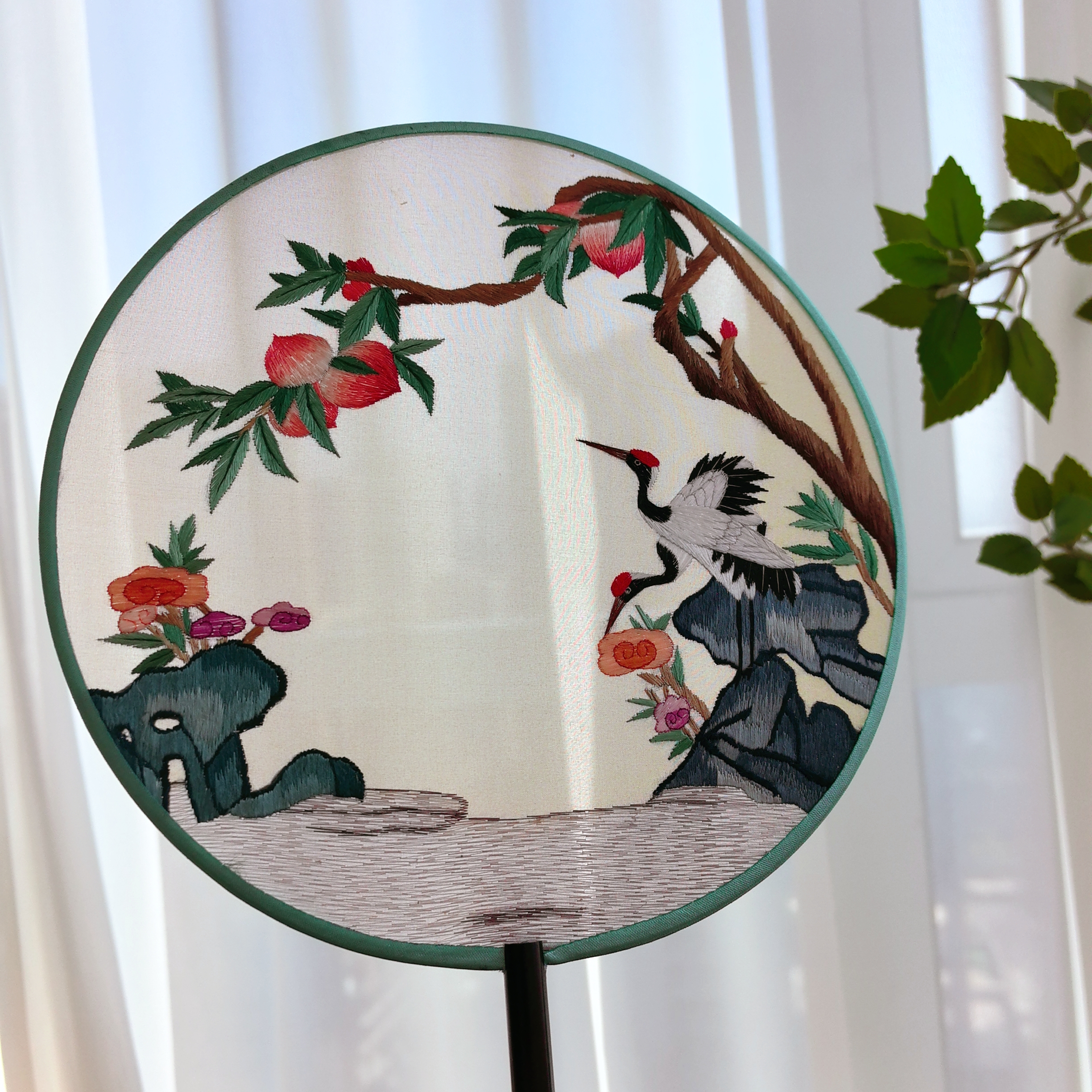 【甄珠贝】 非遗纯手工蜀绣团扇 双面刺绣 紫檀木手柄【适合送外宾】