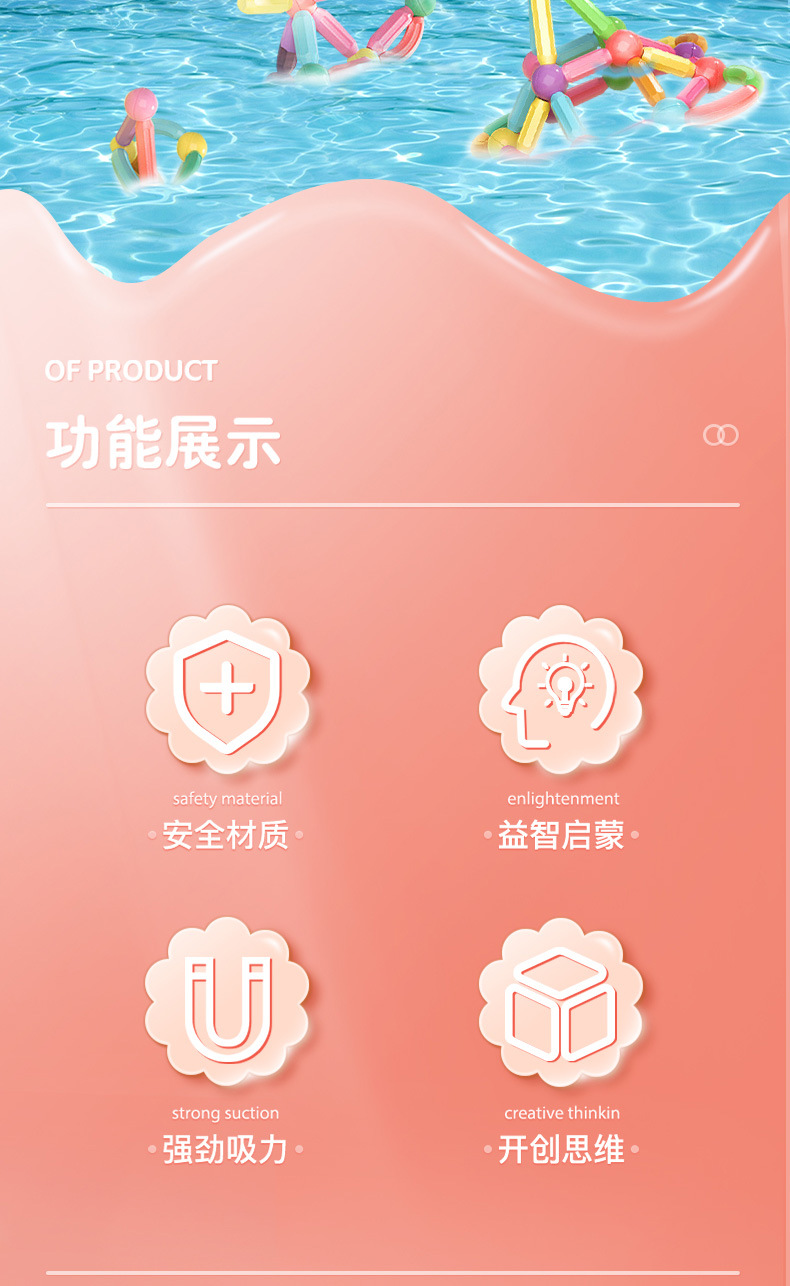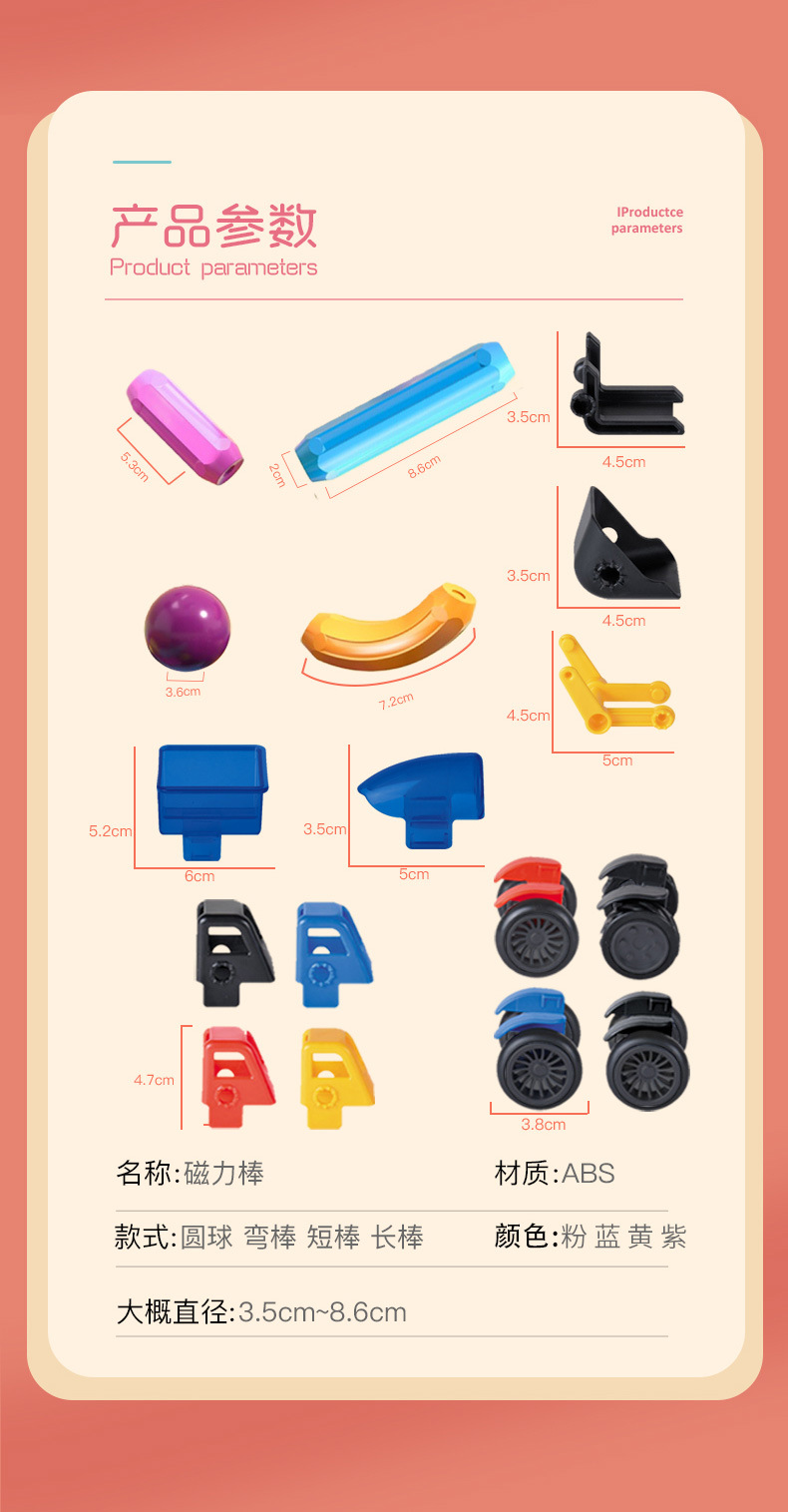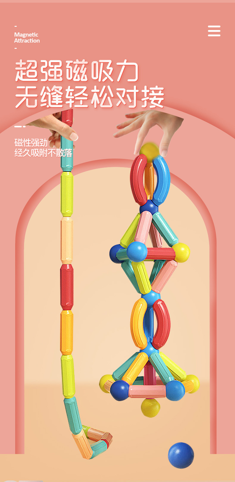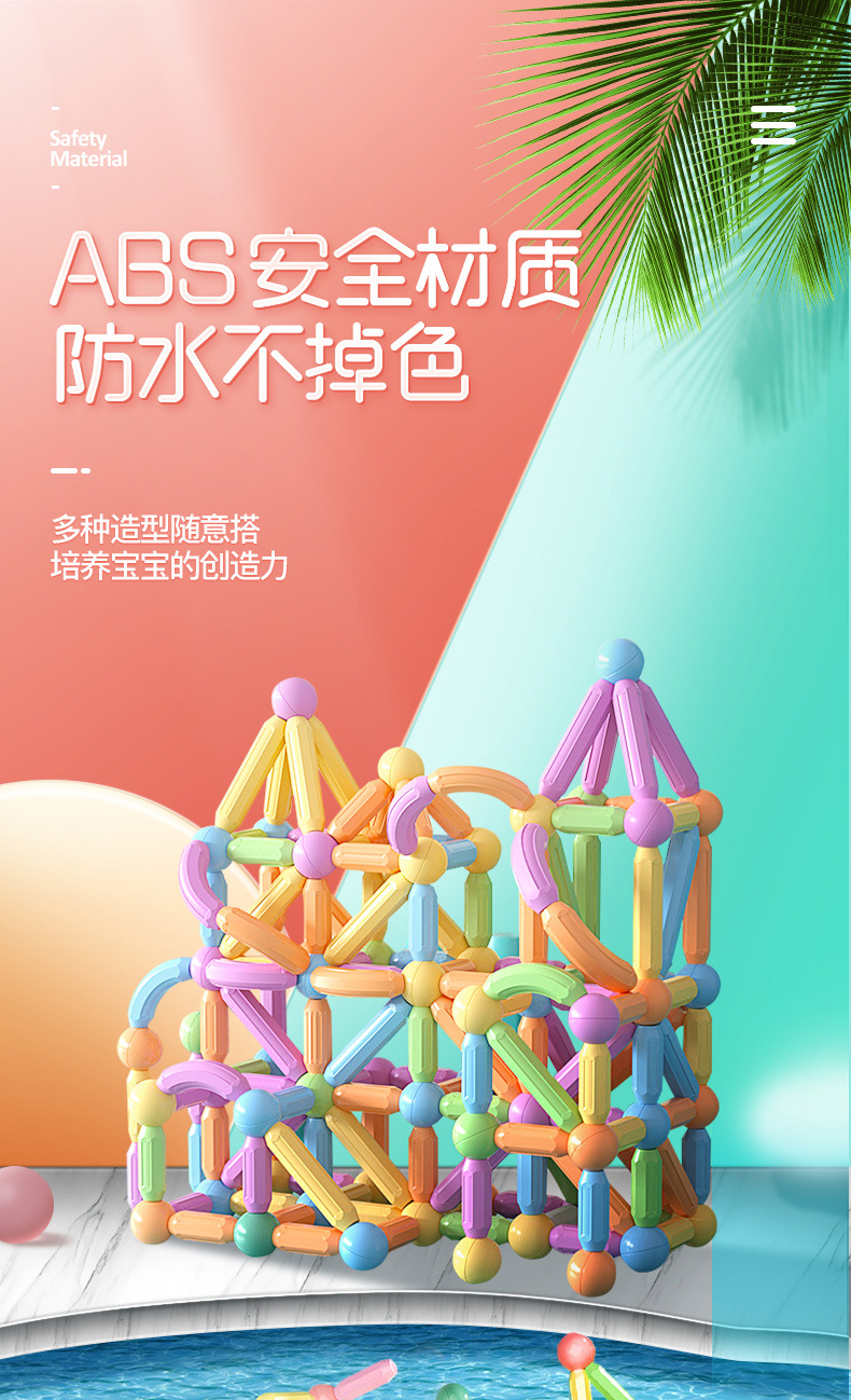 【百变磁力棒!培养宝宝的创造力】儿童百变磁力棒套装,开启宝贝创造力,ABS安全材质,防水不掉色,多种造型随意搭,光滑无味放心玩,磁力积木大颗粒,磁铁智力玩具拼装早教益智