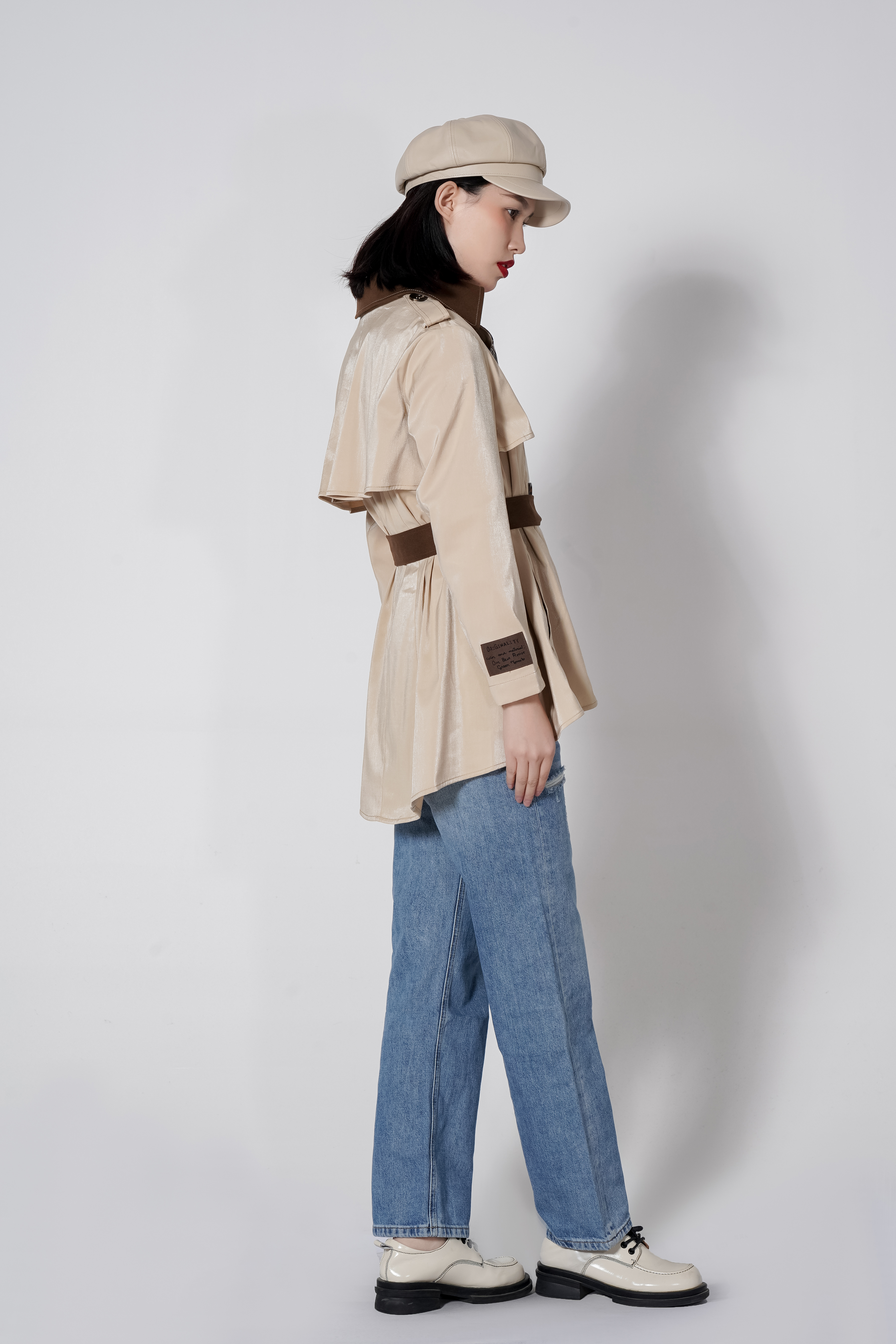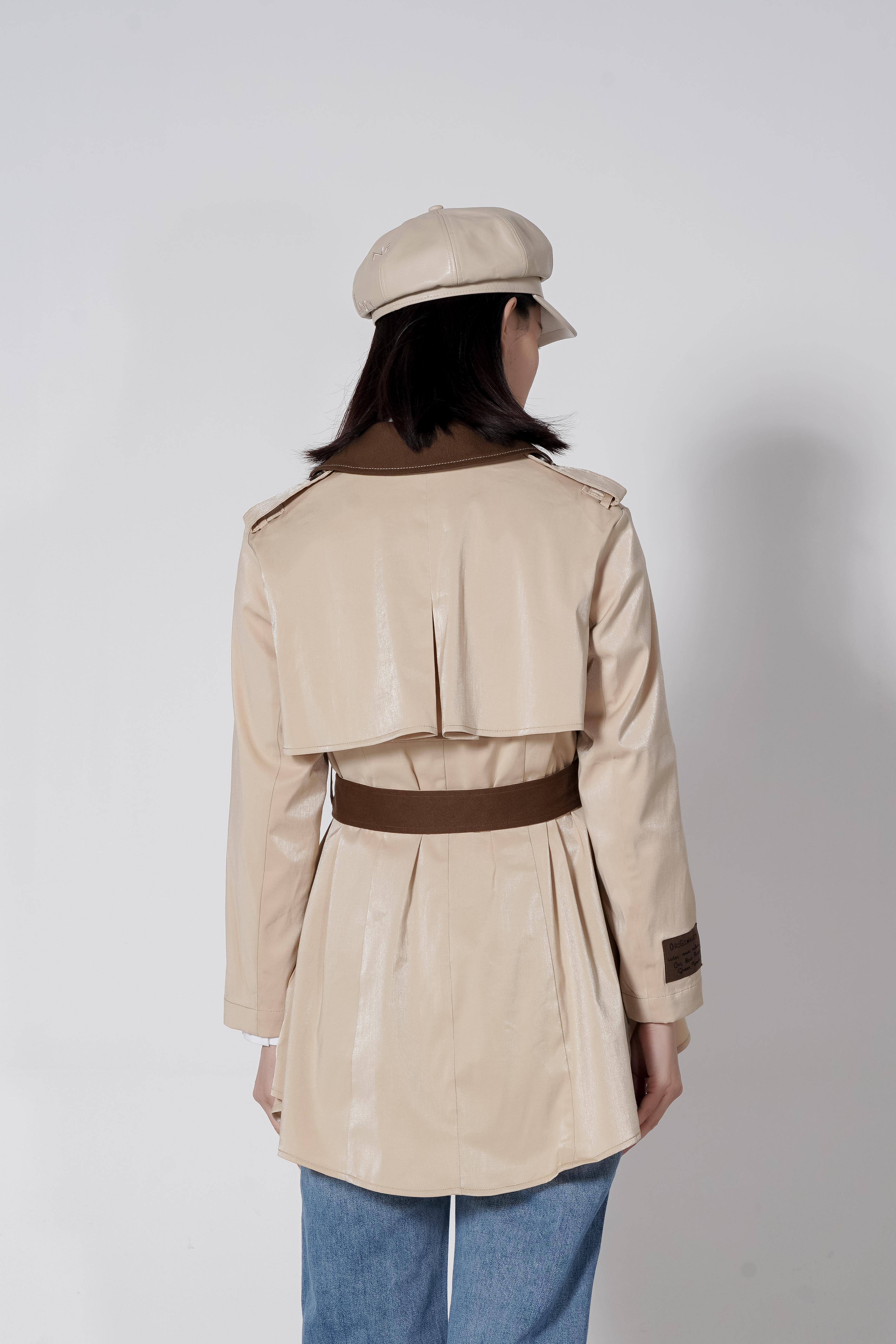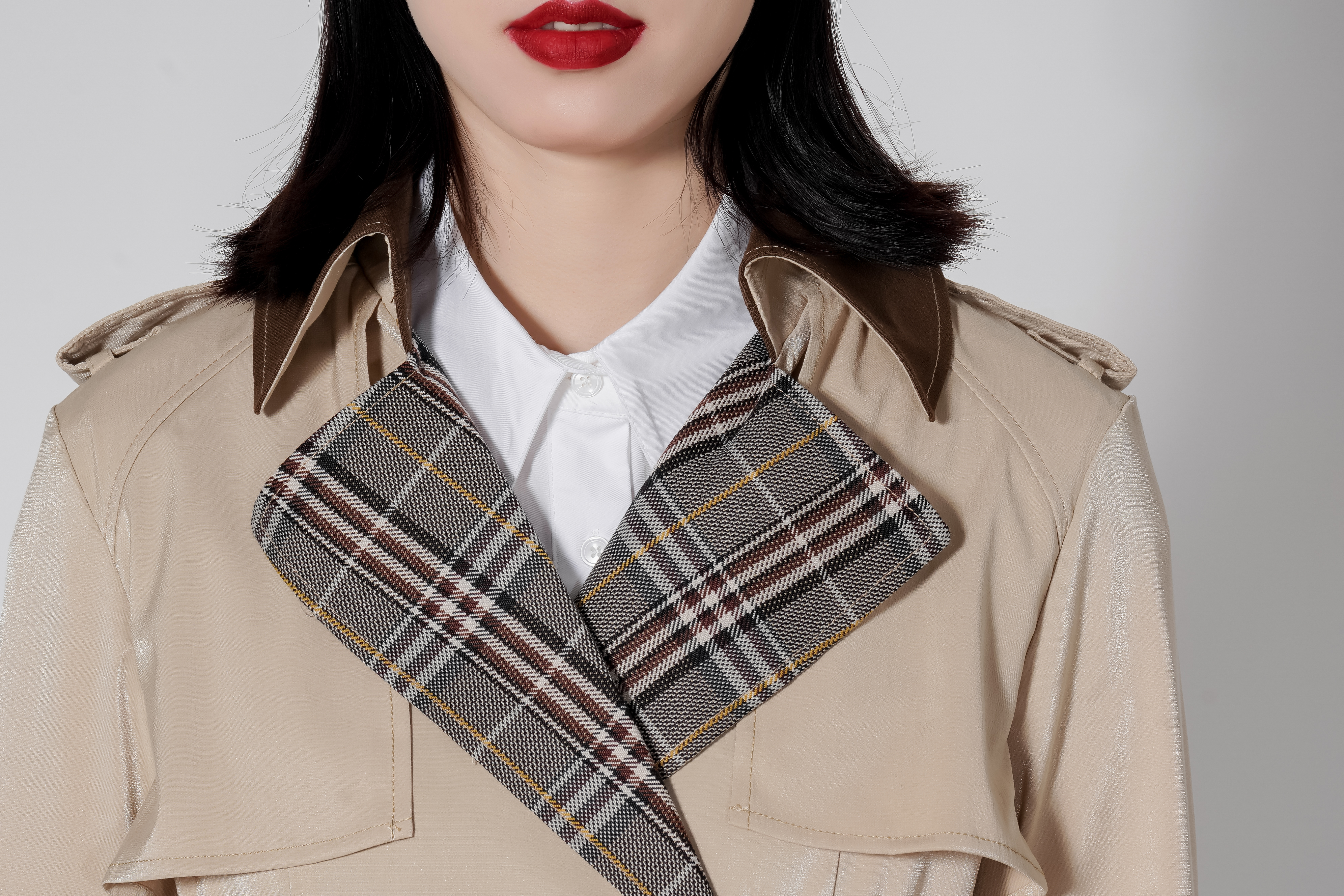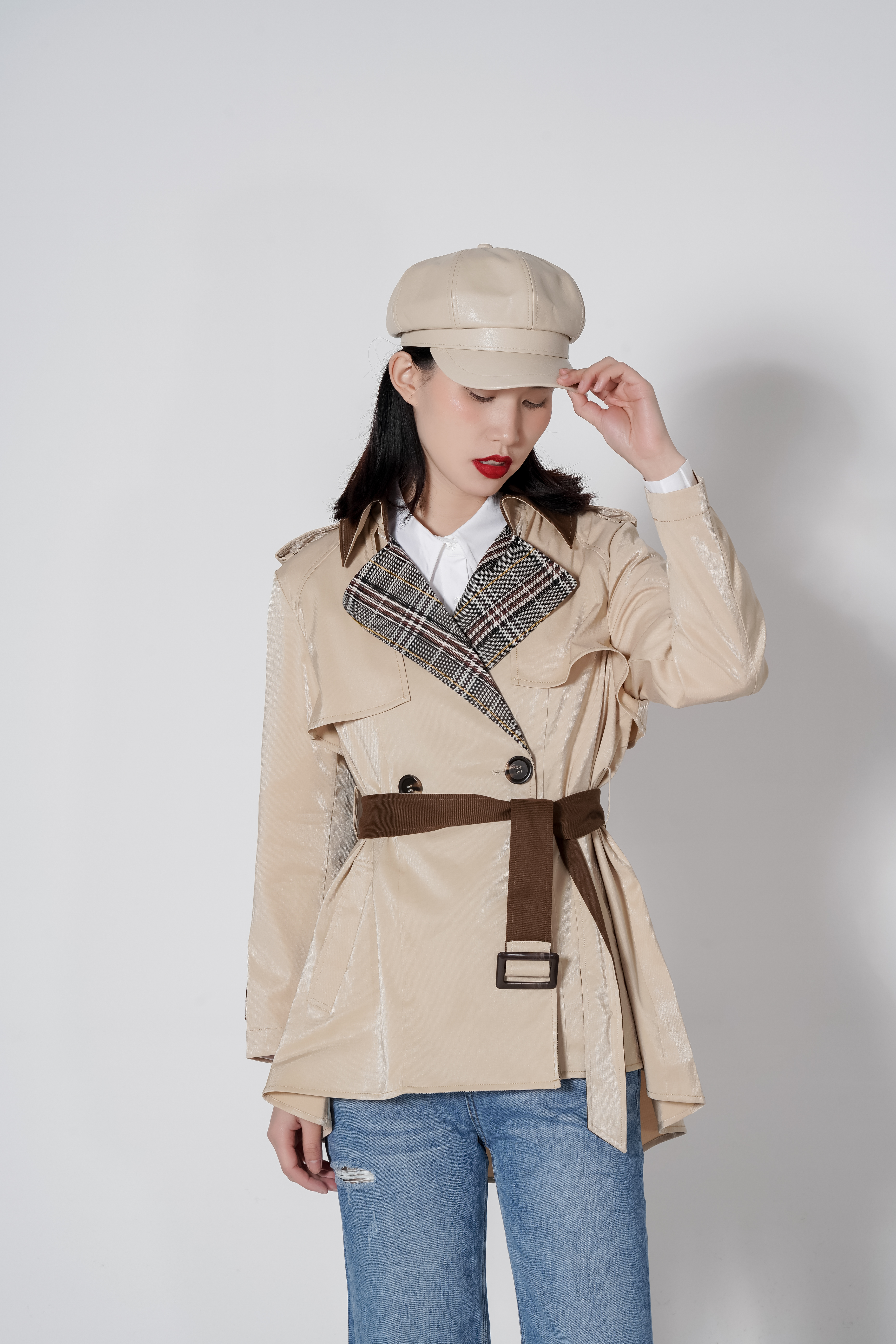 【1折】臣禾 拼接格纹翻领小个子短款风衣K213011477