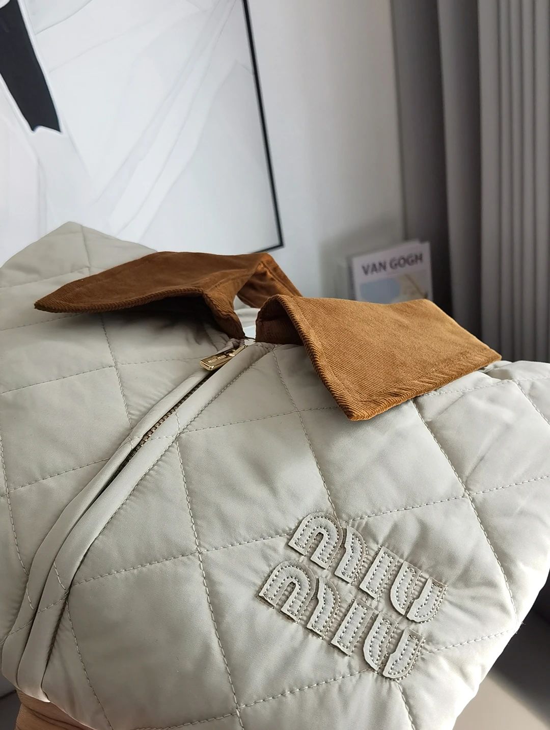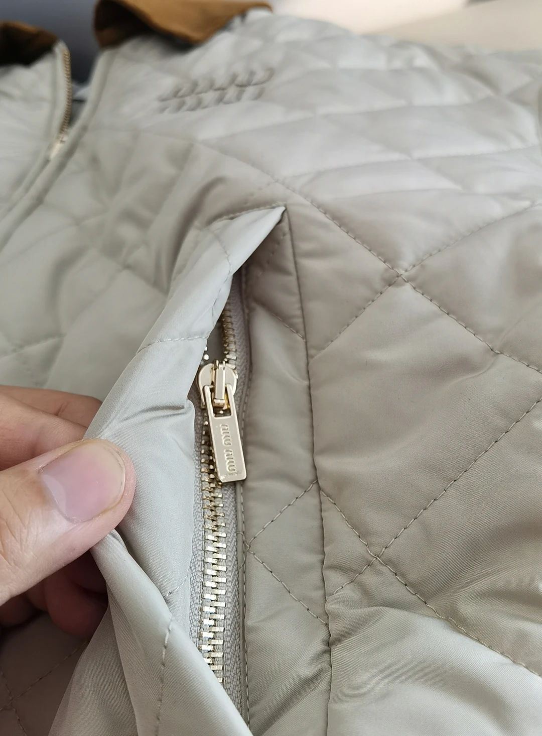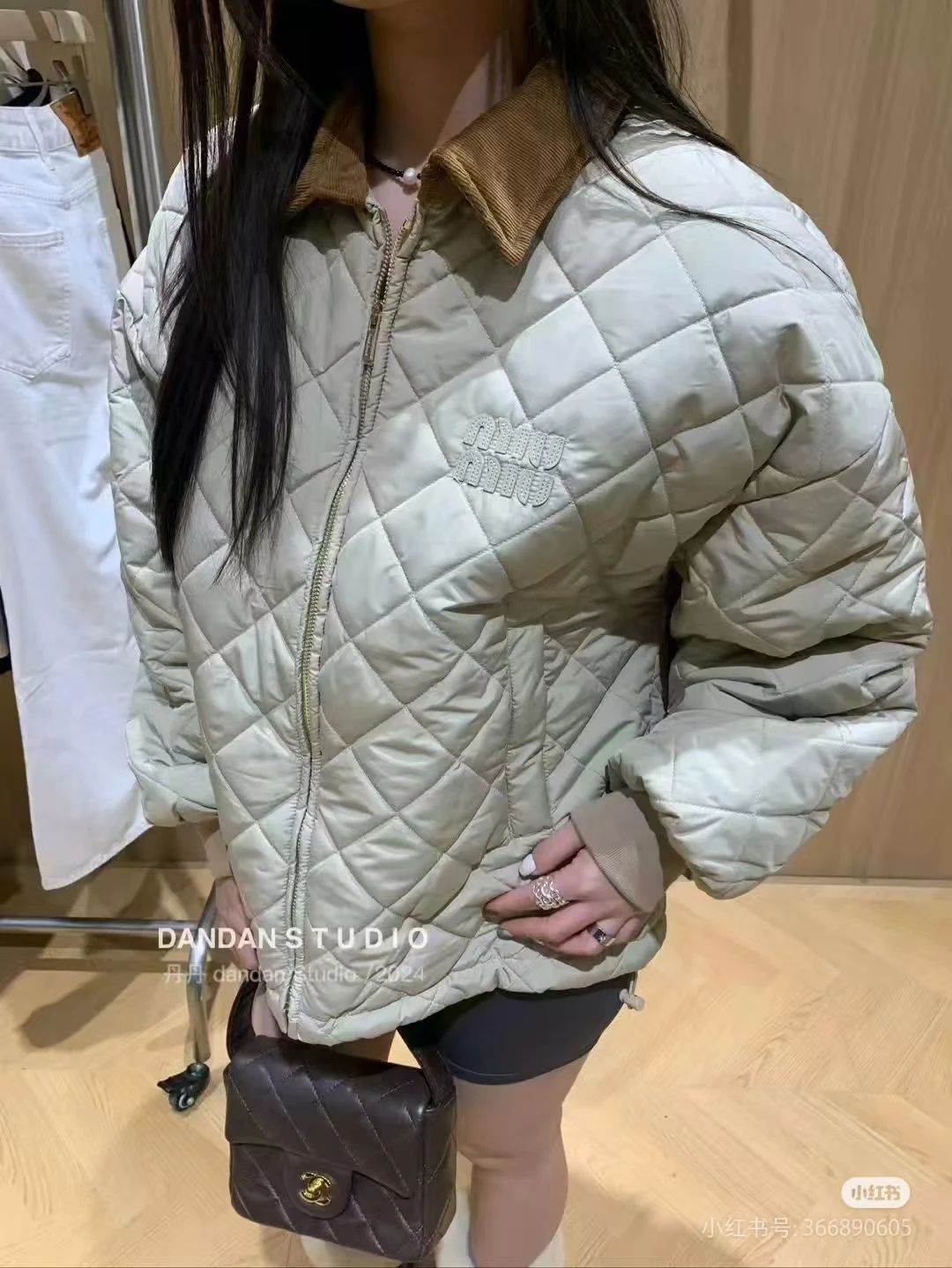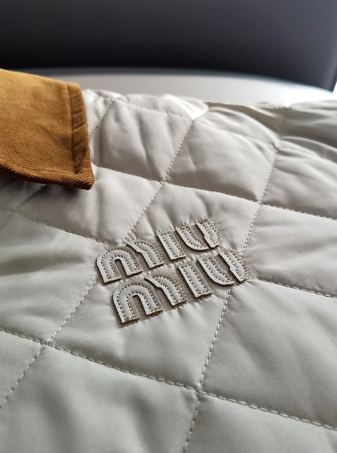 Miumi*/缪谬 菱形格纹轻薄款棉衣灯芯绒领外套