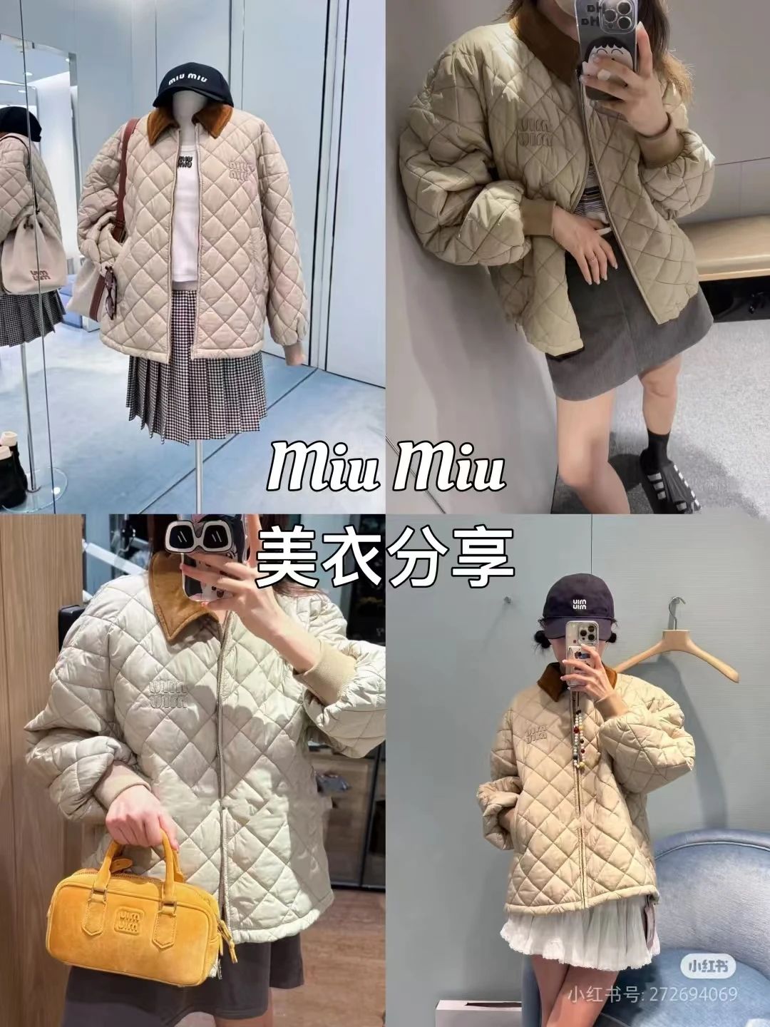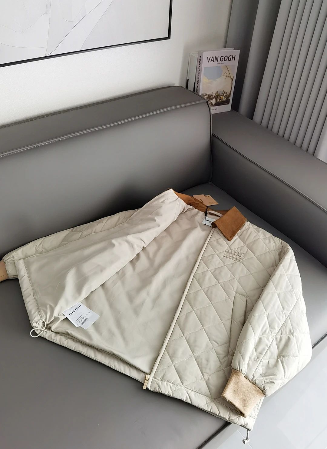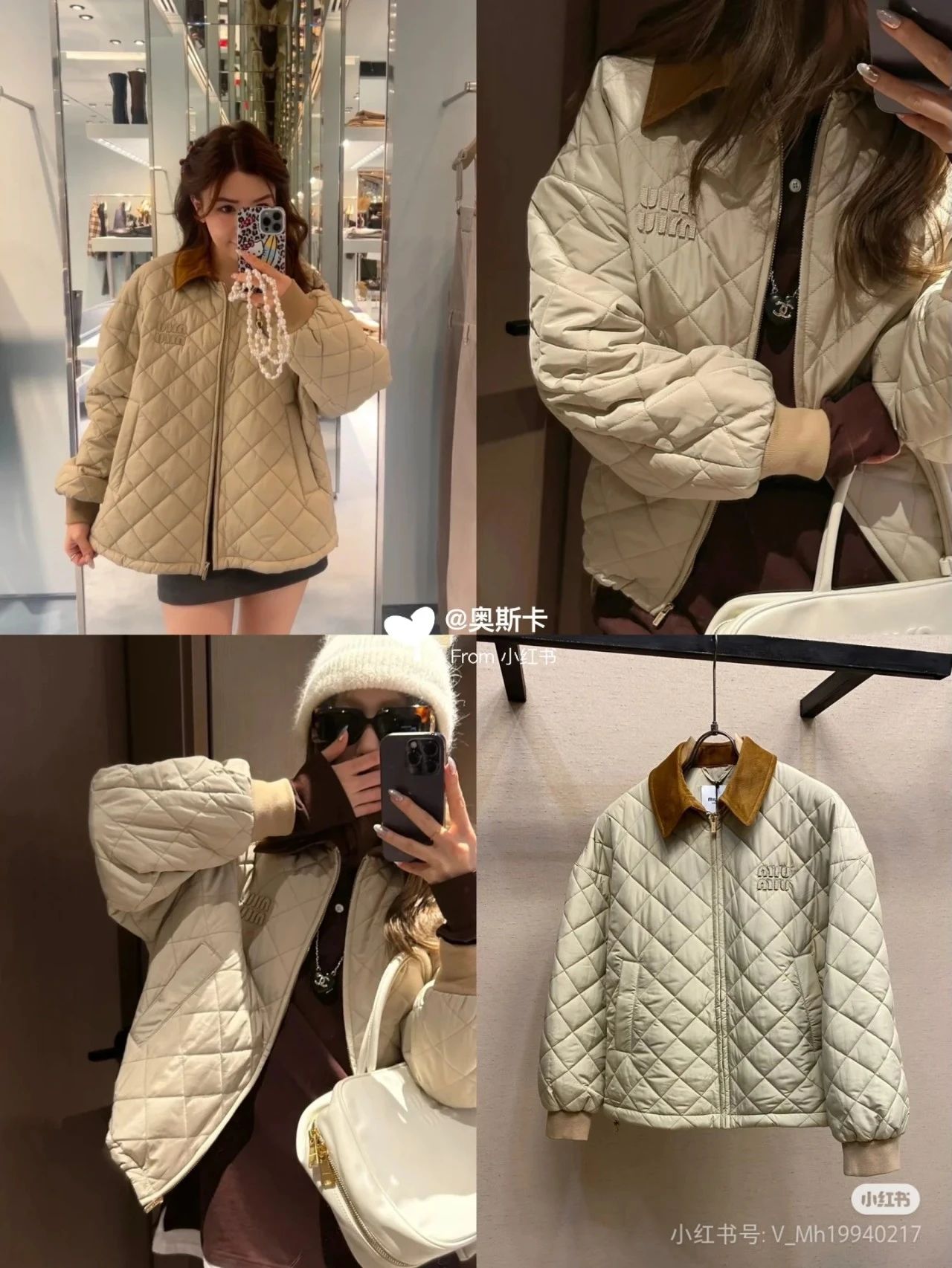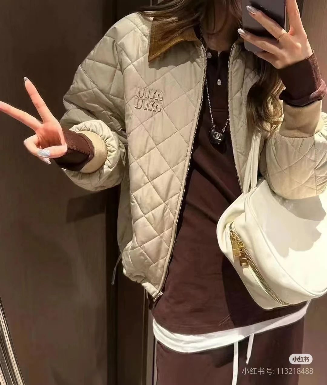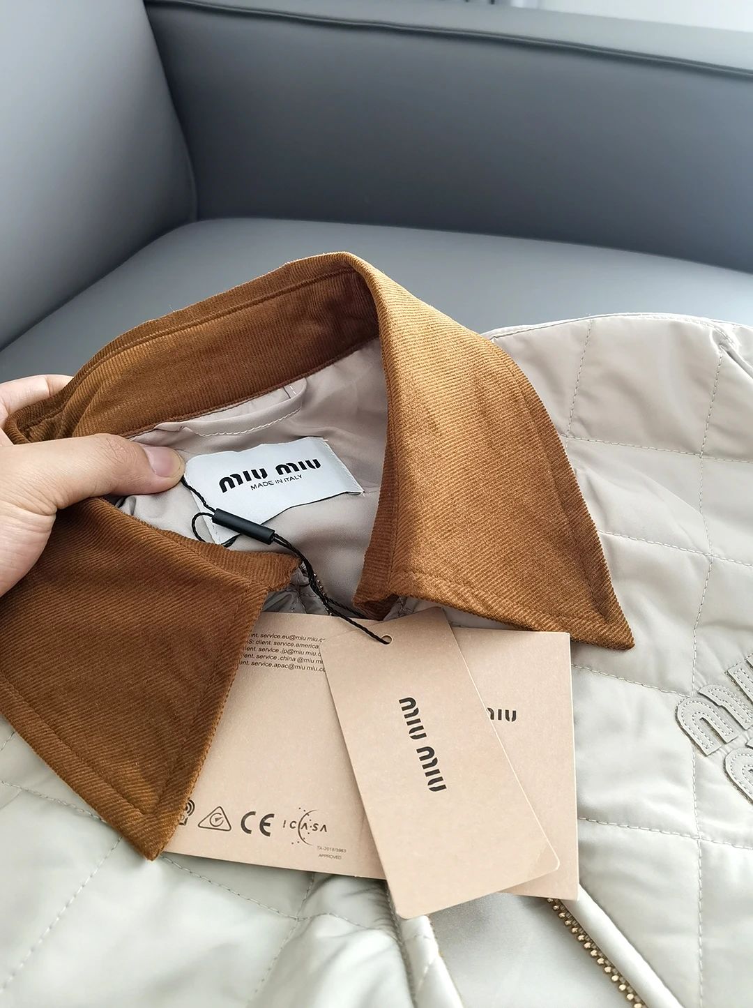 Miumi*/缪谬 菱形格纹轻薄款棉衣灯芯绒领外套