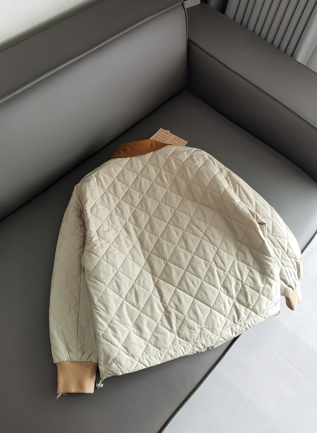 菱形格纹轻薄款棉衣灯芯绒领外套,