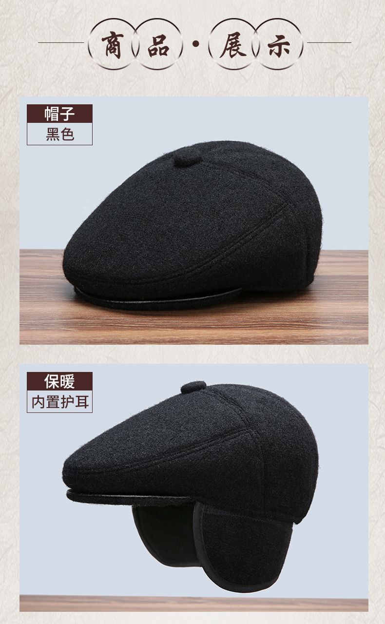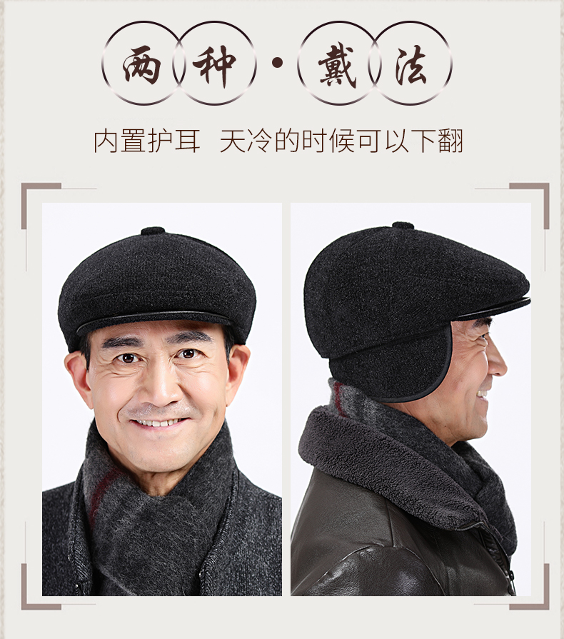 雀说 帽子男士冬季爸爸帽秋冬天护耳保暖前进鸭舌帽3ZF-5656