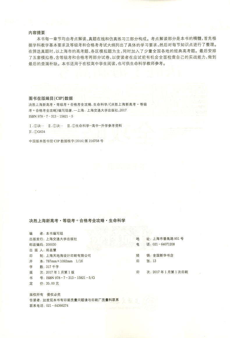 交大之星新政策版 决胜上海新高考等级考+合格考全攻略 生命科学 HK6 上海交通大学出版社