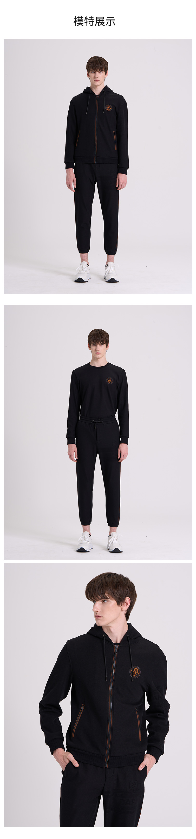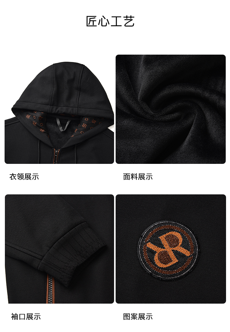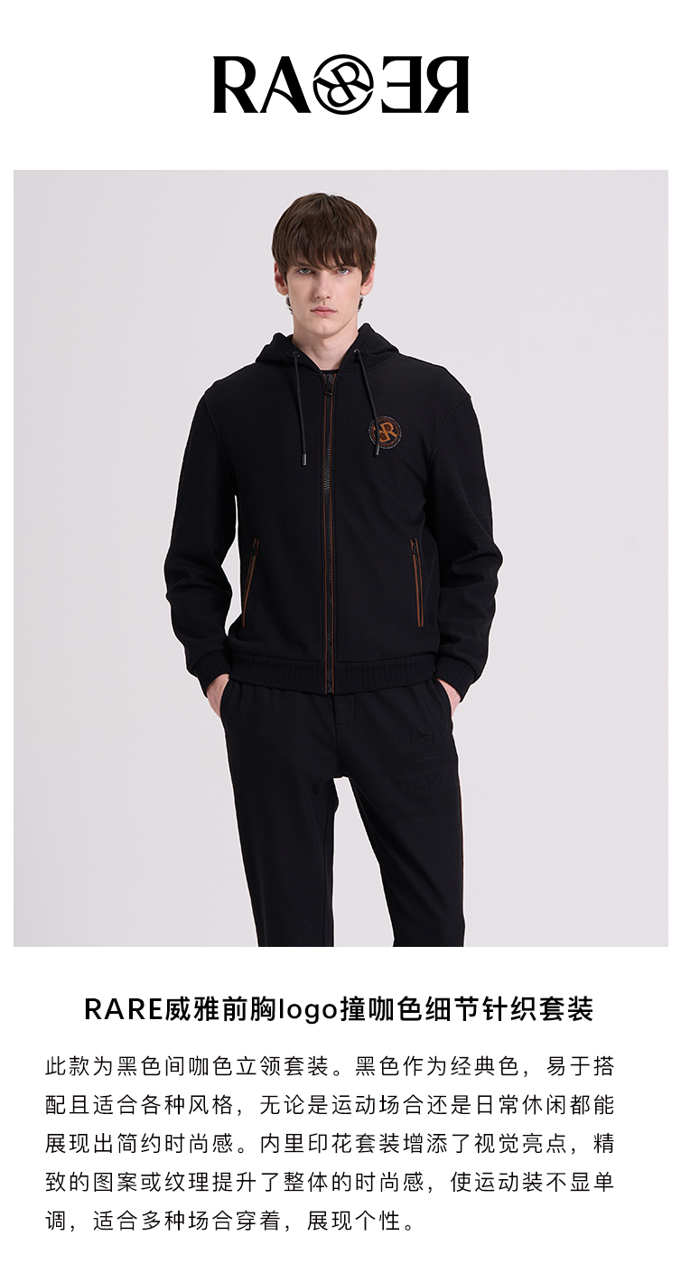 威雅/RARE 黑色间咖色套装 男士立领休闲运动套装